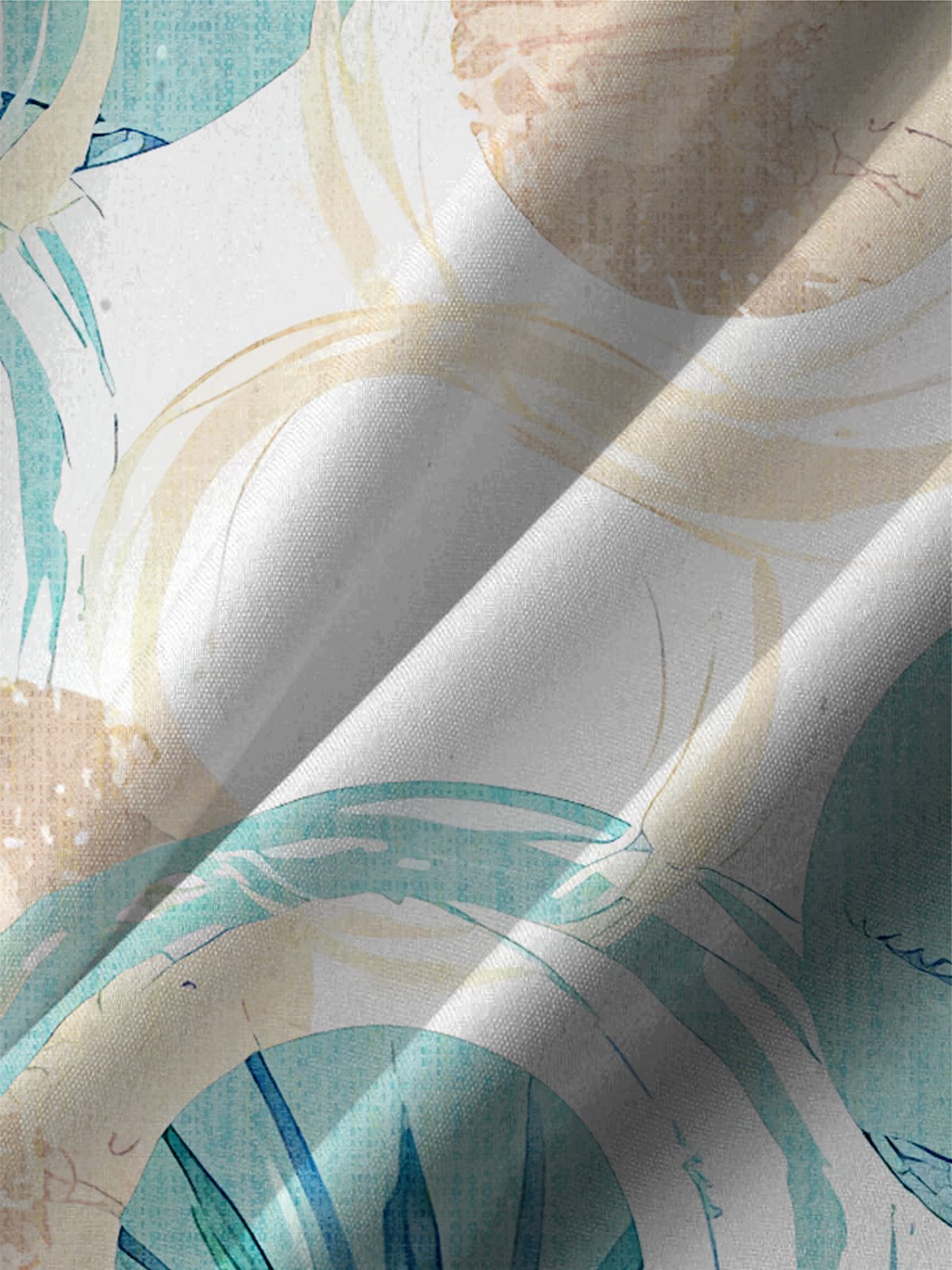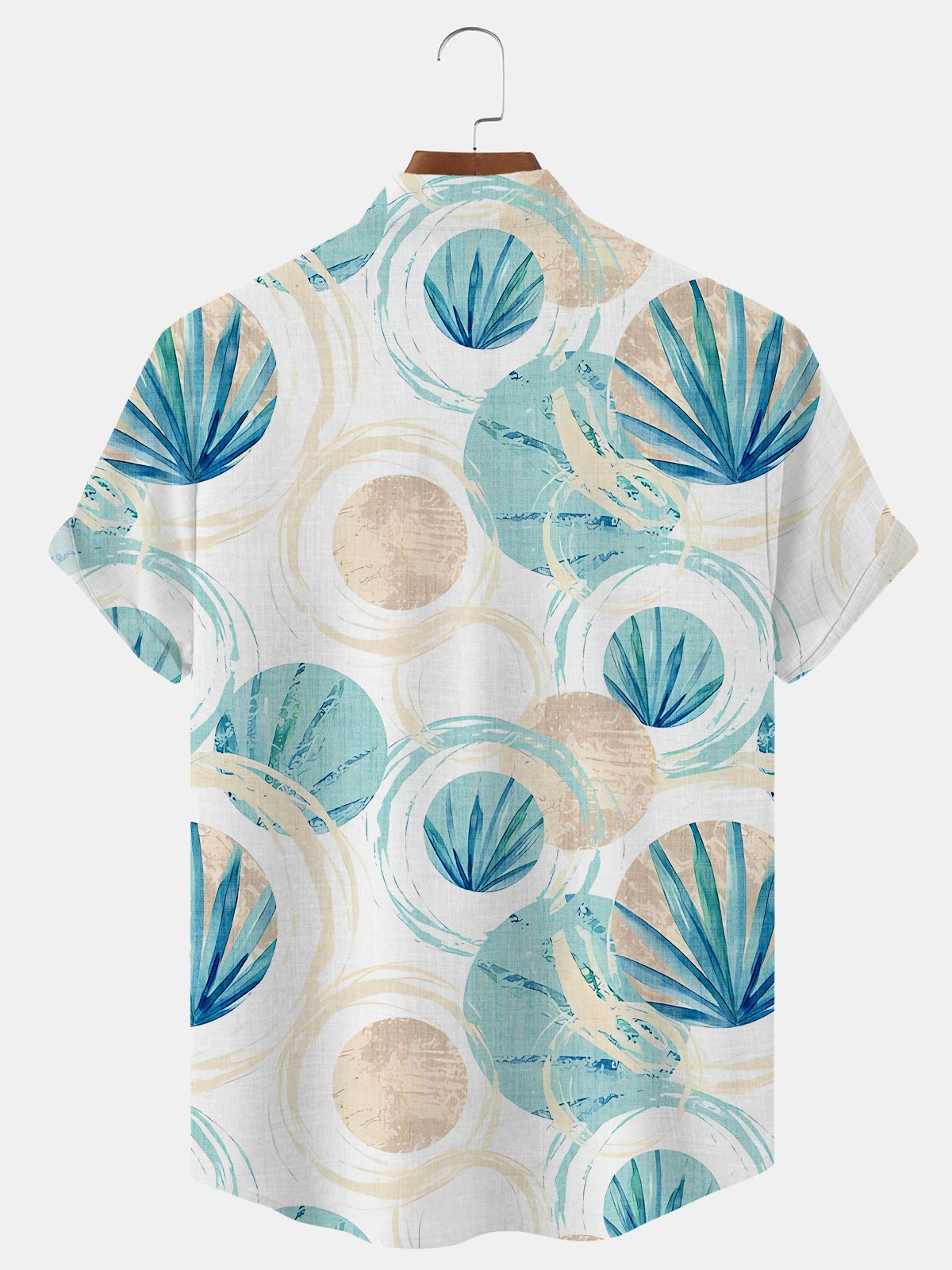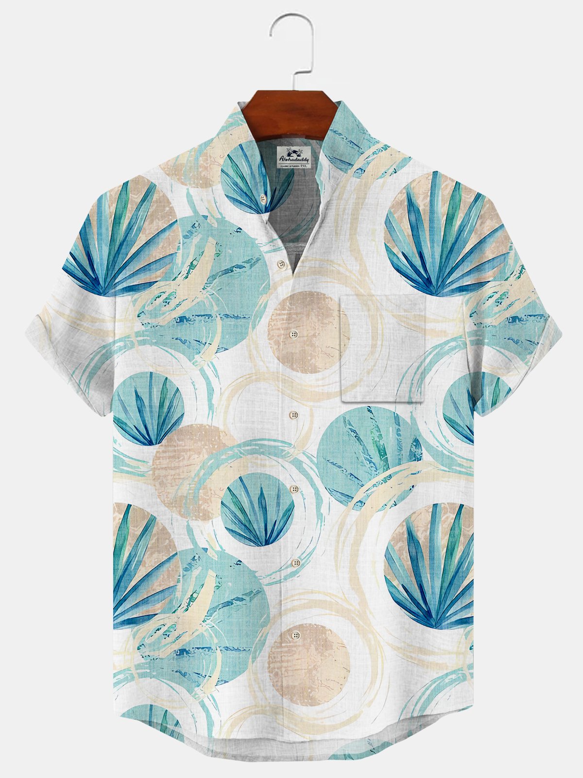 Alohadaddy Geometric Leaf Button Pocket Casual Short Sleeve Stand Collar Shirt