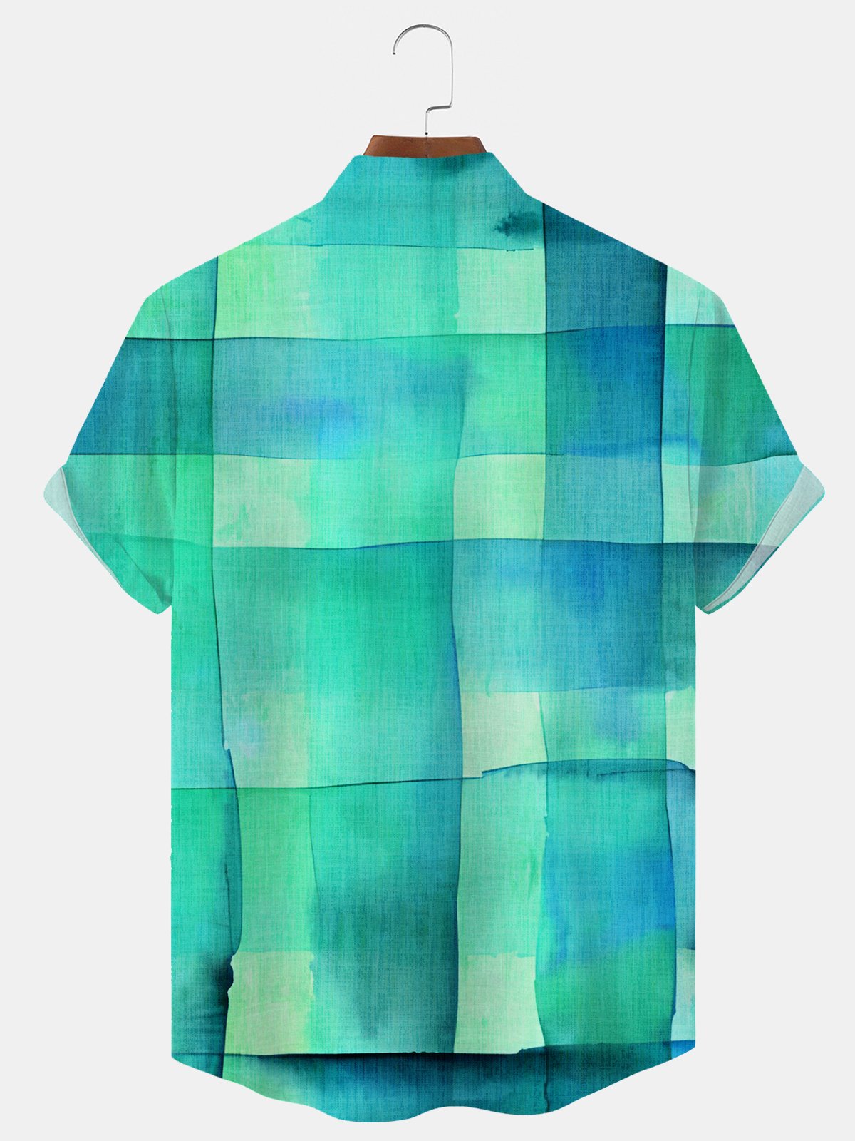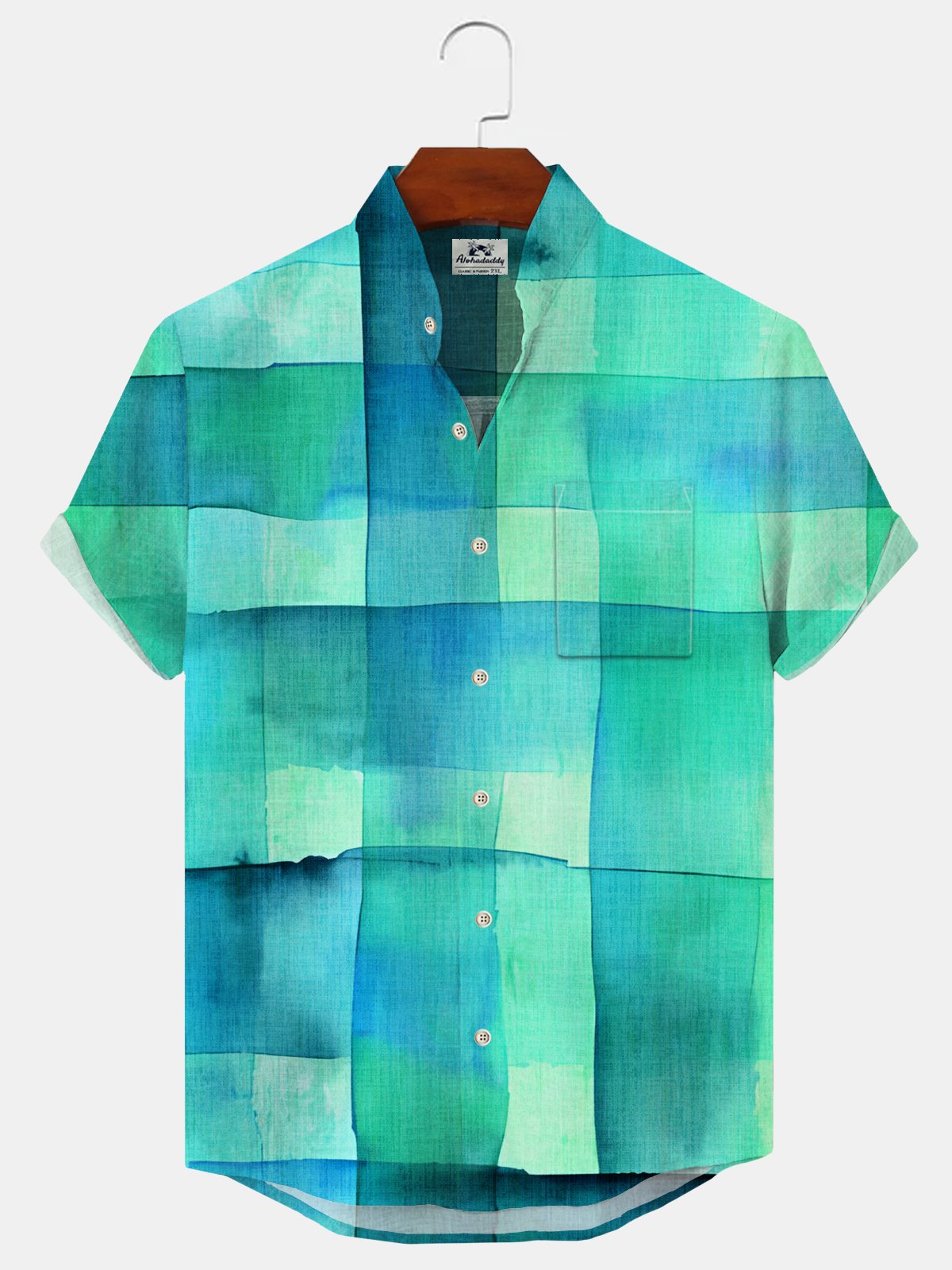 Alohadaddy Geometric Pattern Button Pocket Casual Short Sleeve Stand Collar Shirt