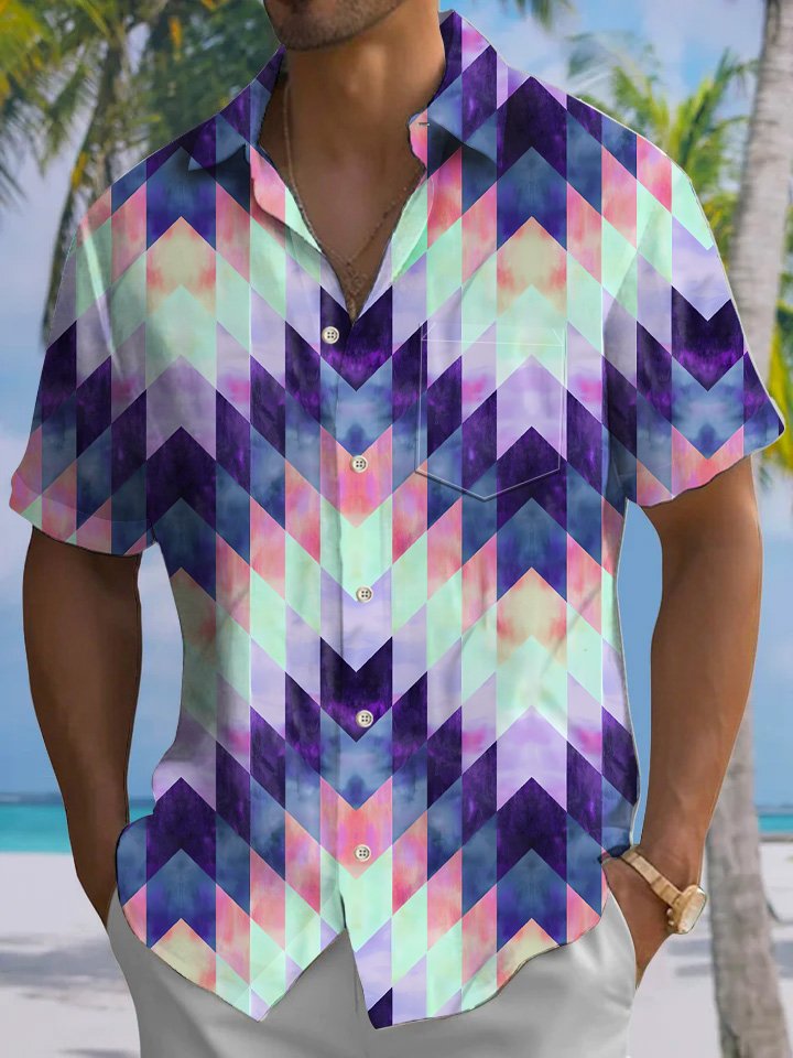 Camisa informal de manga corta con bolsillo con botones y diseño geométrico de diamantes de Alohadaddy