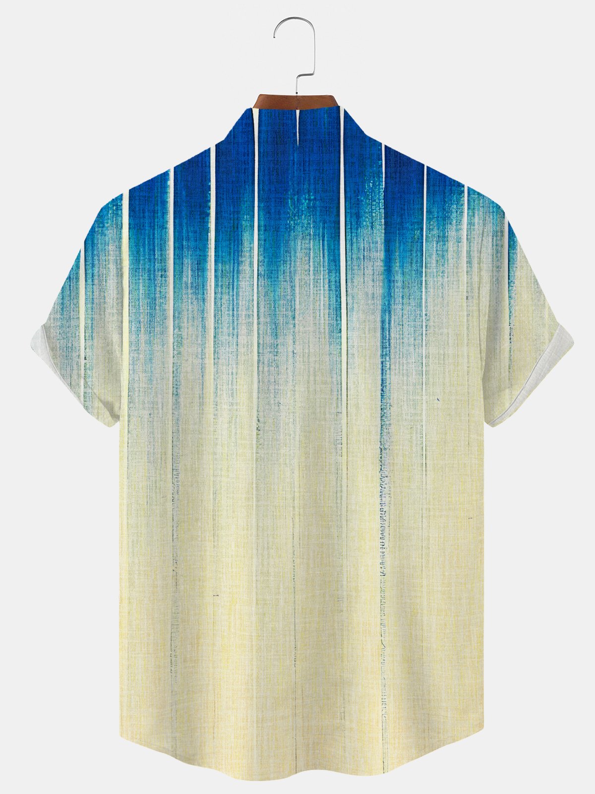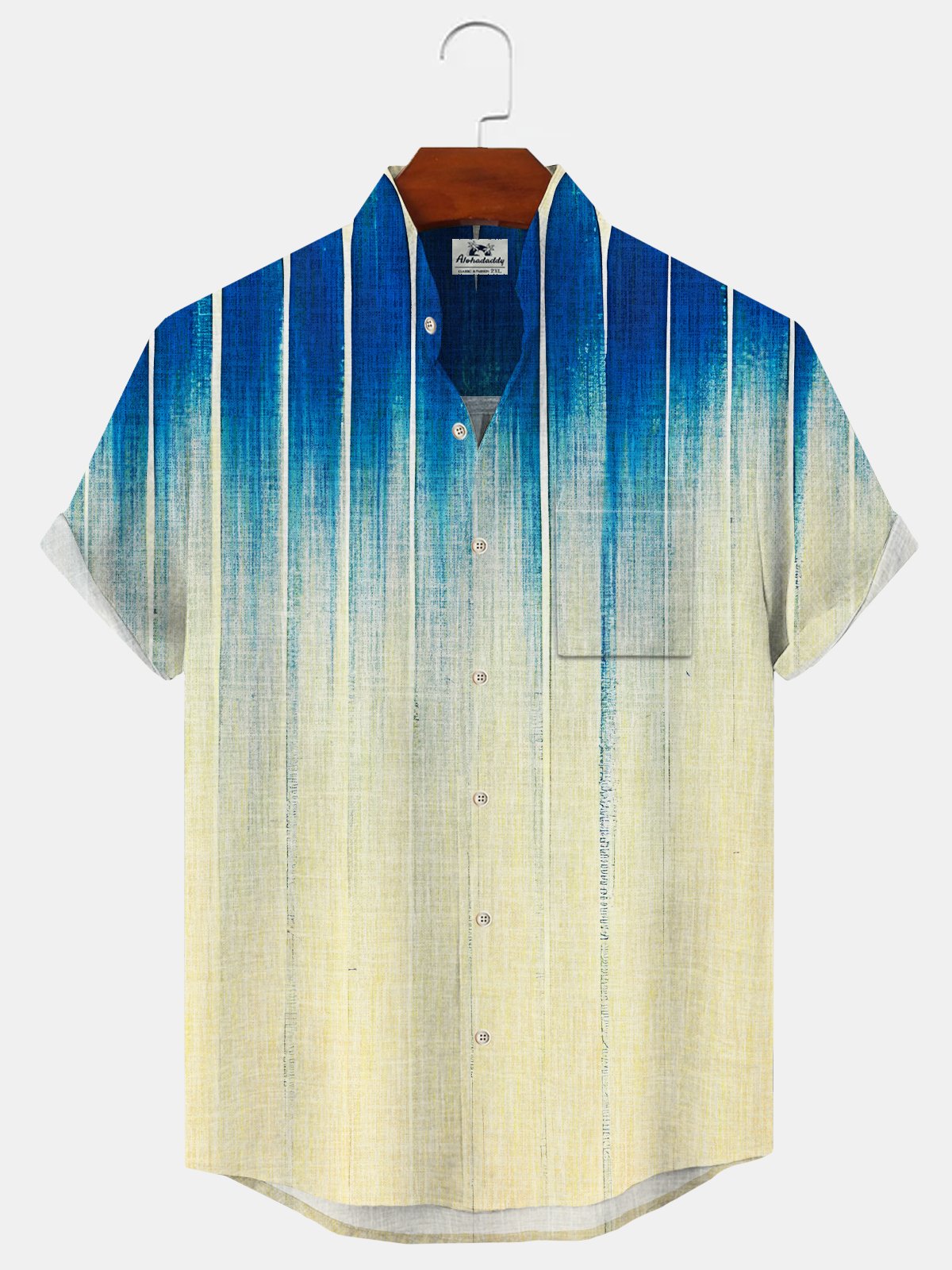 Alohadaddy Gradient Geometric Stripes Buttons Pockets Casual Short Sleeves Stand Collar Shirt