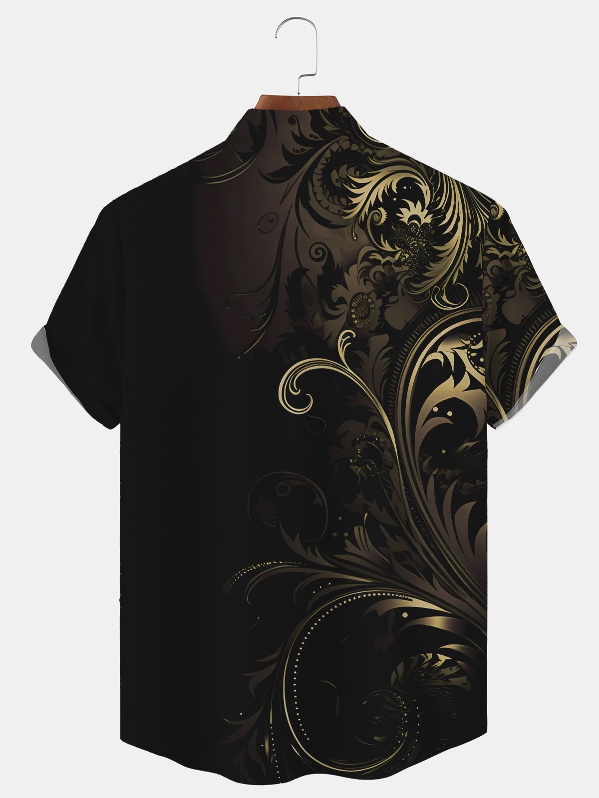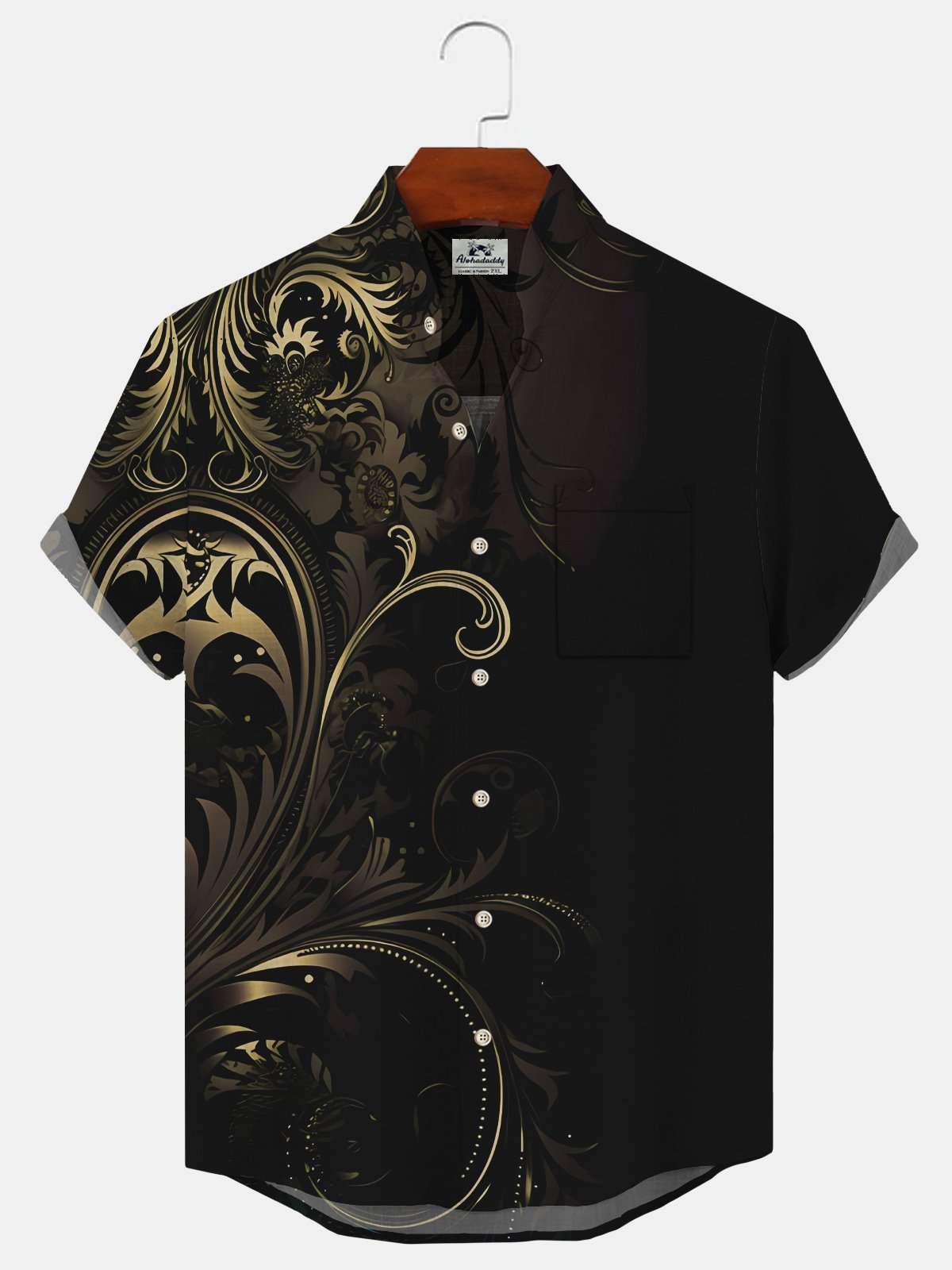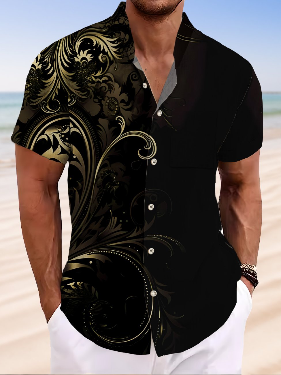 Alohadaddy Plant Asymmetric Button Pocket Casual Short Sleeve Stand Collar Shirt