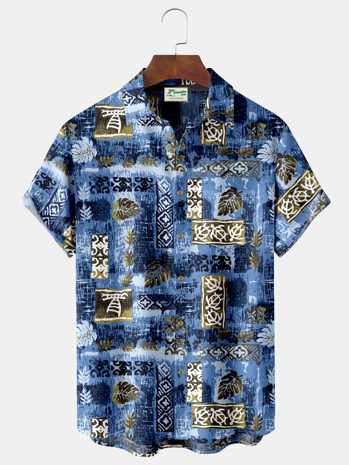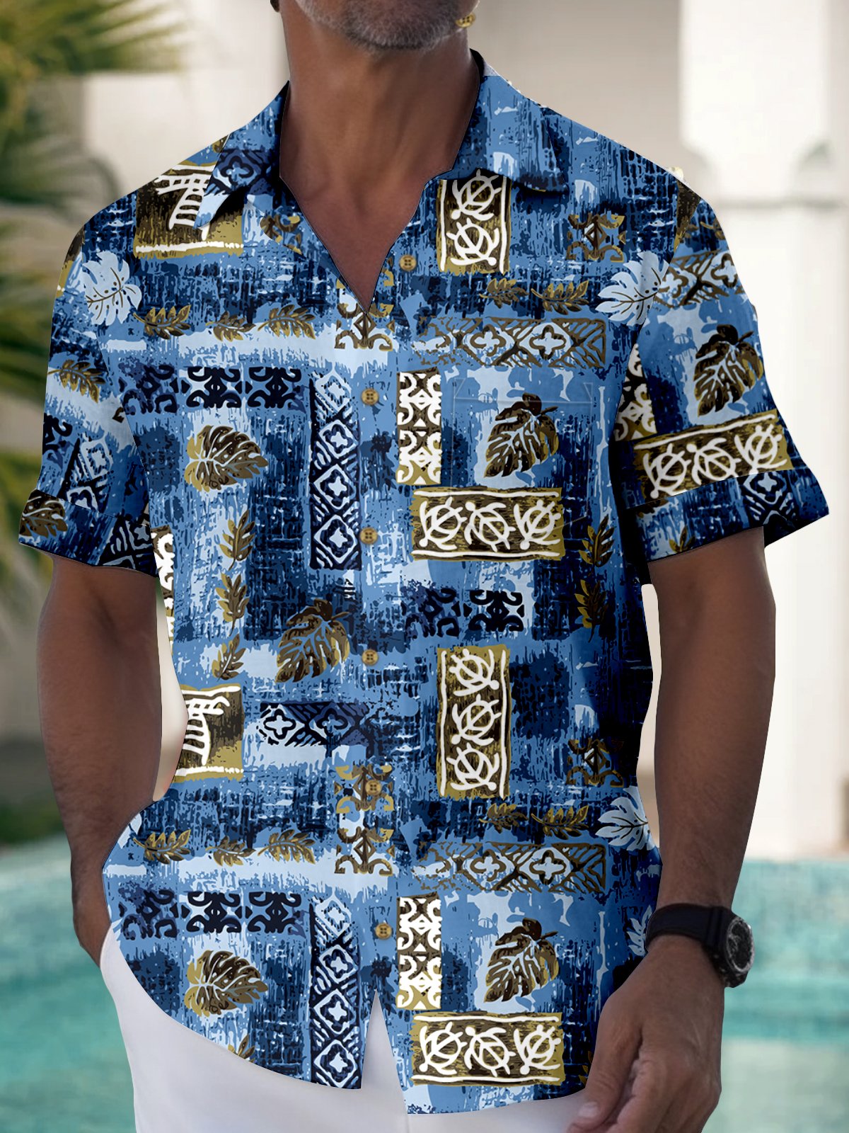 Camisa hawaiana extragrande con bolsillos y estampado de textura vegetal para hombre de Alohadaddy