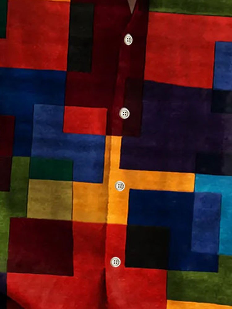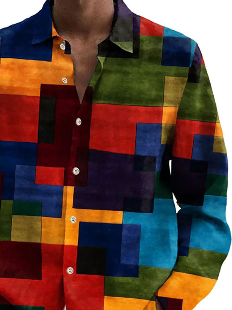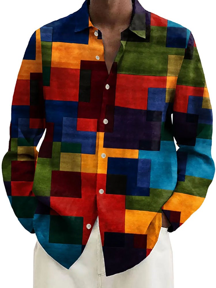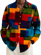 Camisa de manga larga con bolsillo y botones para hombre con estampado digital 3D y bloques de colores geométricos retro de Alohadaddy