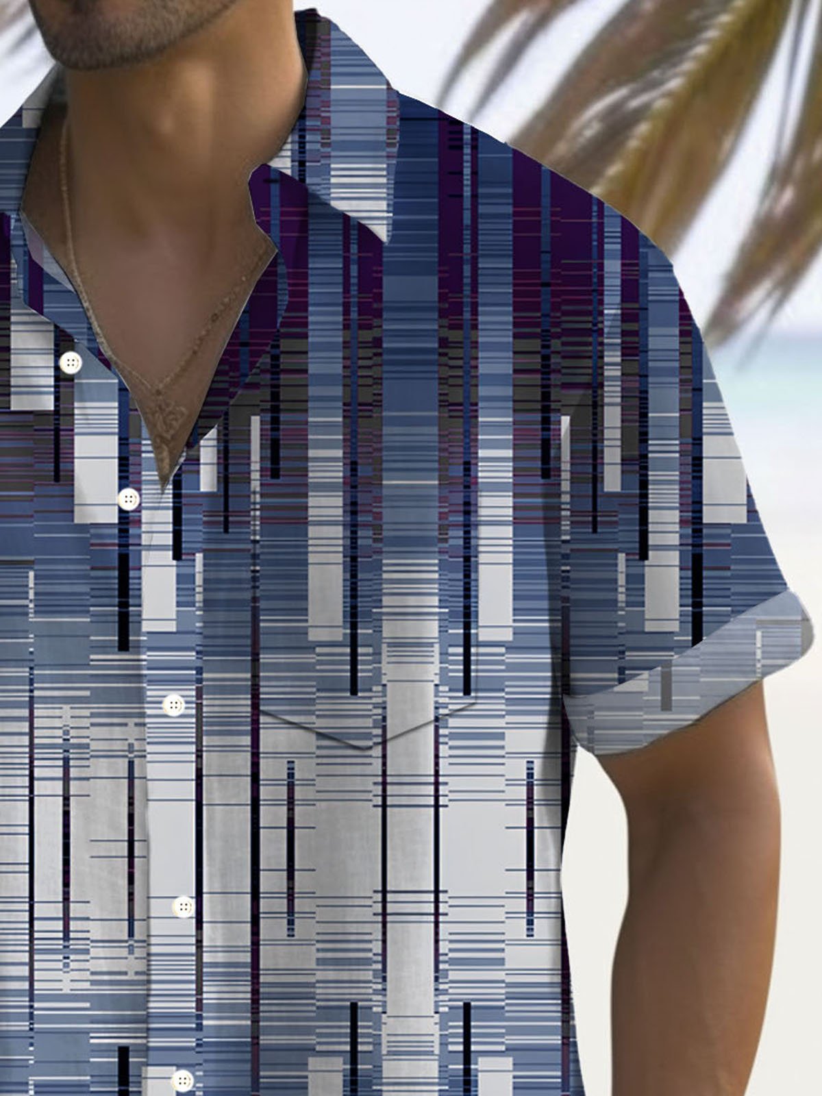 Camisa de manga corta con bolsillo abotonado y estampado digital 3D con degradado geométrico retro para hombre de Alohadaddy, tallas grandes y altas