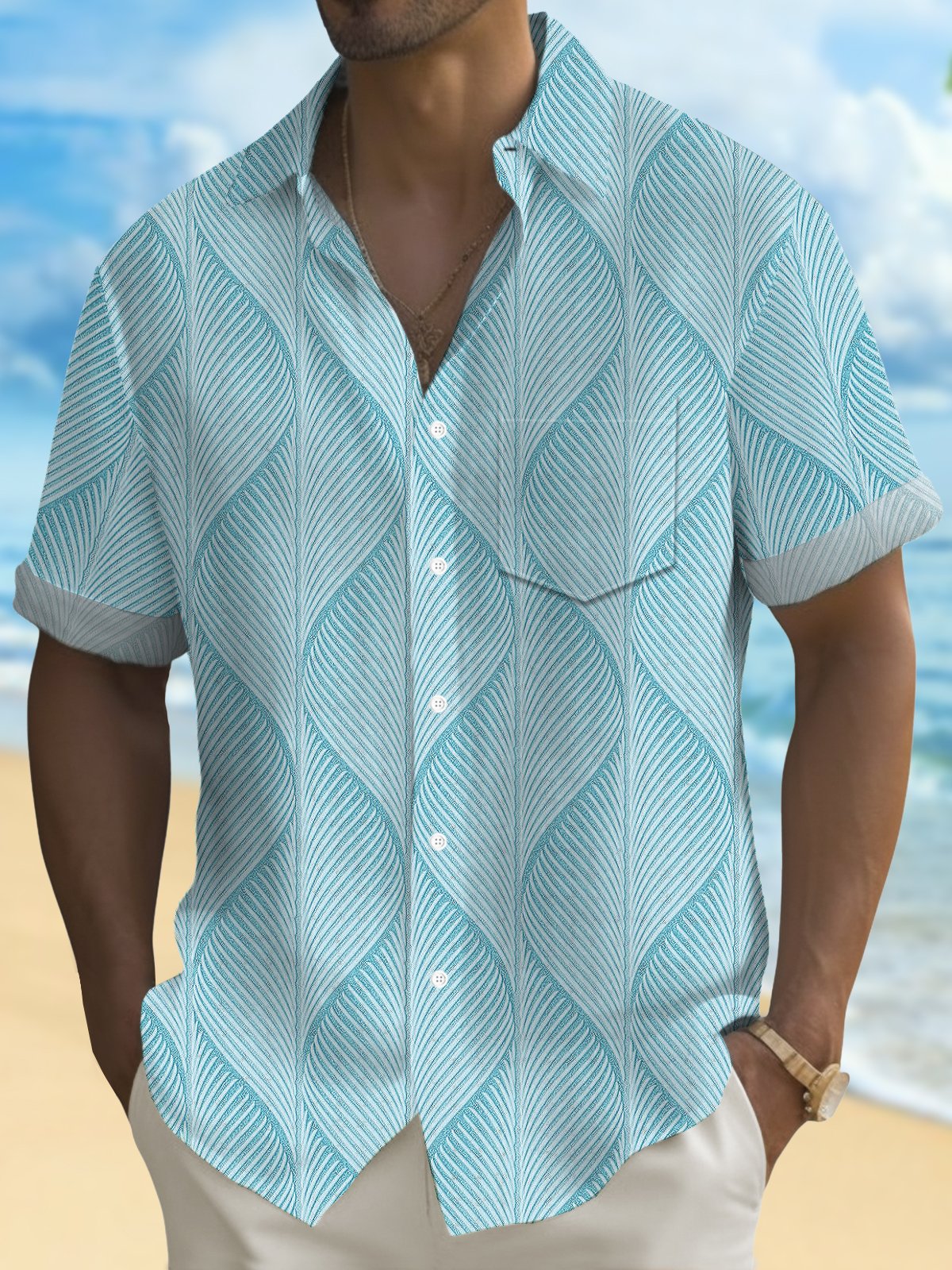Camisa de manga corta con bolsillo abotonado y estampado de textura de degradado geométrico retro para hombre de Alohadaddy