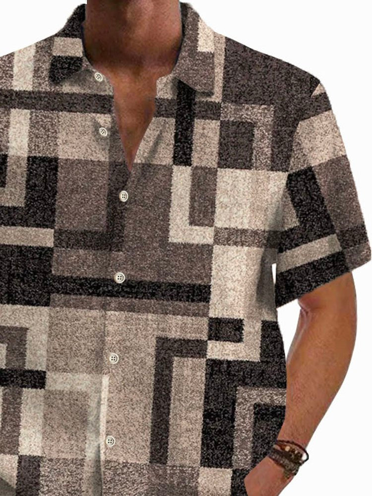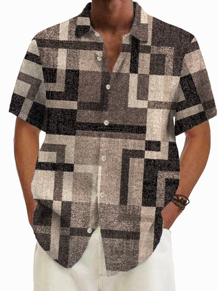 Camisa de manga corta con bolsillo abotonado y estampado texturizado geométrico retro para hombre de Alohadaddy