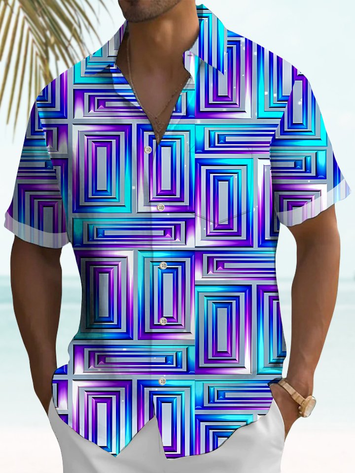 Camisa de manga corta con bolsillo y botones para hombre con estampado digital 3D geométrico y degradado retro de Alohadaddy
