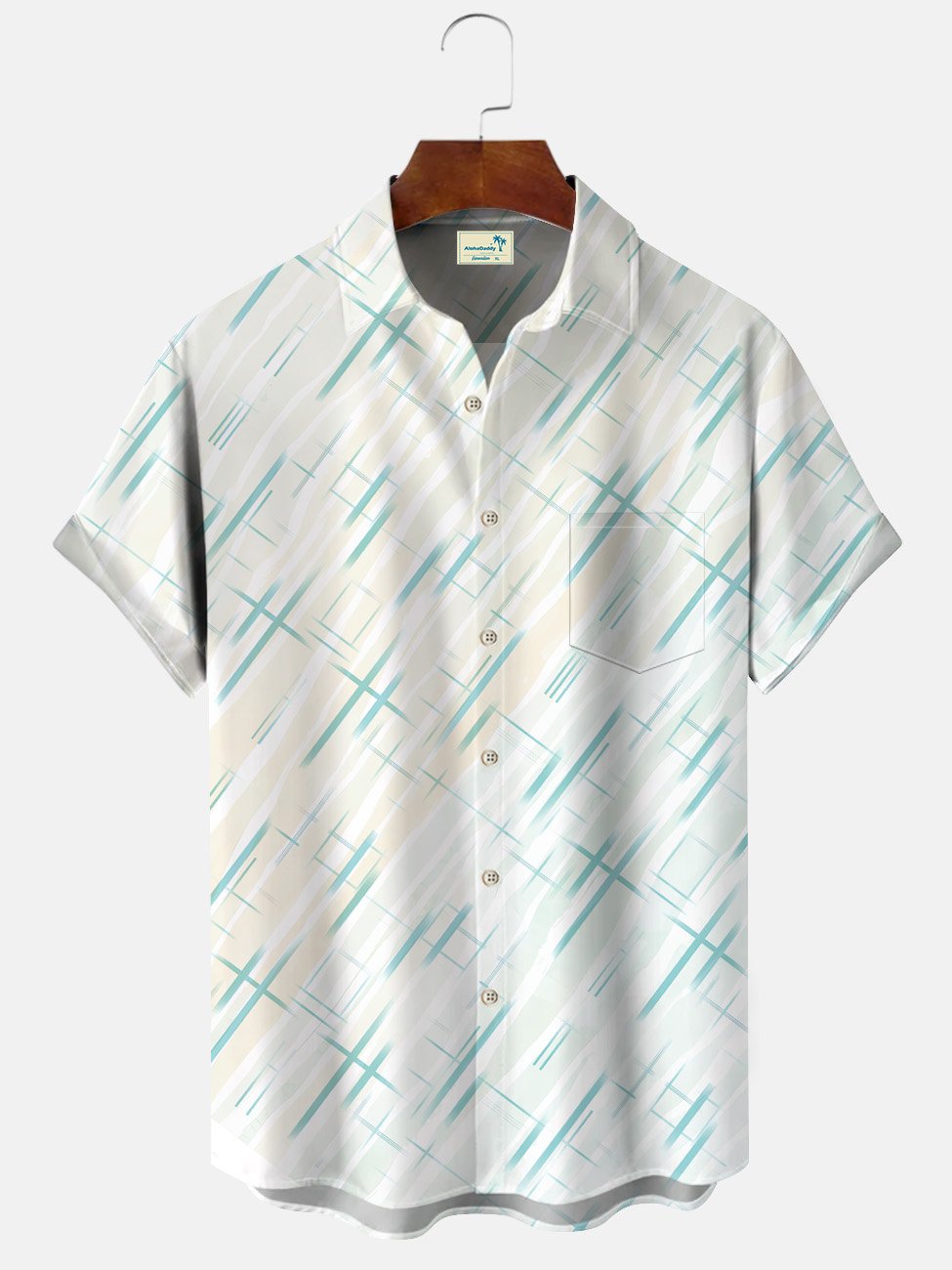 Camisa informal de manga corta con bolsillos y botones para hombre, con rayas geométricas de verano de Alohadaddy