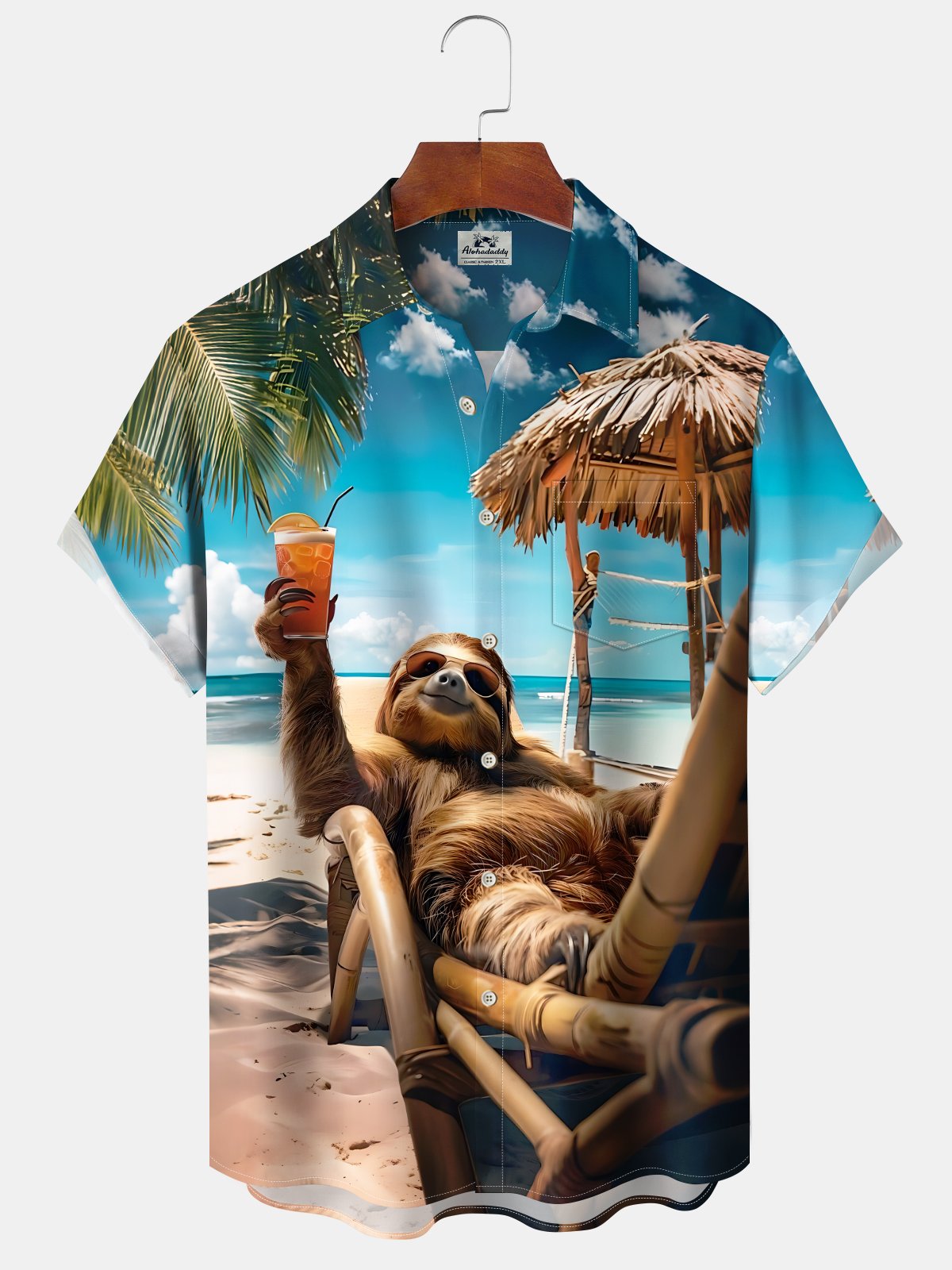 Alohadaddy Hawaiian Sloth Vacation Print Art Button Cardigan Pocket Stretch Large Size Long Short Sleeve Shirt