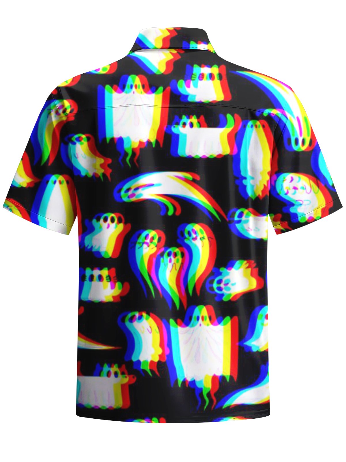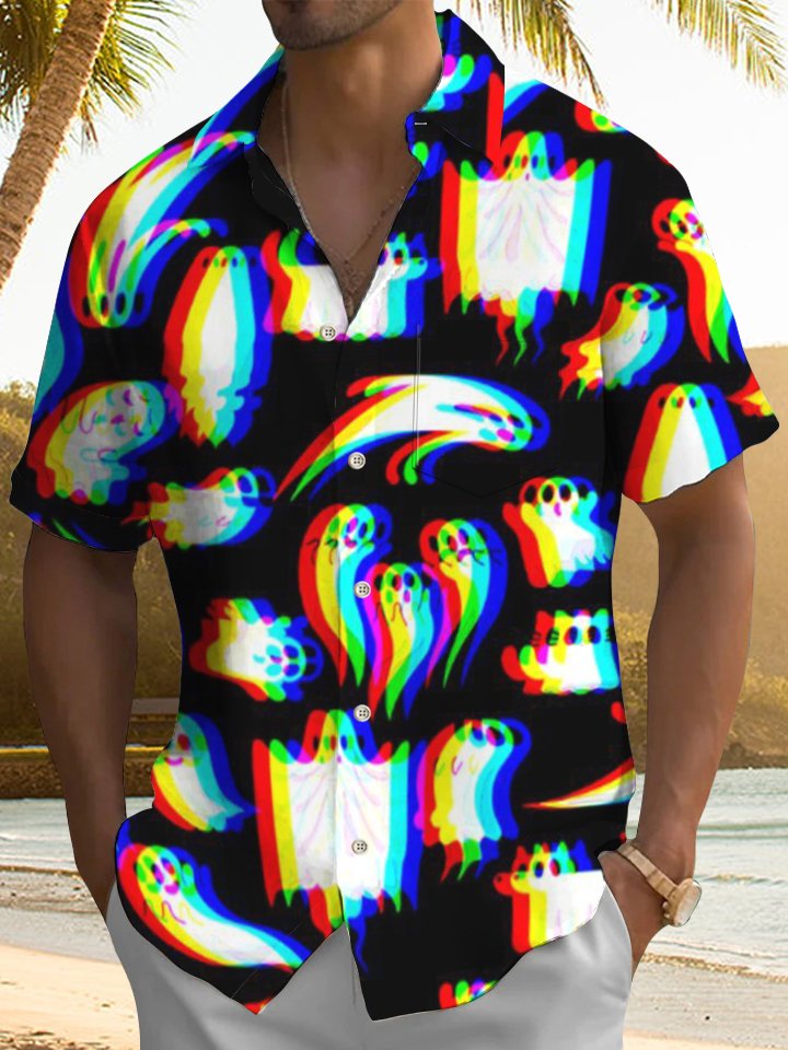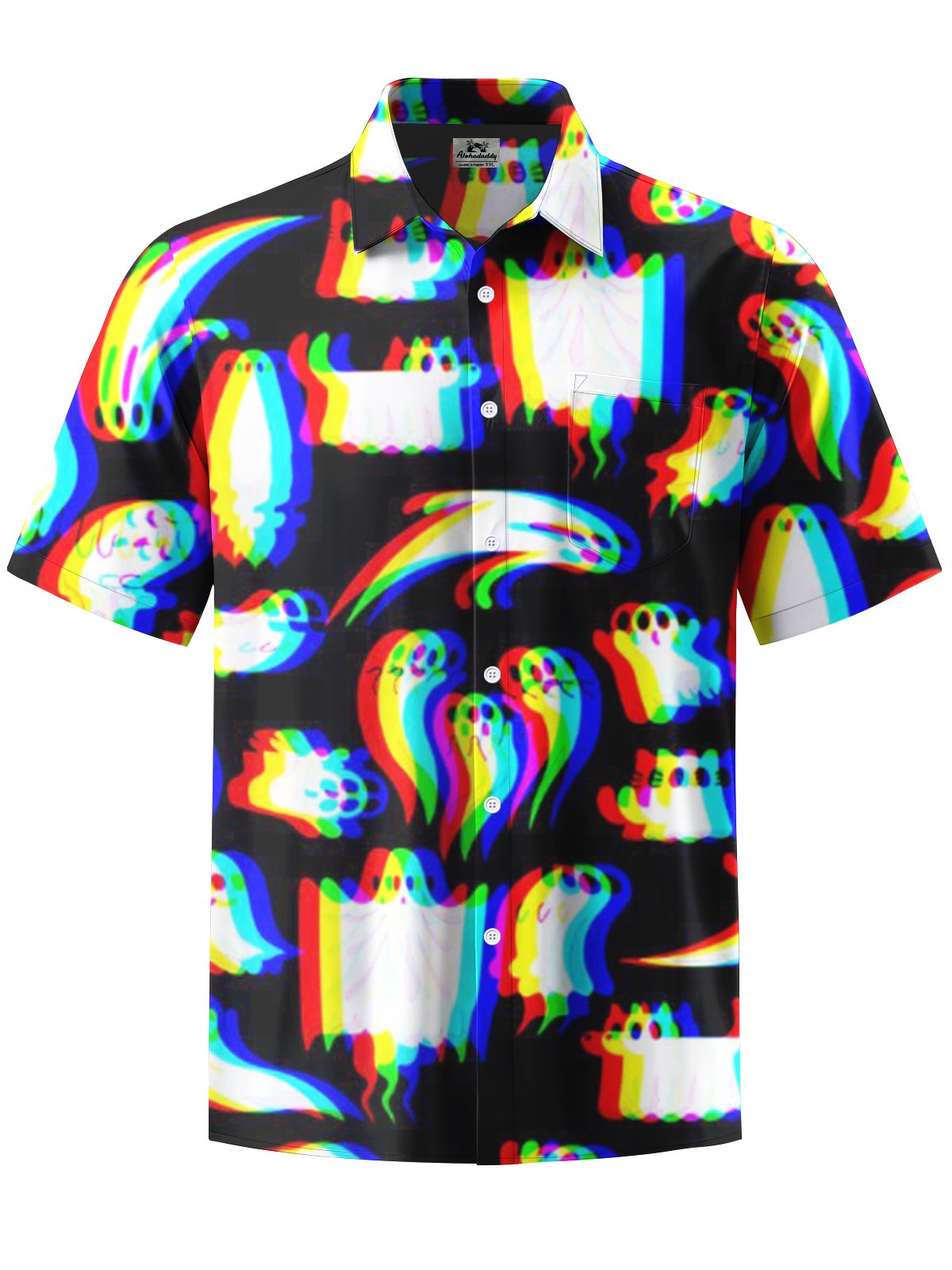 Alohadaddy® Halloween Ghost Art Print Chest Pocket Stretch Men's Short Sleeve Shirt Big & Tall