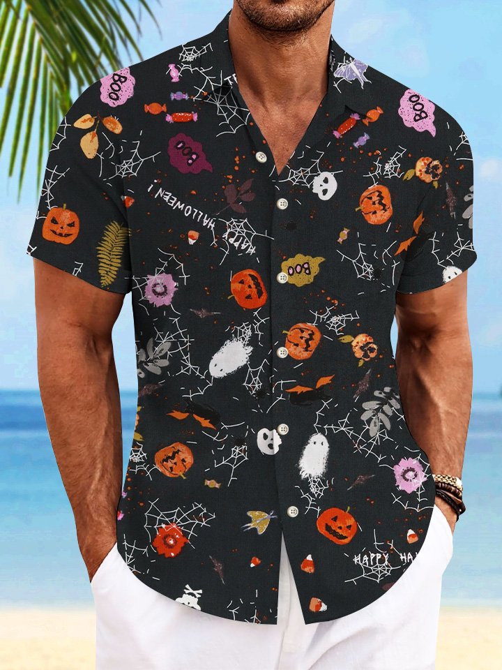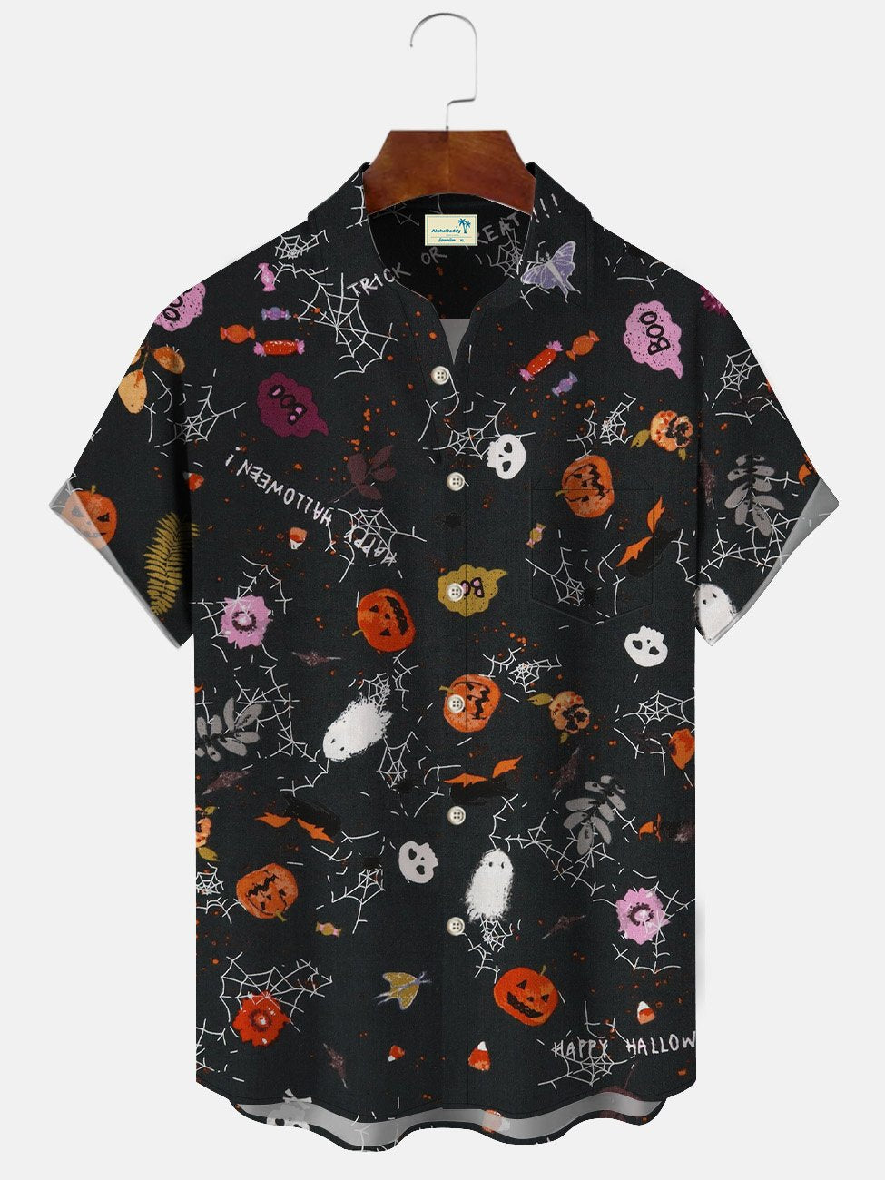 Camisa informal de manga corta con botones y bolsillo con calabaza navideña de Alohadaddy