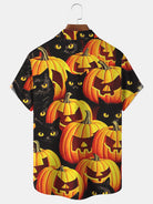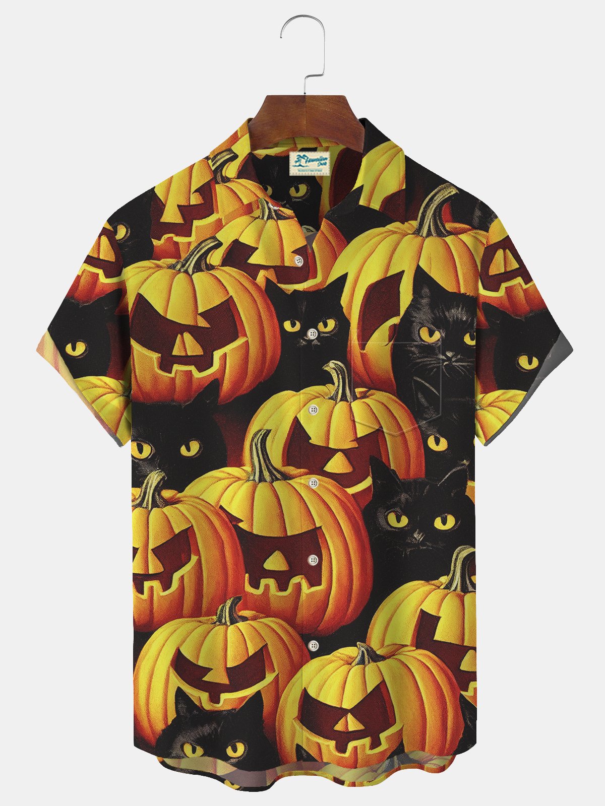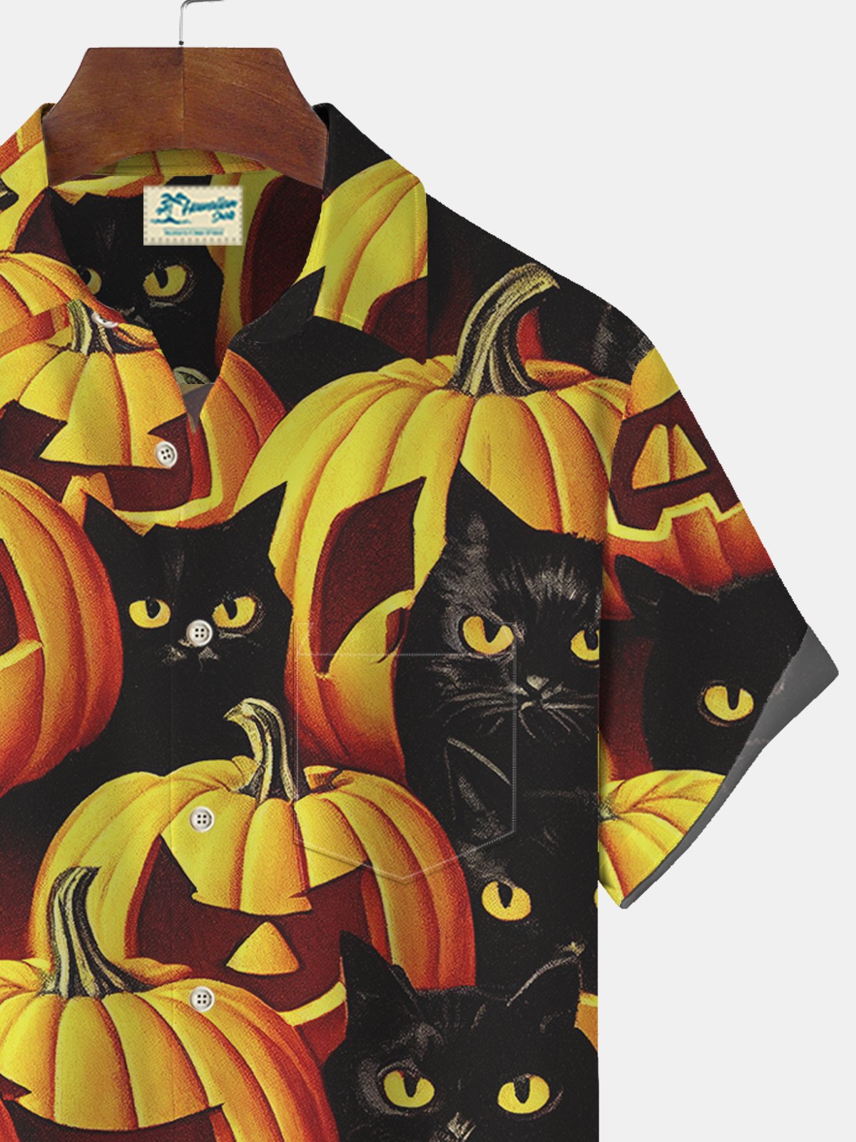 Camisa hawaiana de manga corta extragrande con bolsillos para hombre, con estampado de gato negro y Halloween de Alohadaddy