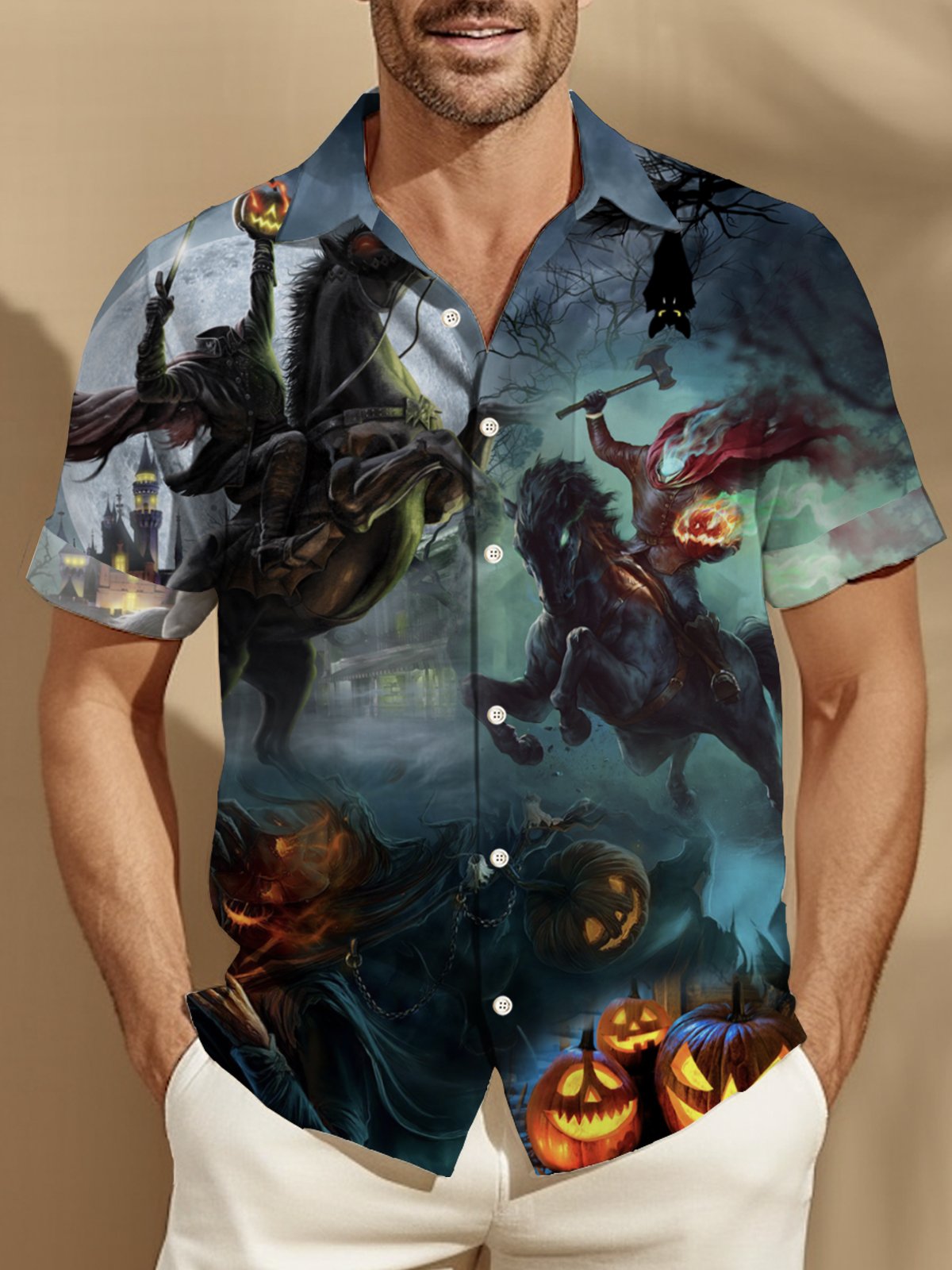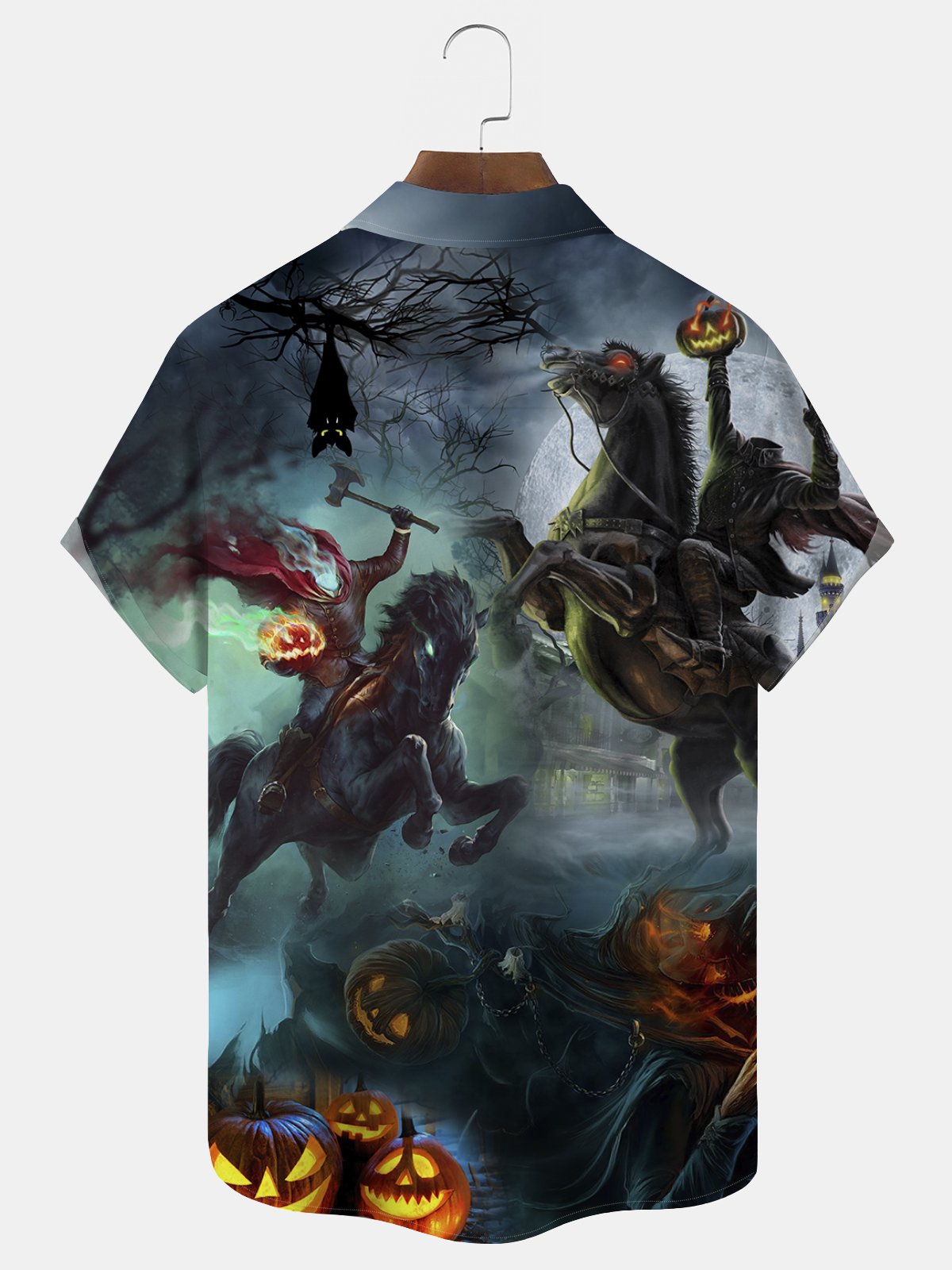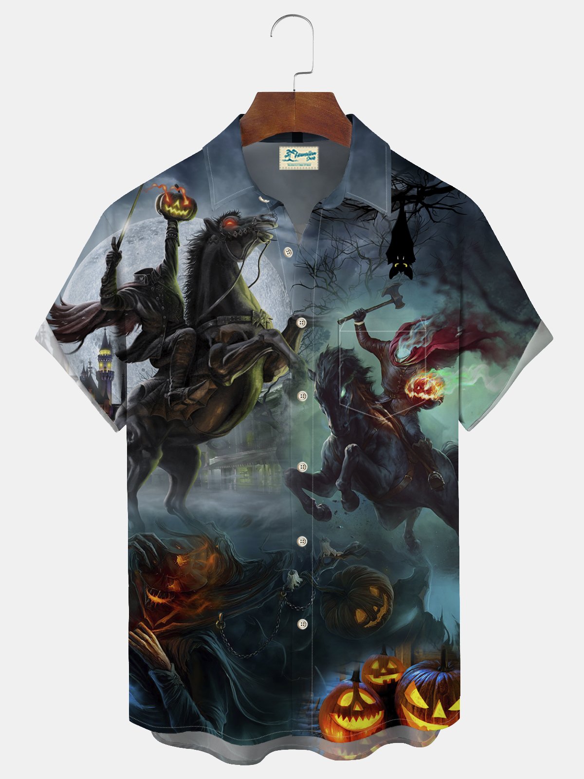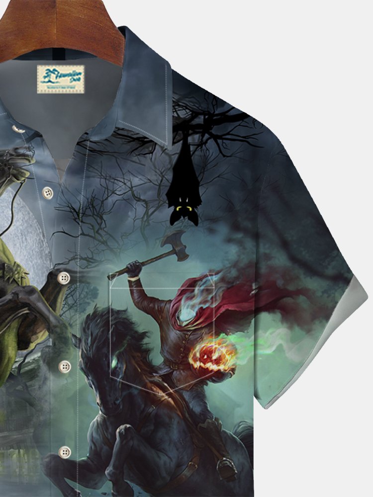 Camisa hawaiana extragrande con bolsillos y estampado de Halloween de jinete sin cabeza para hombre de Alohadaddy