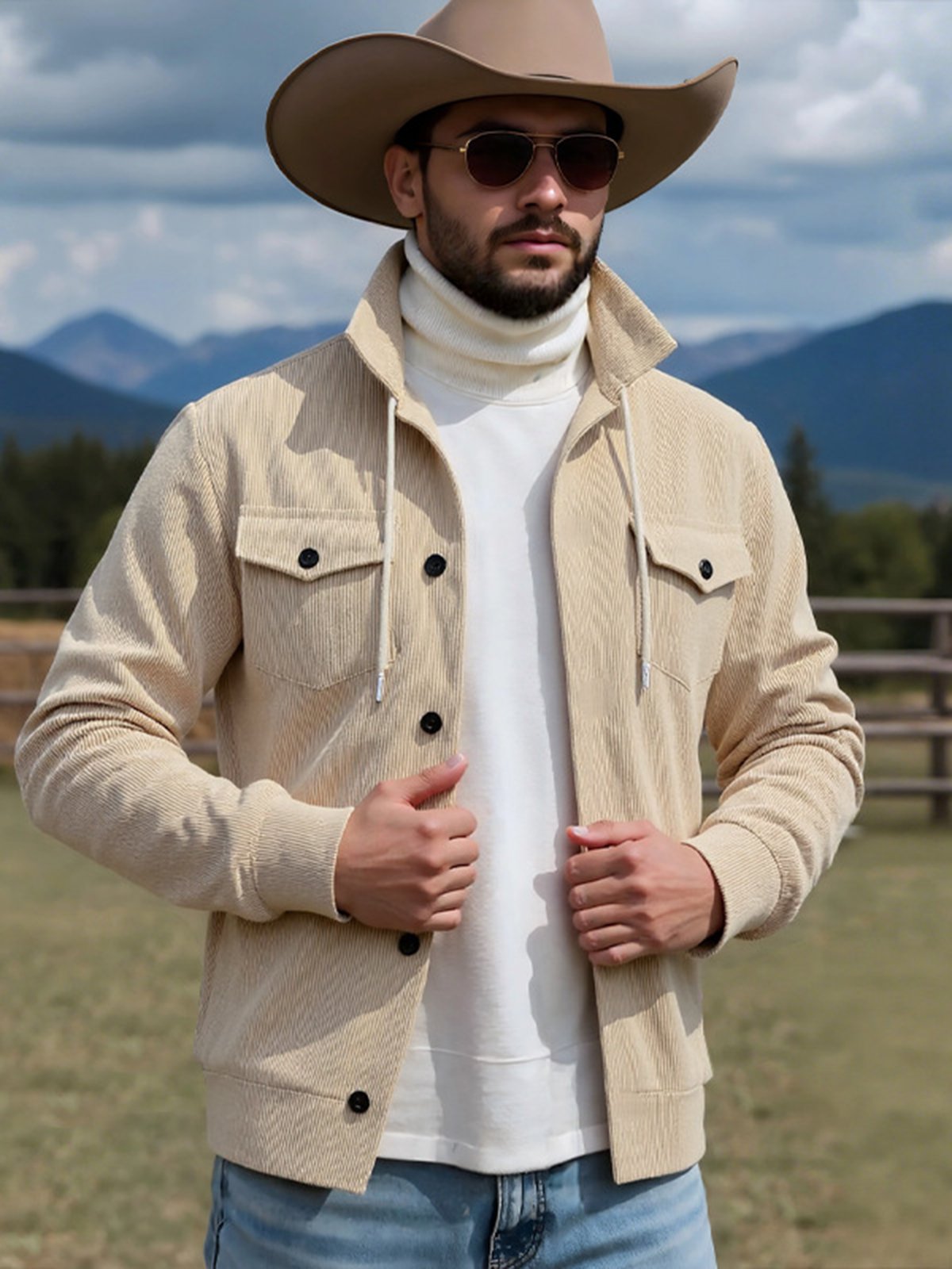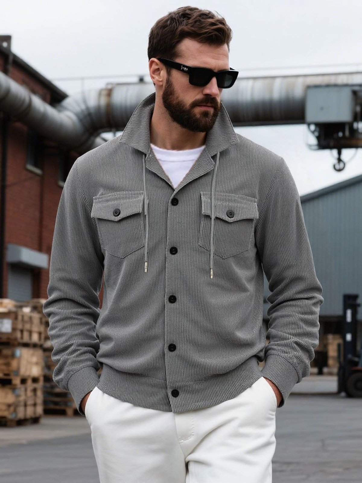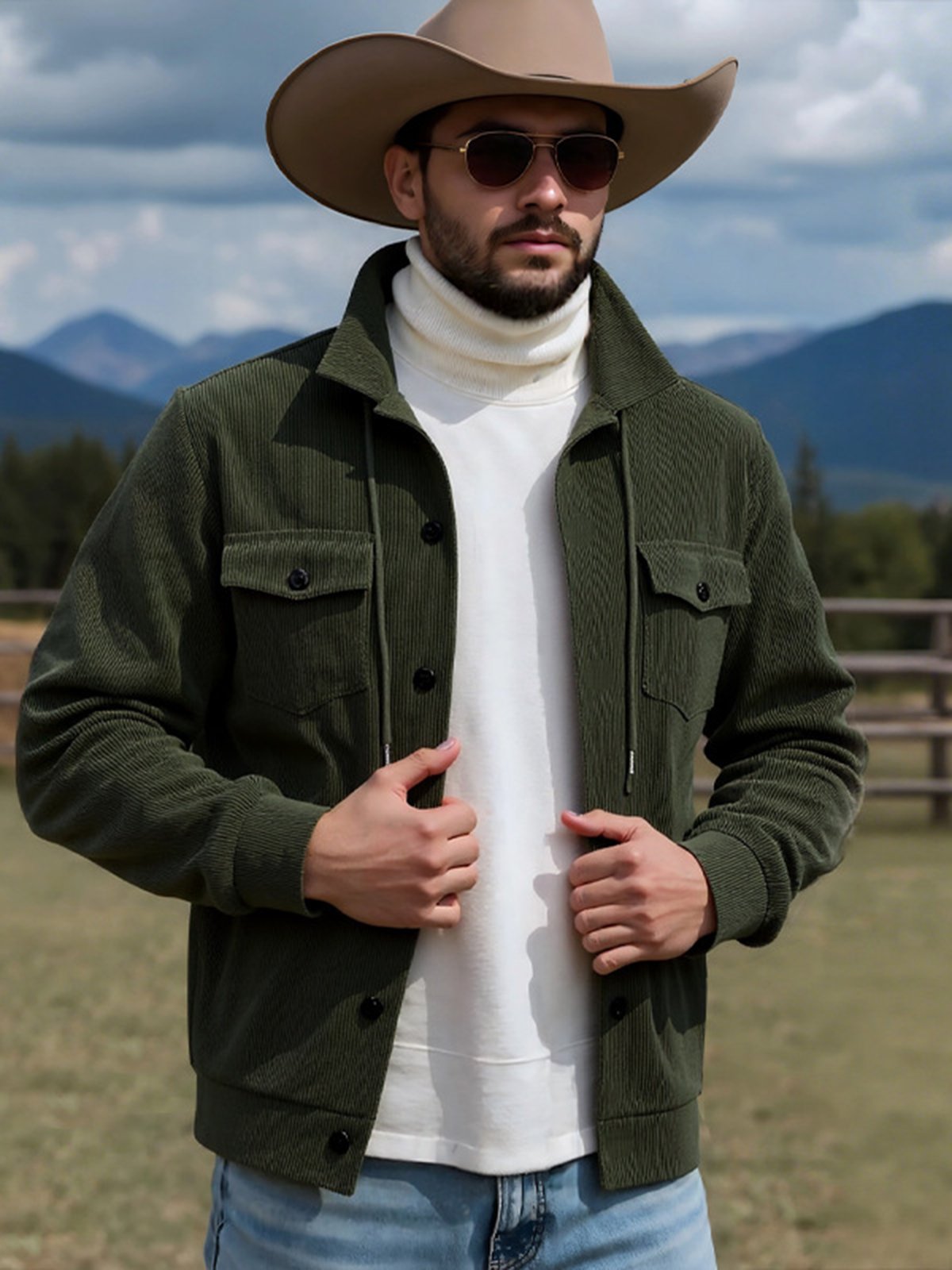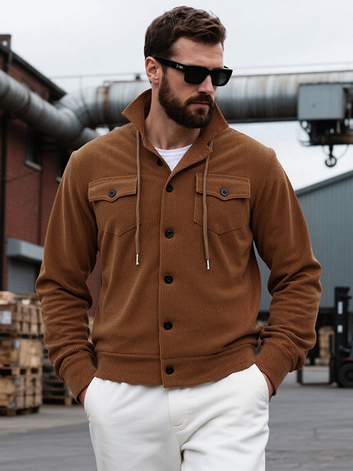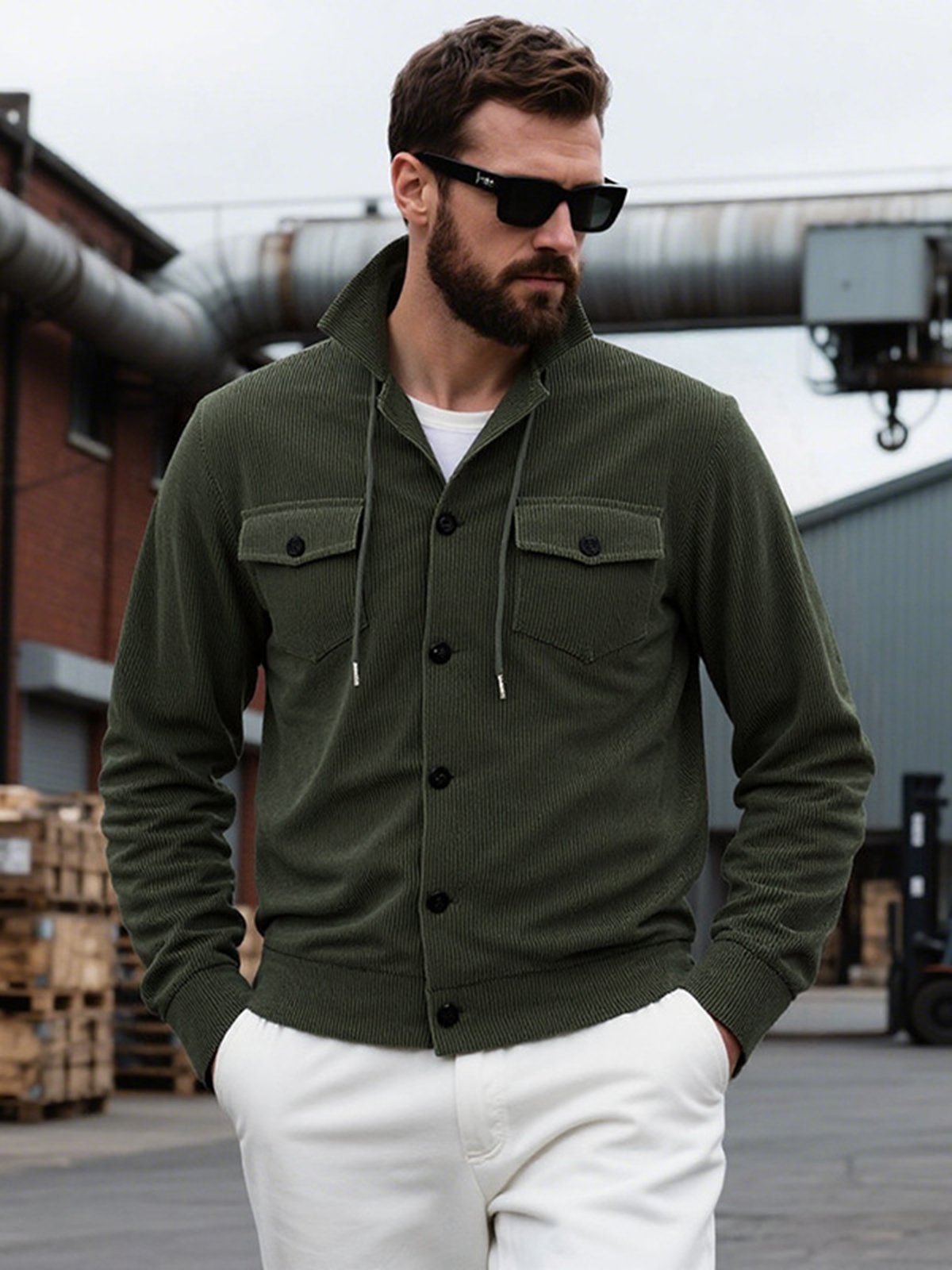 Alohadaddy® Casual Corduroy Jacket Coat Lapel American Retro Multi-pocket Work Jacket Men