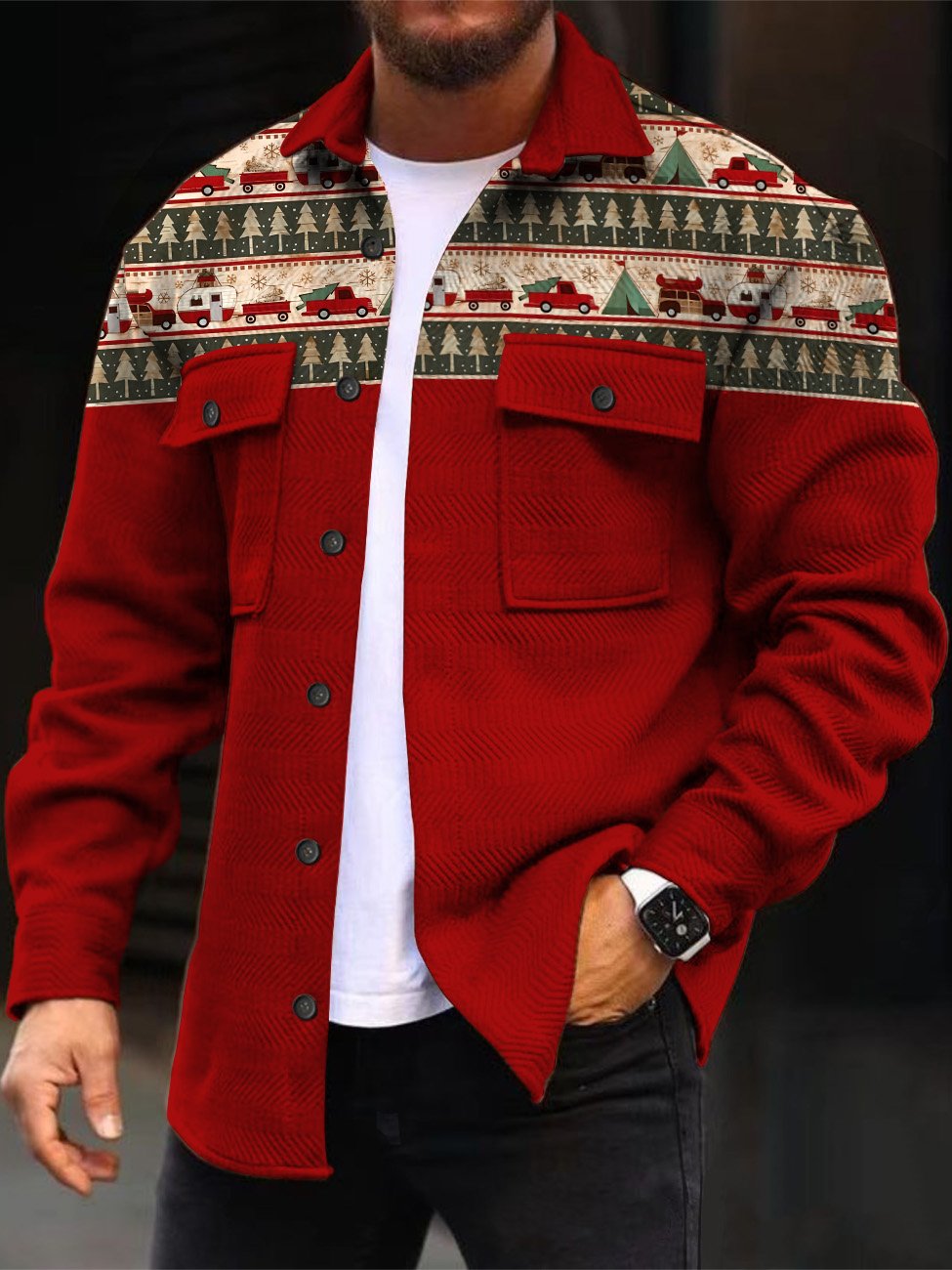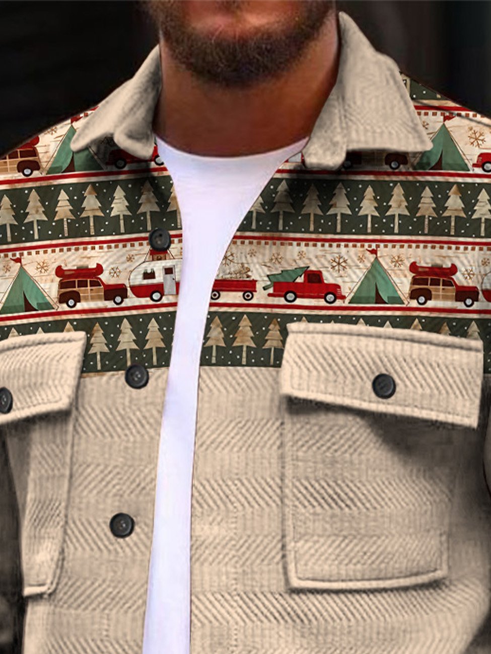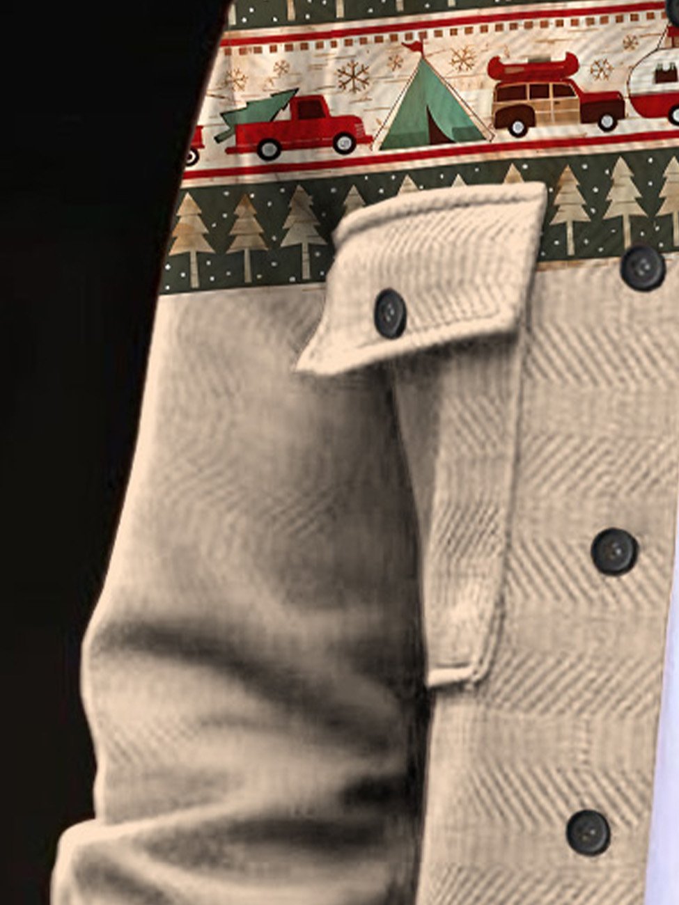 Camisa de manga larga informal con estampado digital 3D de pana retro navideña de Alohadaddy, chaqueta alargada y engrosada