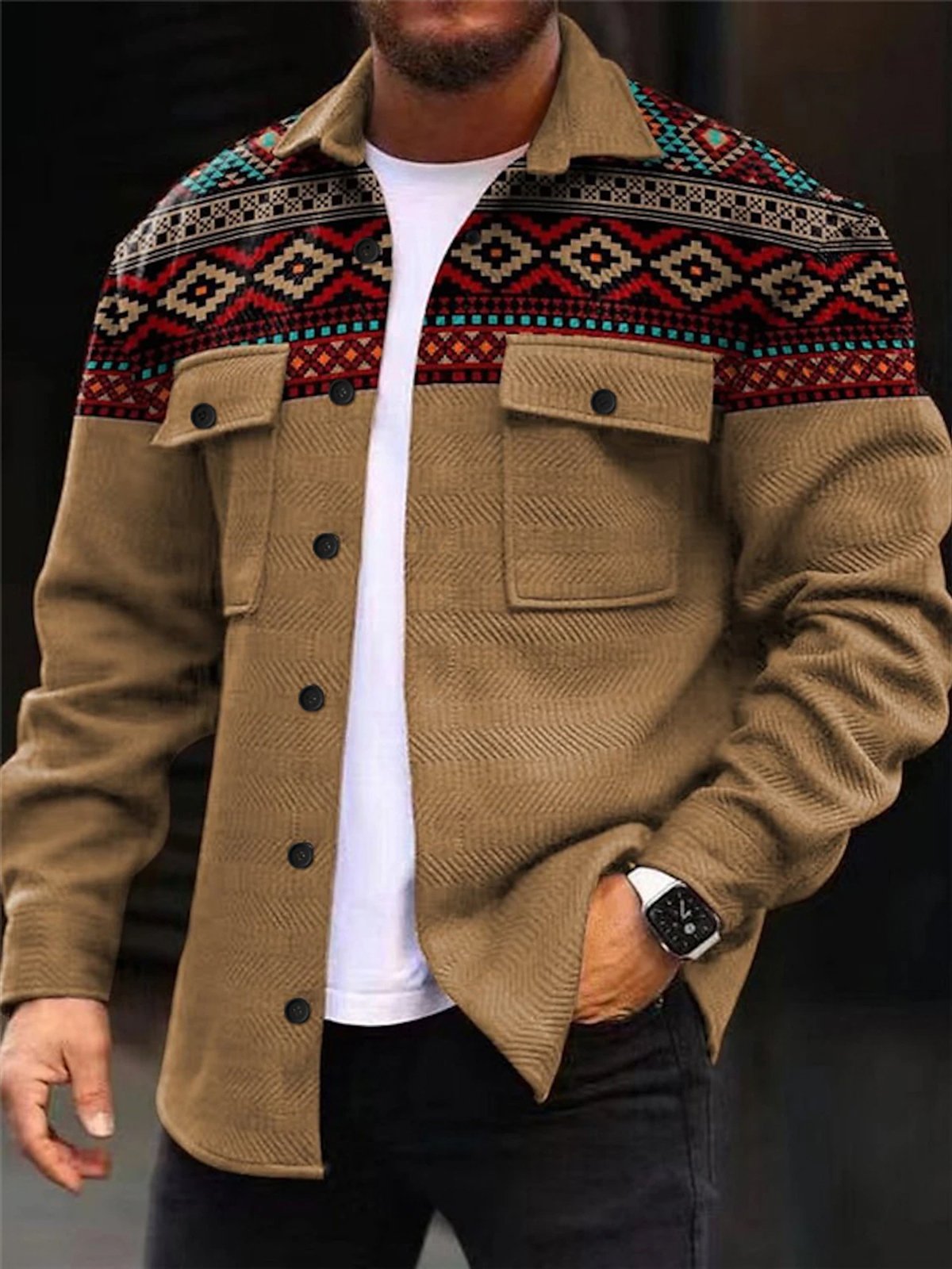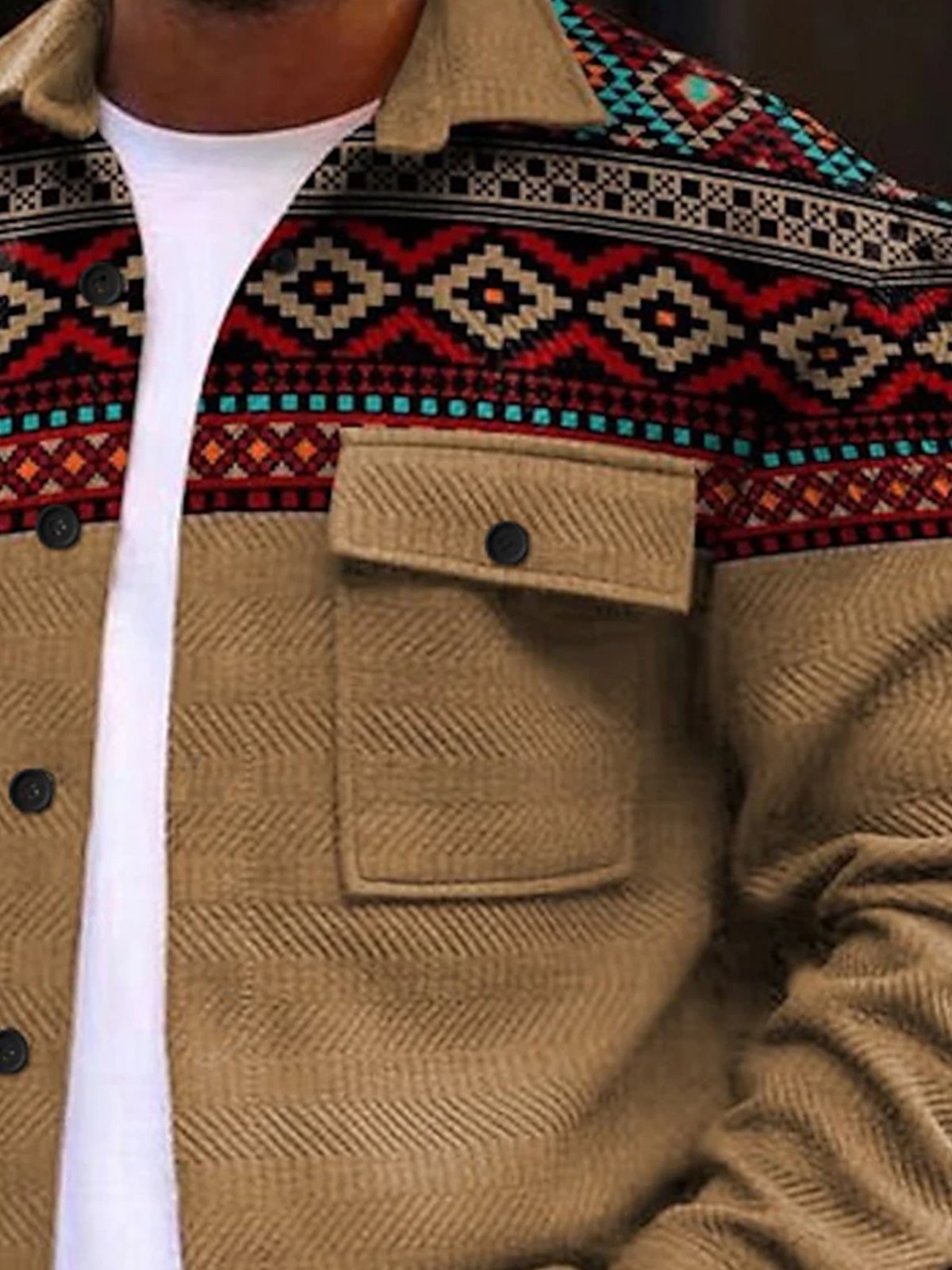 Chaqueta de trabajo con bolsillo para hombre, con estampado digital 3D de gráficos étnicos y pana con diseño retro geométrico de Alohadaddy