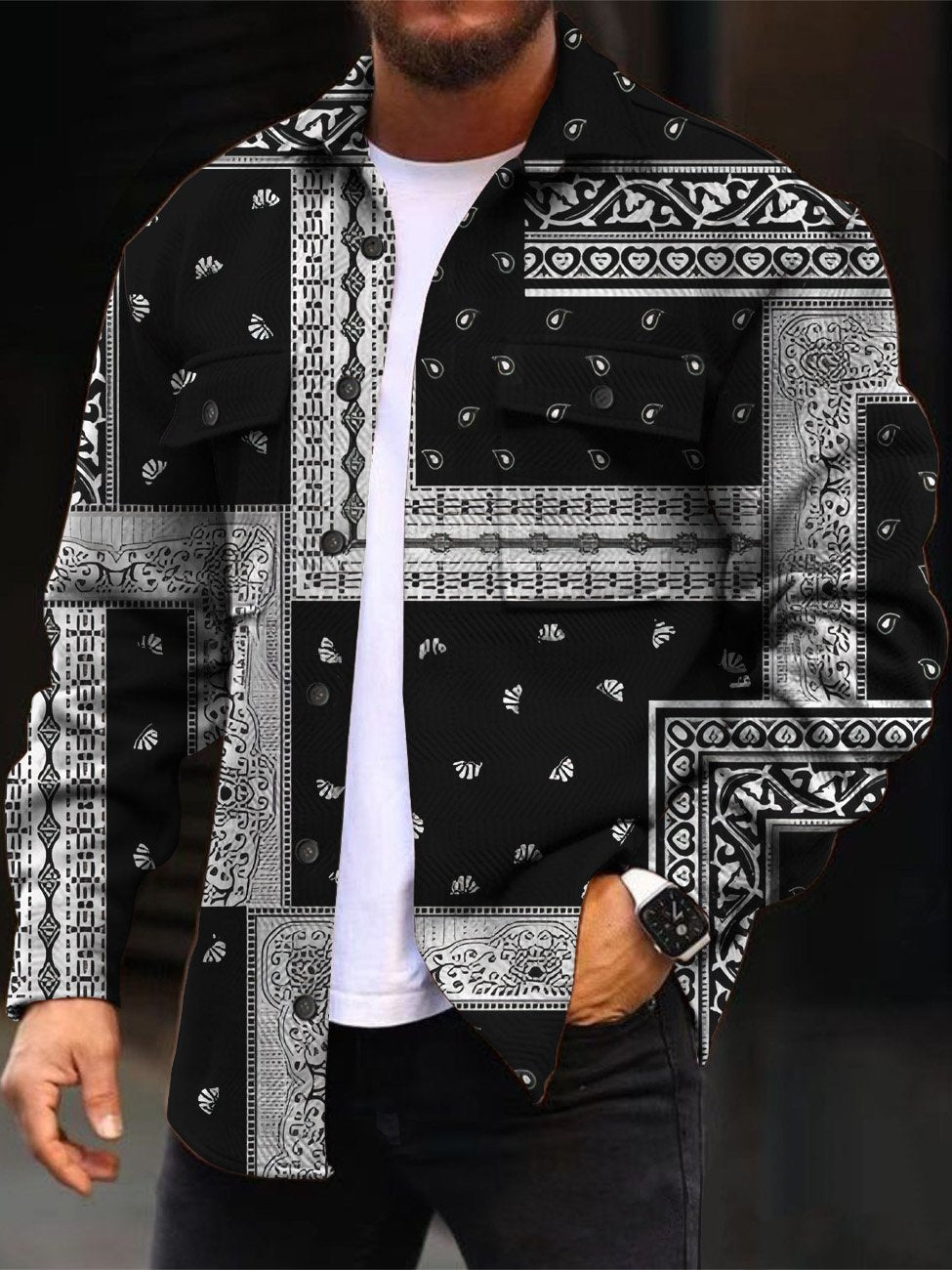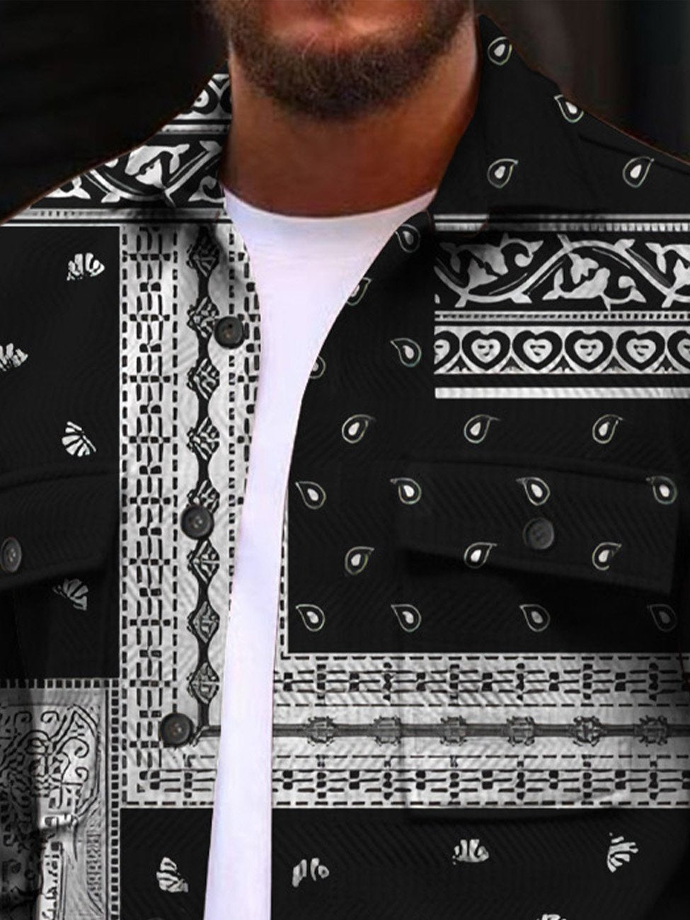 Chaqueta de trabajo con bolsillo para hombre, con estampado digital 3D de gráficos étnicos y pana con diseño retro geométrico de Alohadaddy