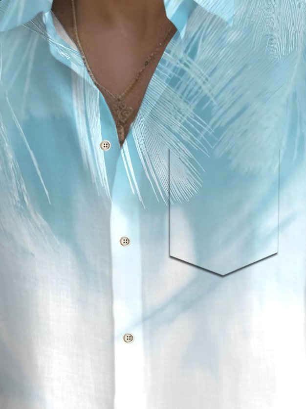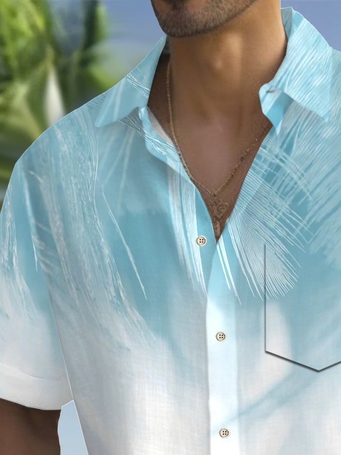 Alohadaddy® Beach Vacation Men's Casual Stylish Hawaiian Shirt Summer Shirts Gradient Plant Print Pocket Short Sleeve Sleeve Shirt Big Tall