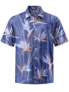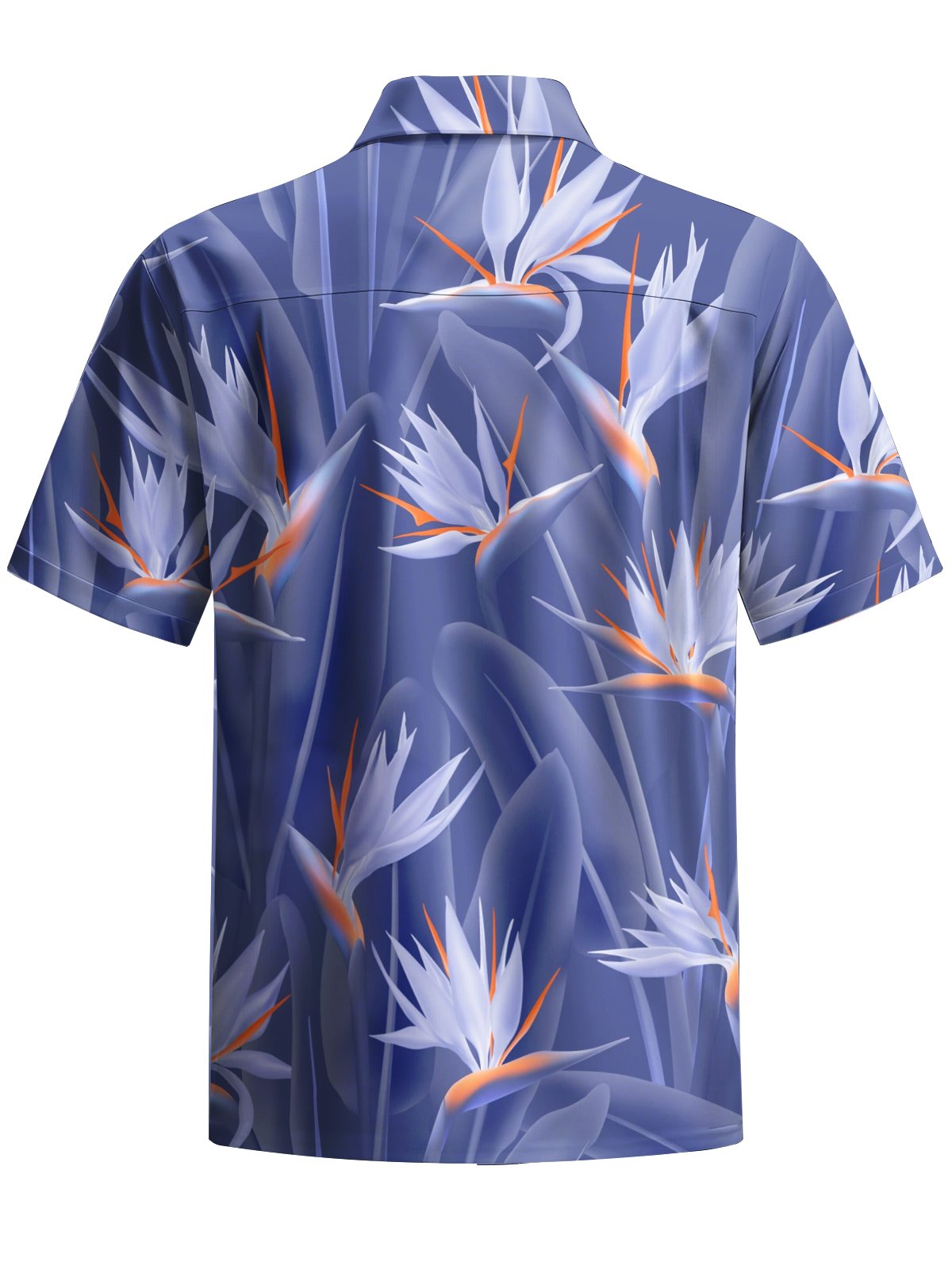 Alohadaddy® Hawaiian Crane Orchid Print Moisture Wicking Elastic Pockets Large Size Men's Short Sleeve Shirt