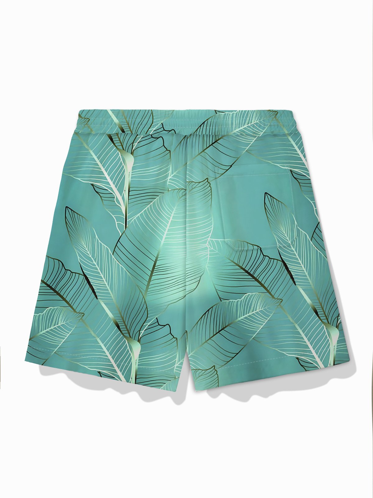 Pantalones cortos de baño con cordón elástico y estampado degradado de hojas de plantas hawaianas de Alohadaddy para hombre