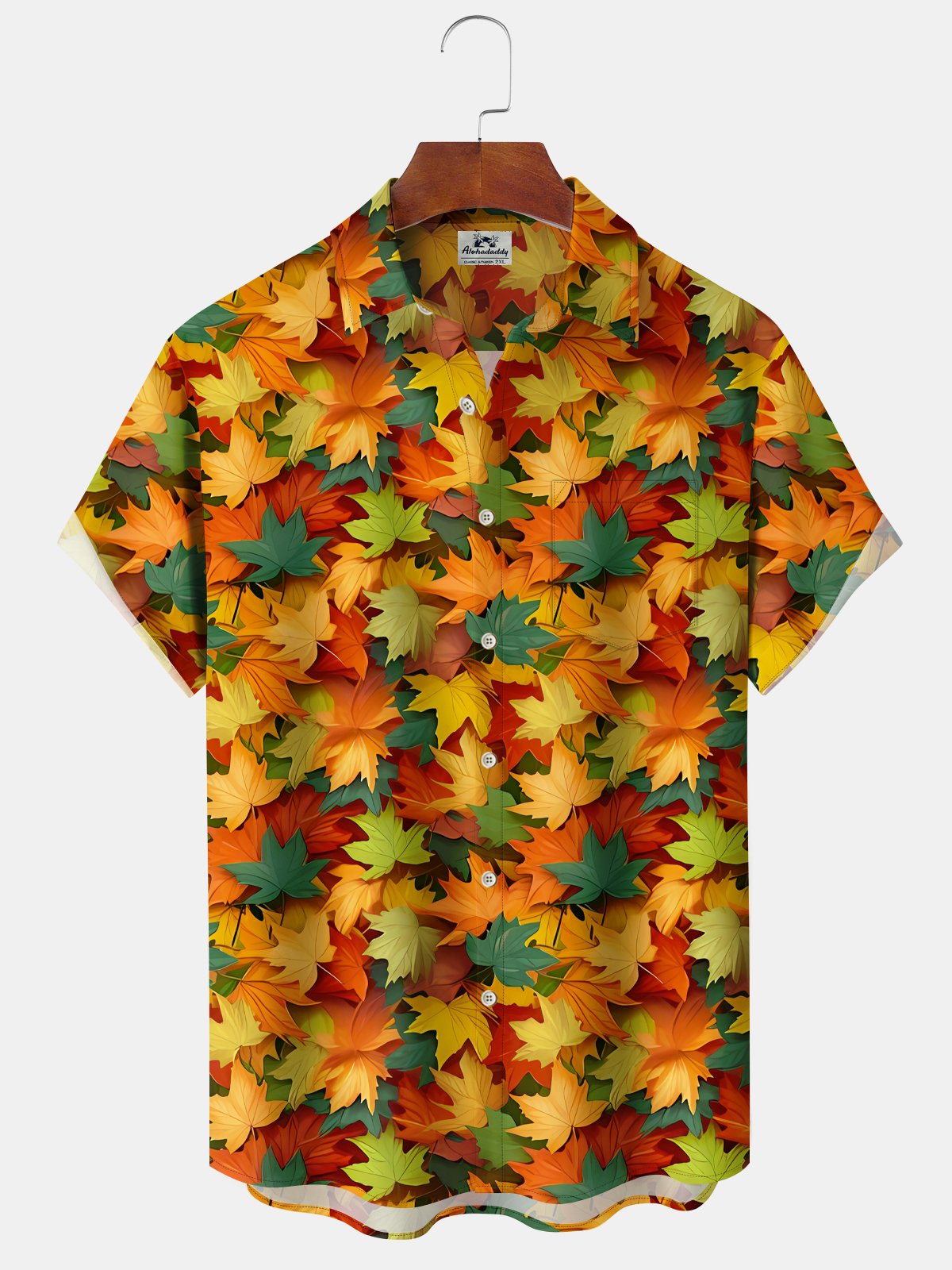 Alohadaddy Men's Vacation Hawaii Floral Maple Leaf Pocket Stretch Shirt
