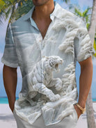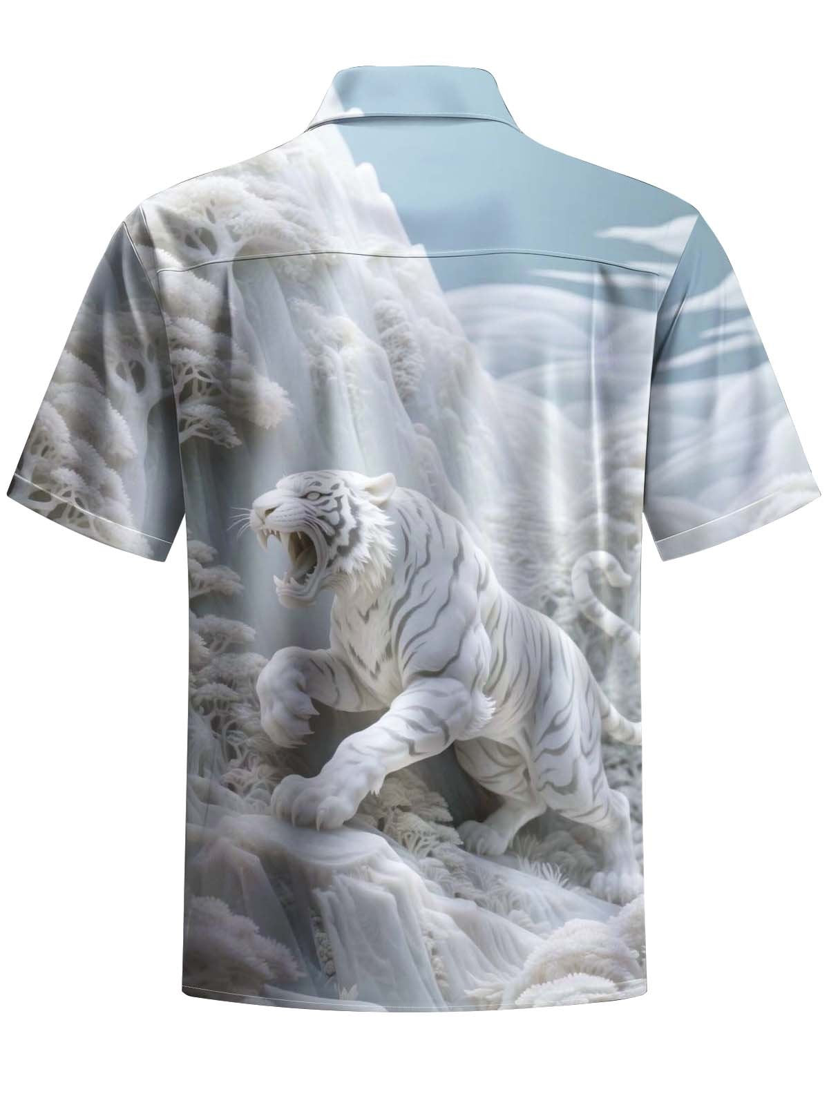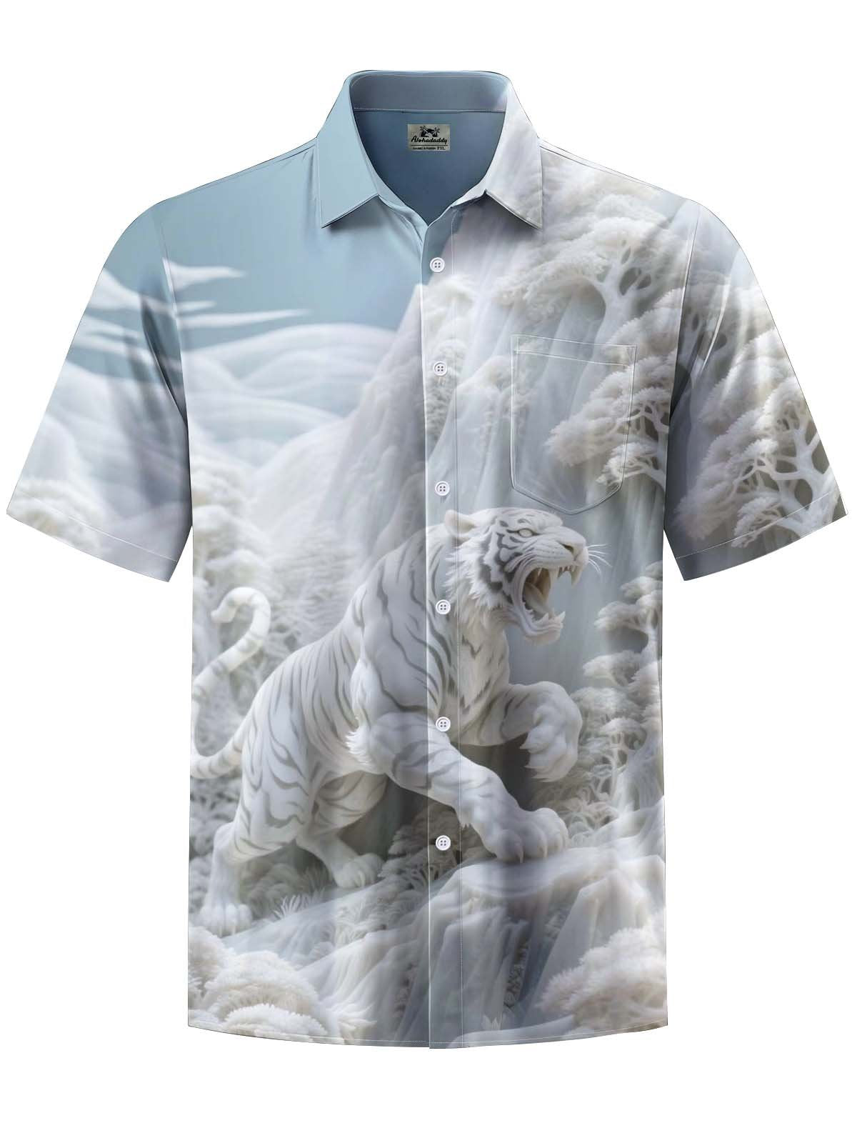 Alohadaddy® Casual Tiger Print Pocket Stretch Men's Short Sleeve Shirt Big & Tall