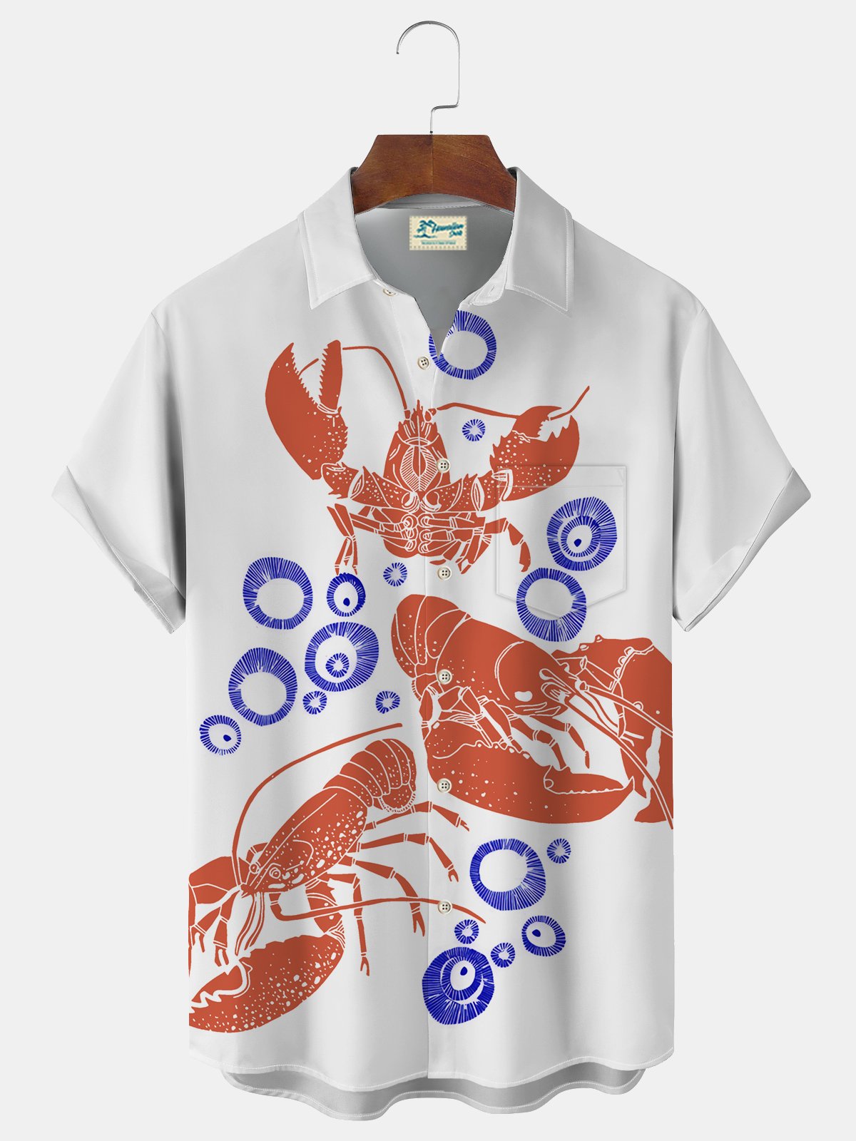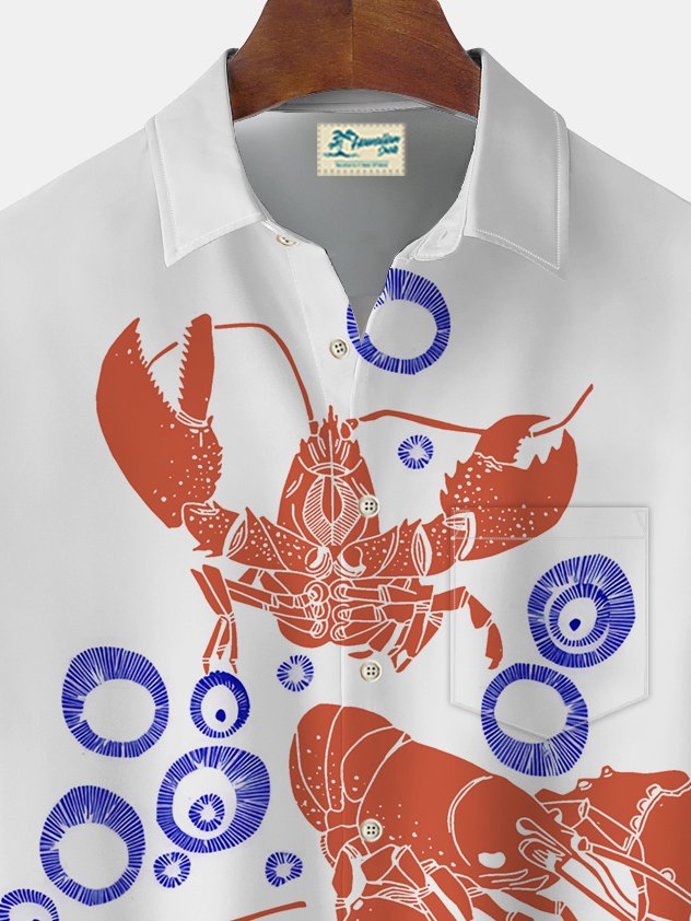 Camisa hawaiana con estampado de langosta y bolsillo para acampar para hombre de Alohadaddy Beach Vacation, talla grande