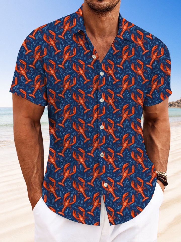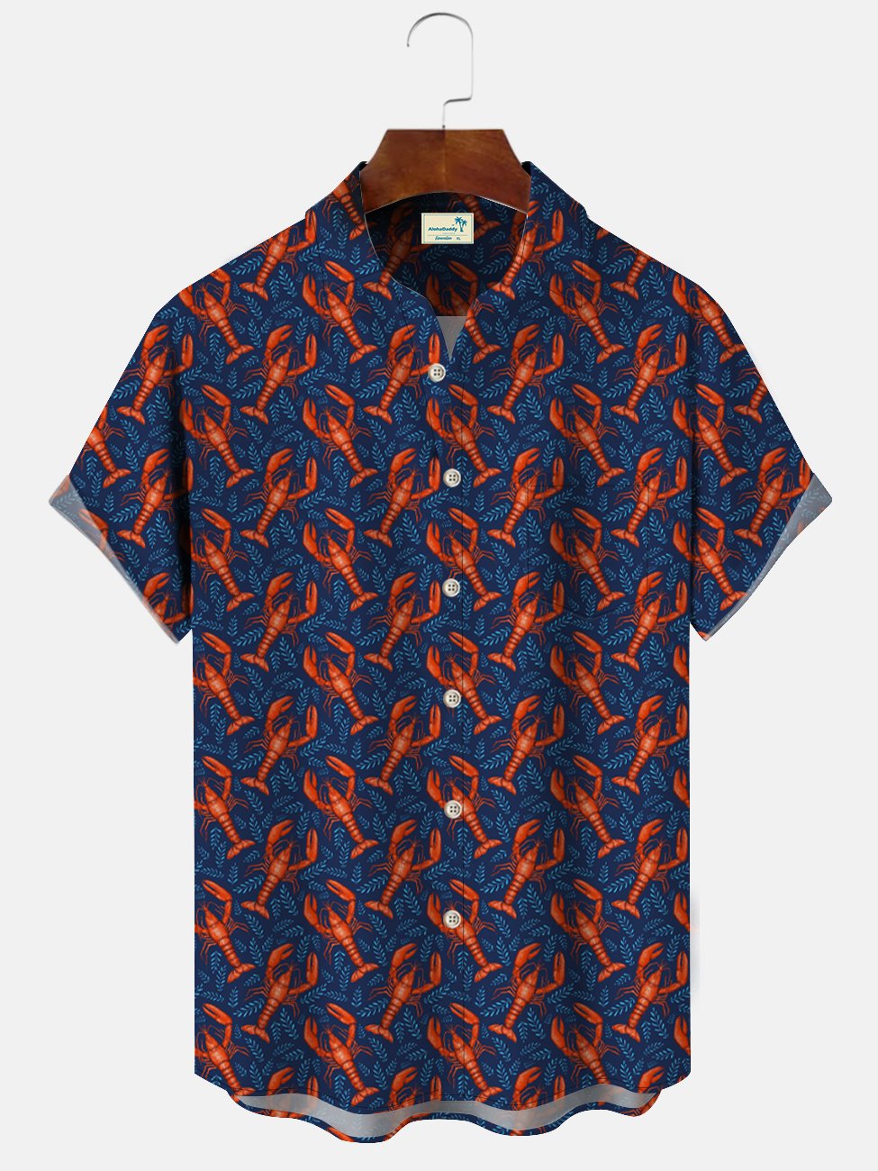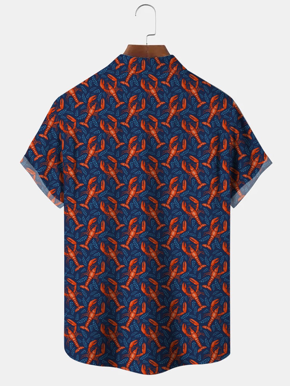 Camisa informal de manga corta con botones y bolsillo con camarones oceánicos de Alohadaddy