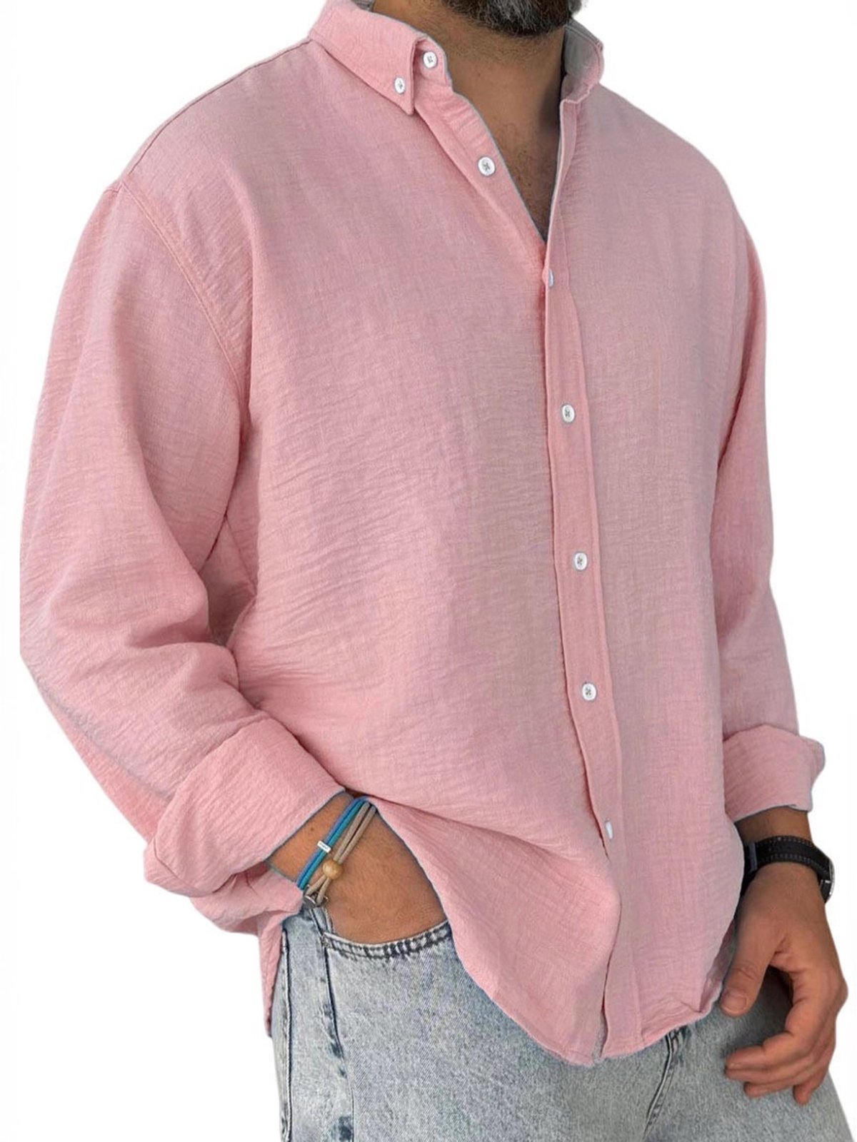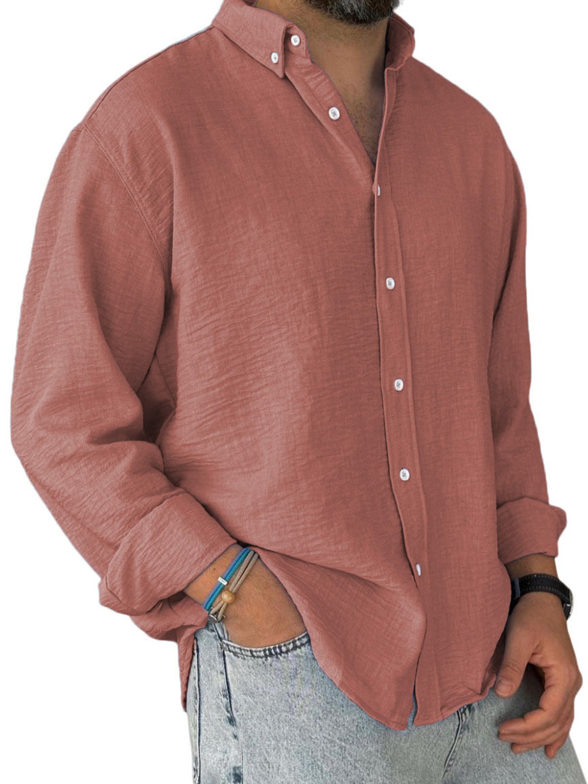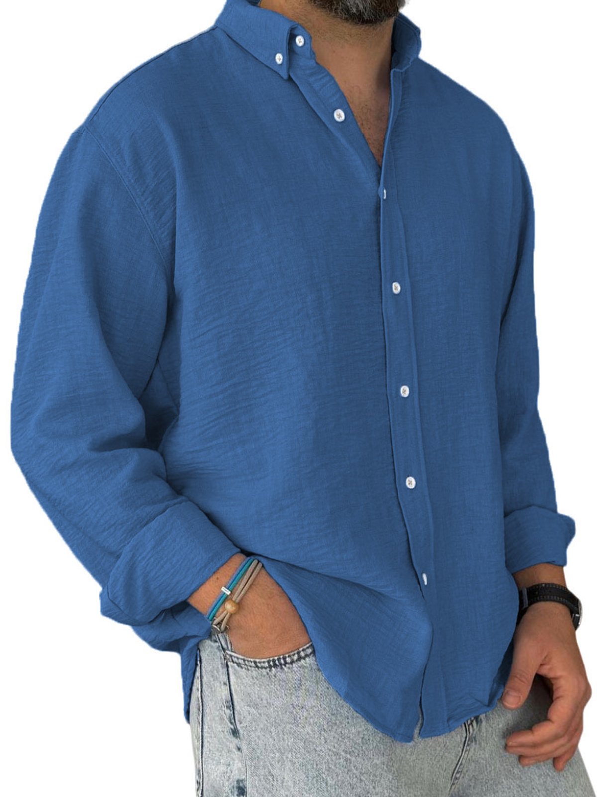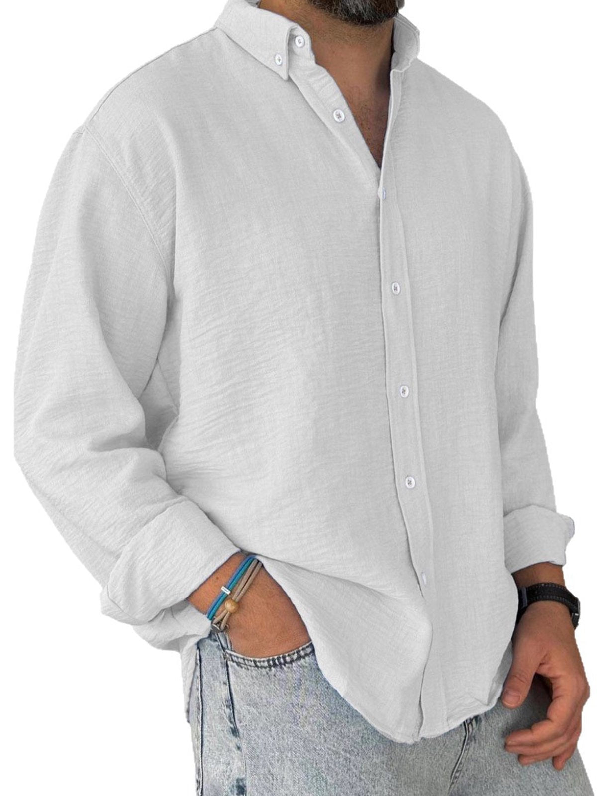 Alohadaddy® Casual Solid Color All-Match Washed Cotton Button-Down Long Sleeve Shirt Big & Tall
