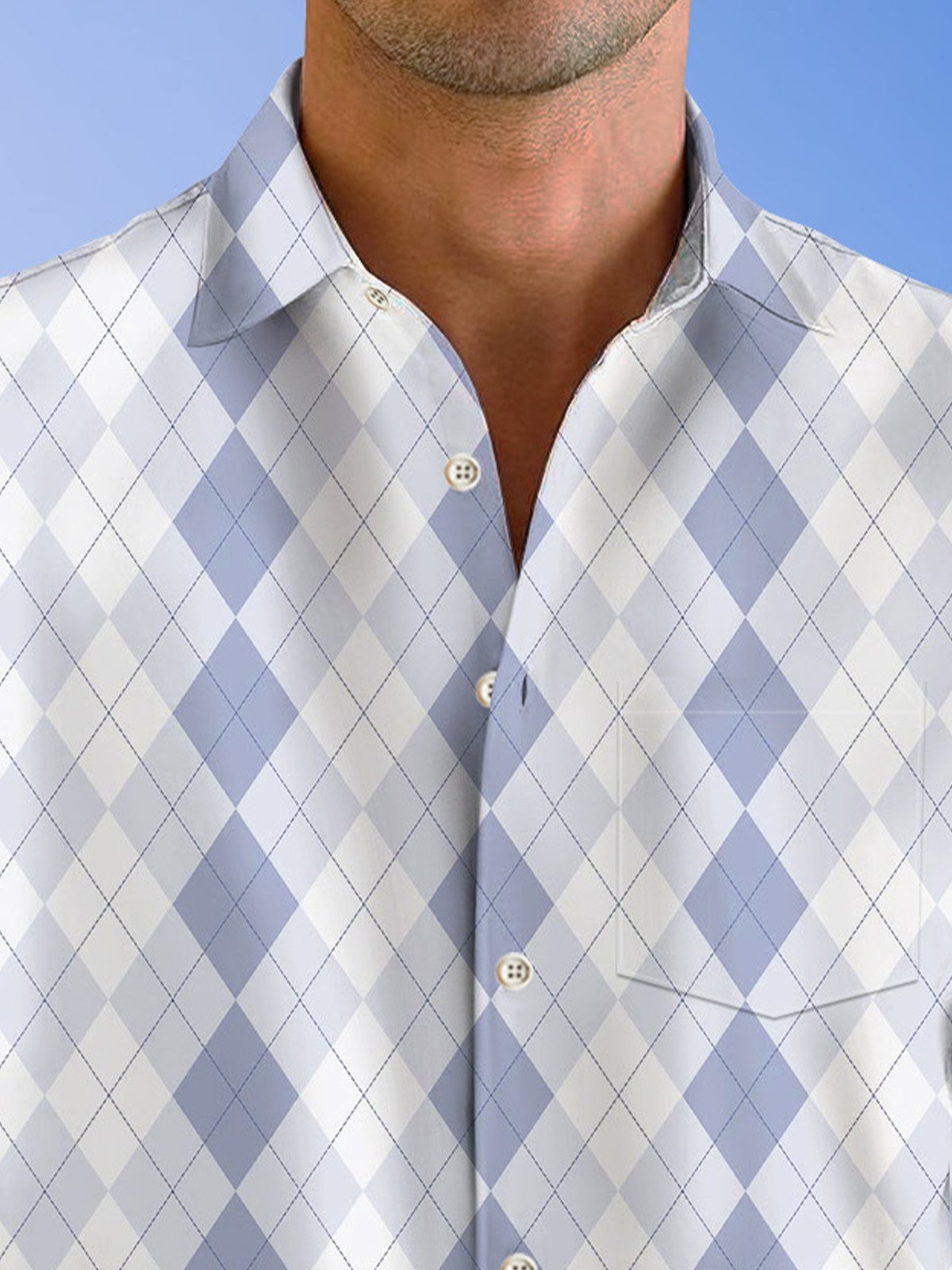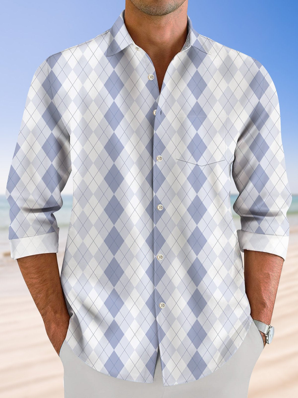 Camisa informal de manga larga con bolsillos abotonados y estampado geométrico de diamantes de Alohadaddy