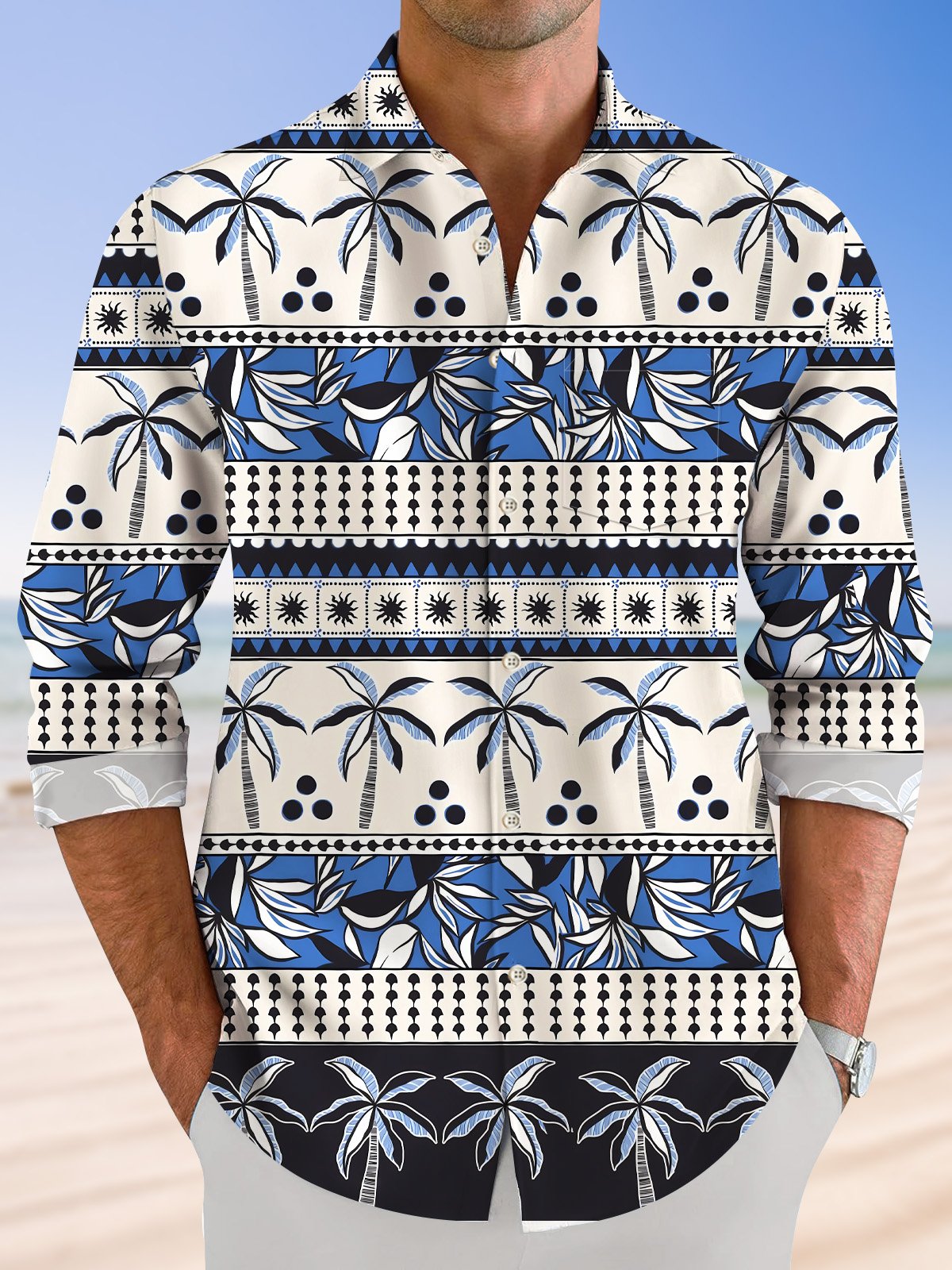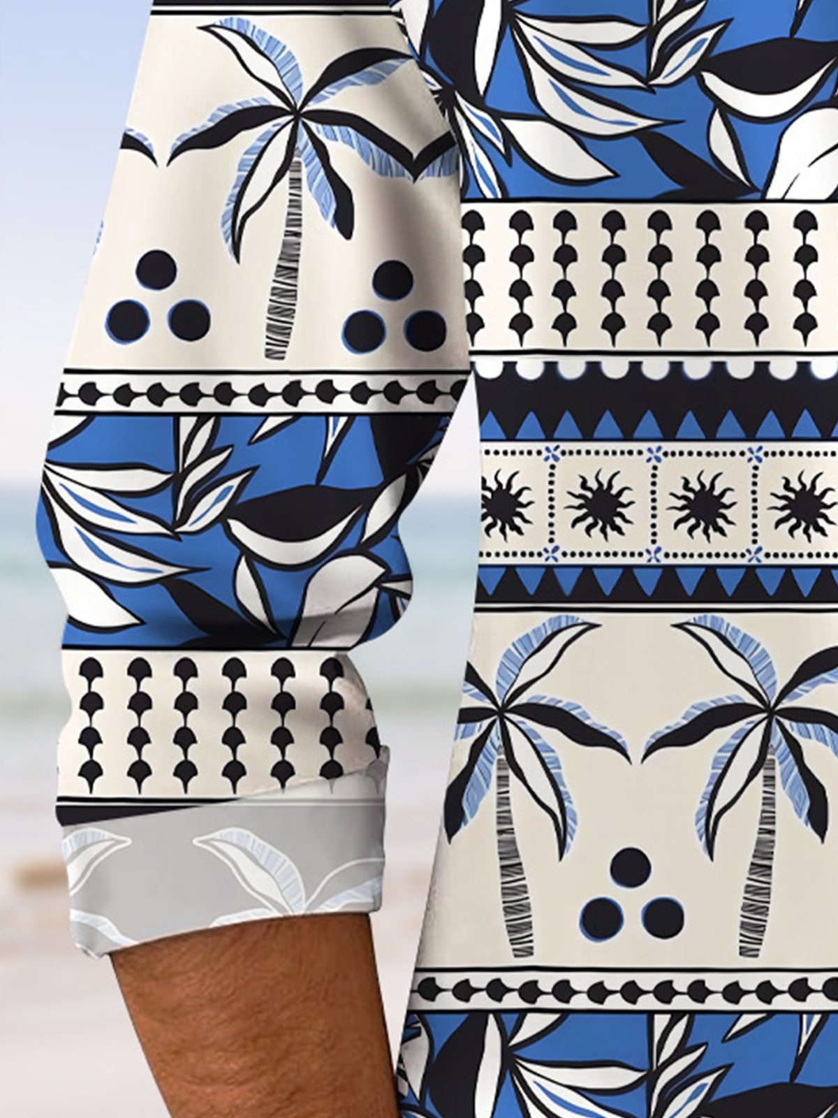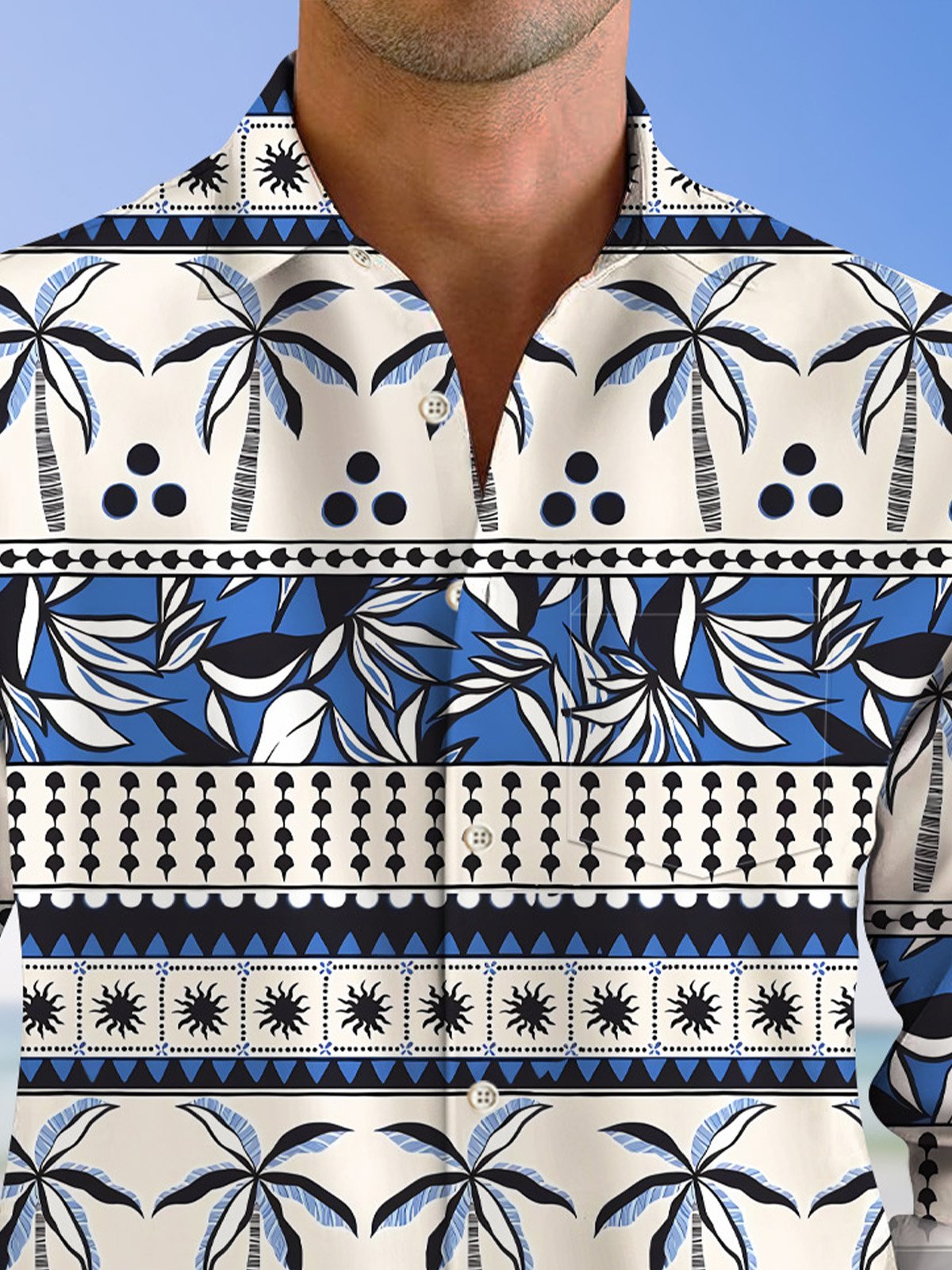 Camisa informal de manga larga con bolsillos y botones para vacaciones para hombre con estampado étnico Alohadaddy