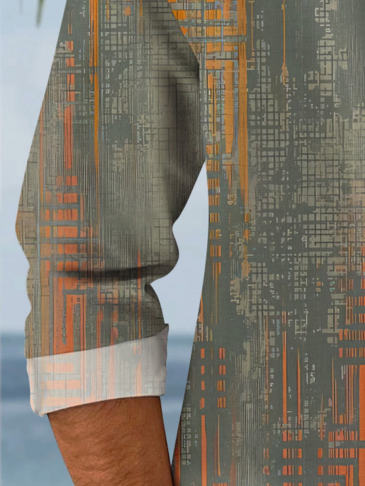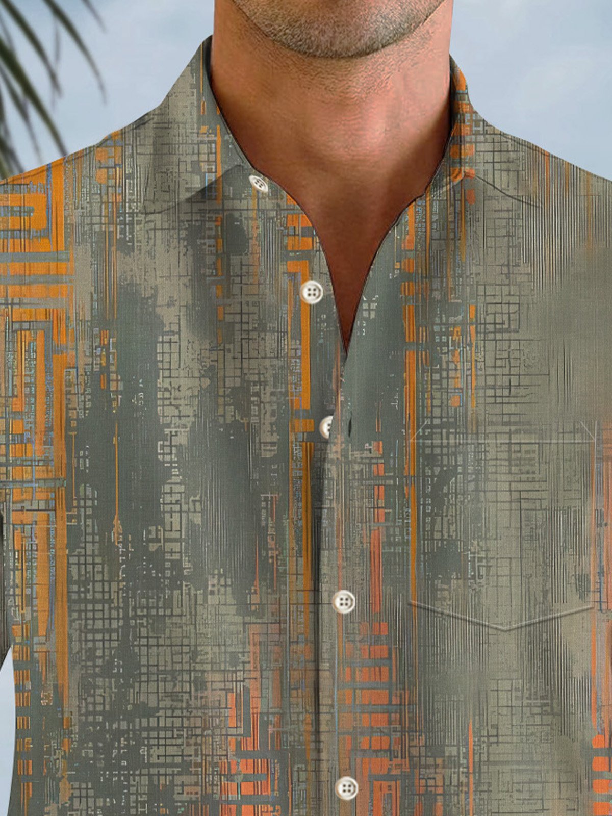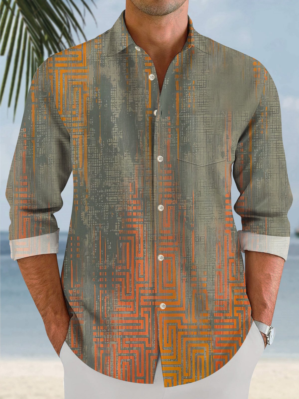 Camisa informal de manga larga con bolsillos y botones para hombre con degradado geométrico Alohadaddy