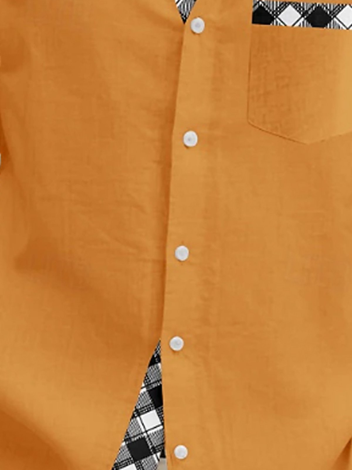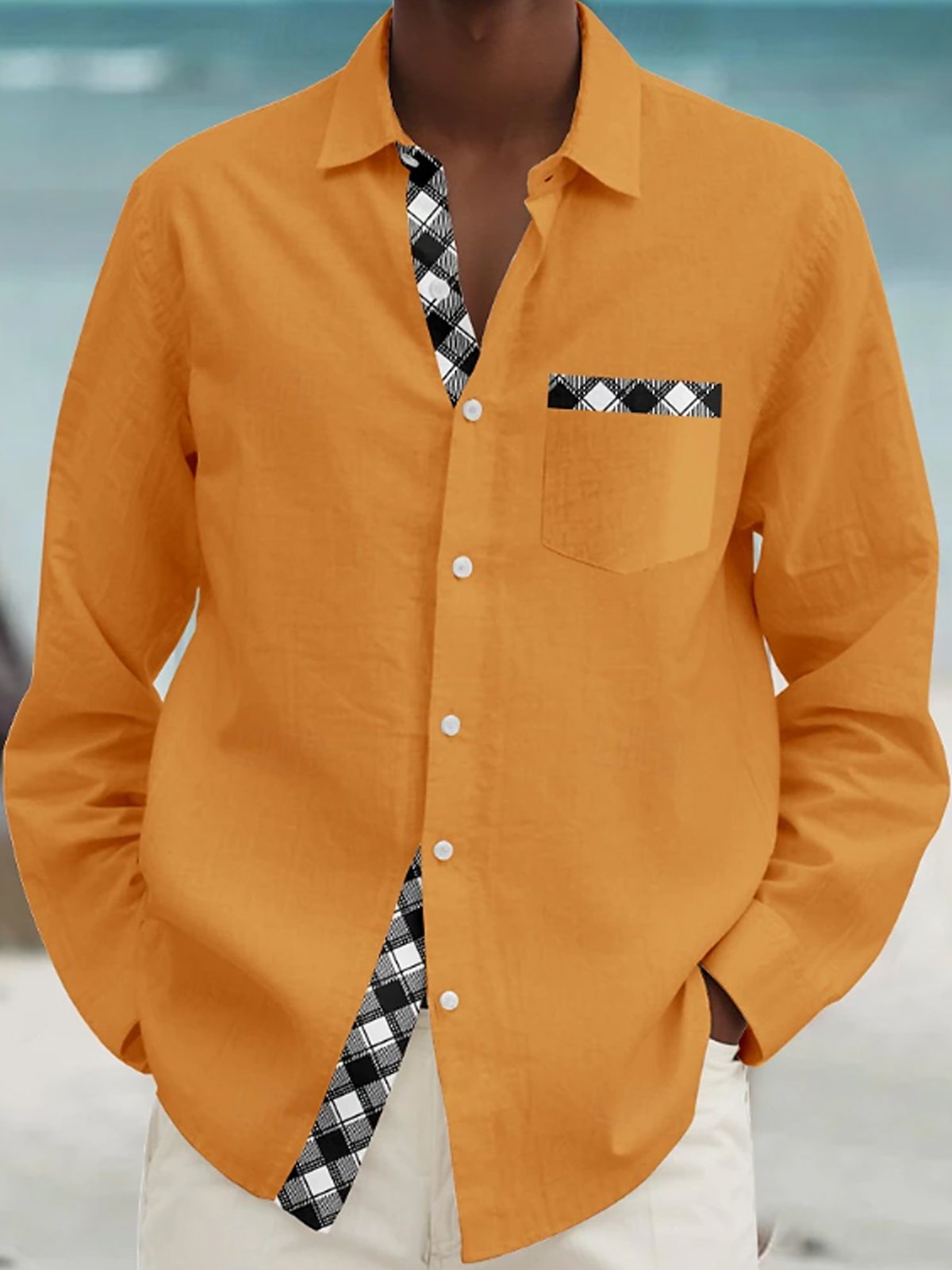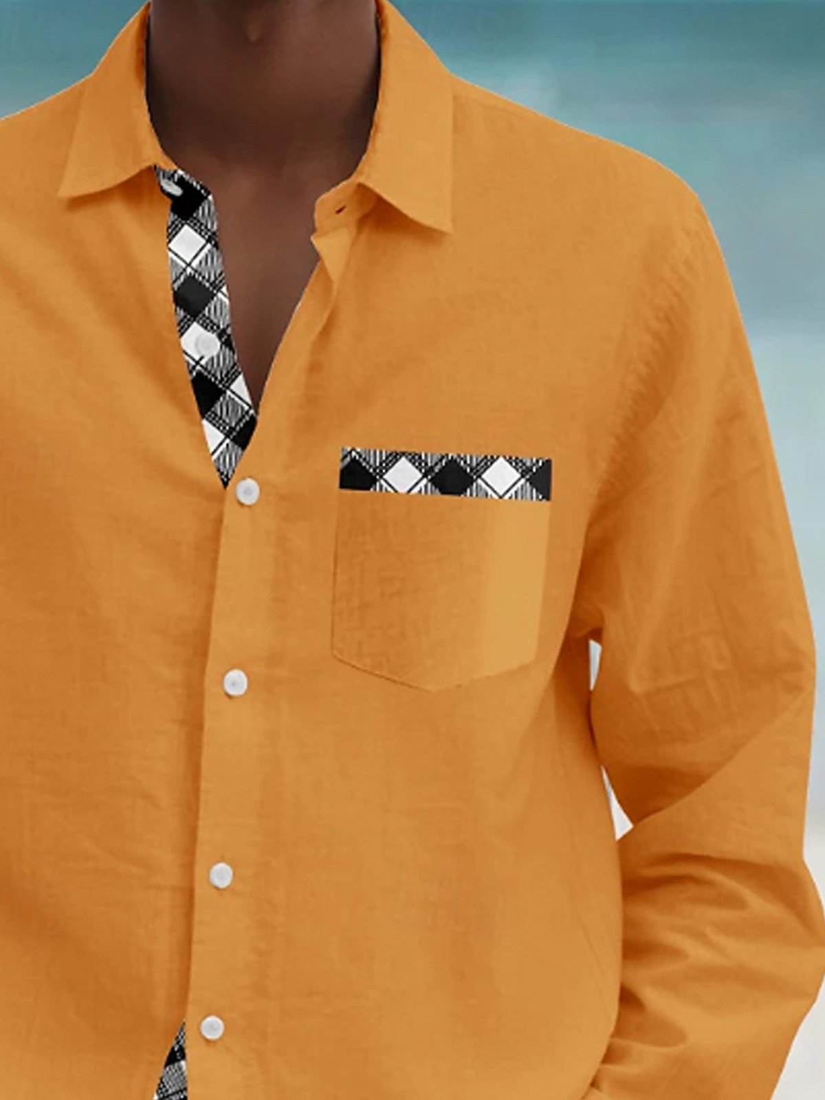 Camisa de manga larga con bolsillos y botones para hombre con estampado digital 3D y empalme de cuadros de Alohadaddy, talla grande y alta
