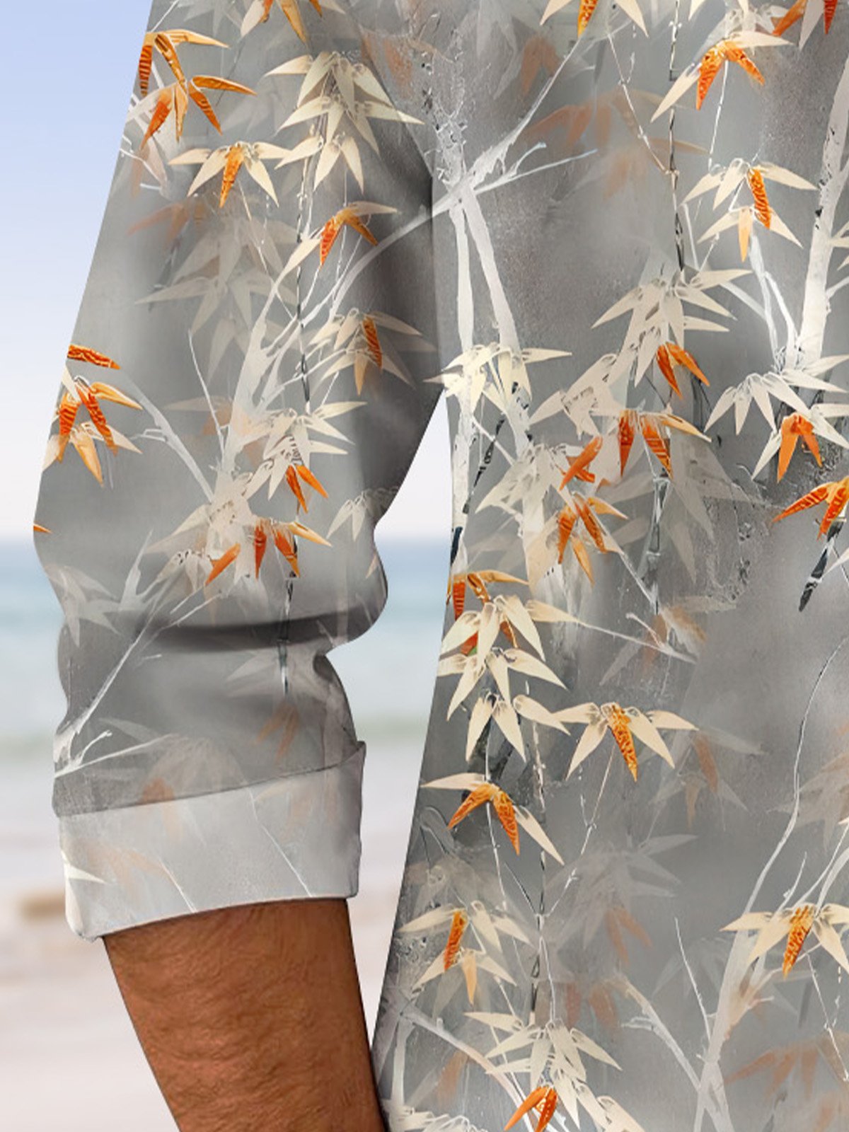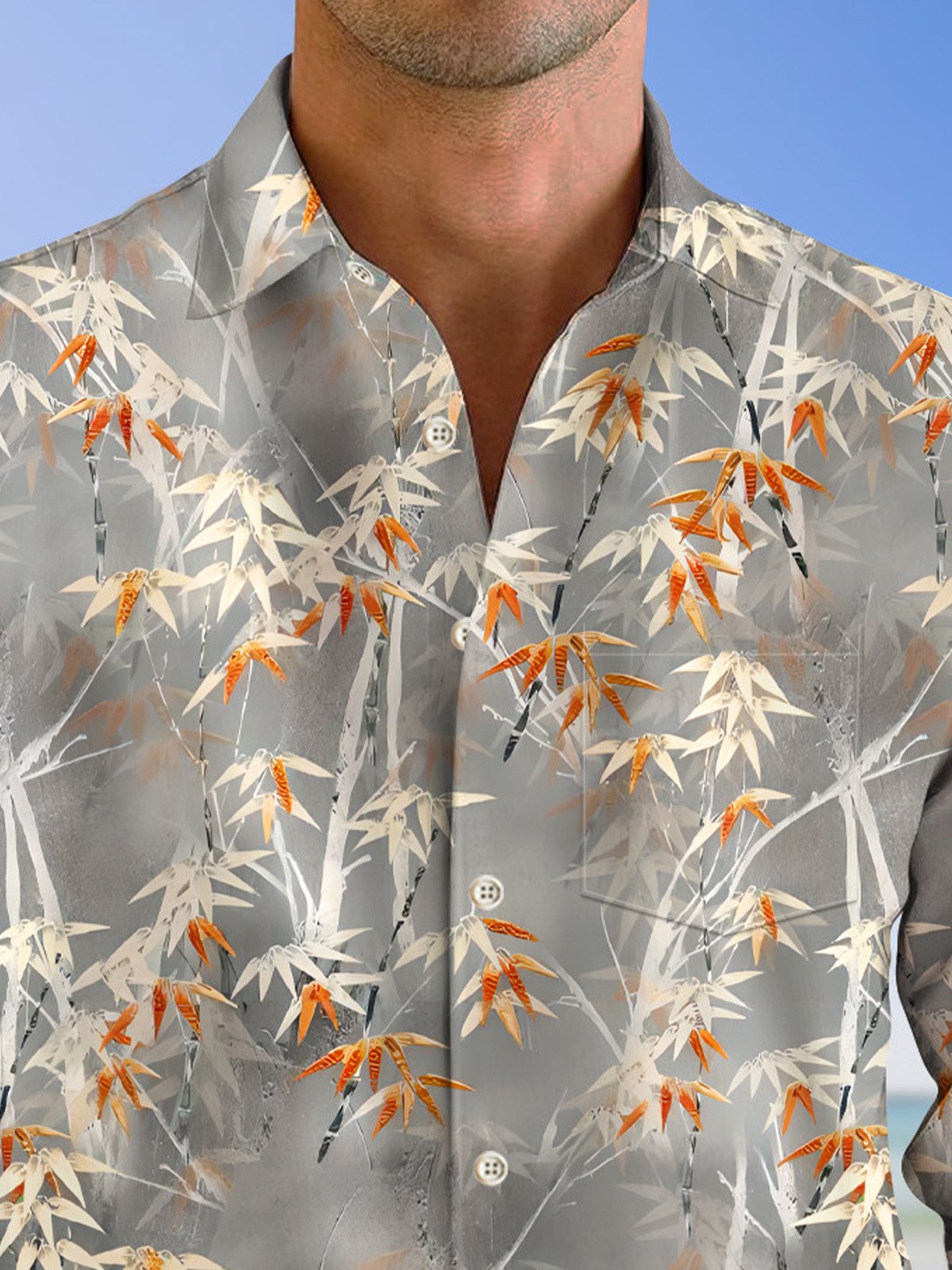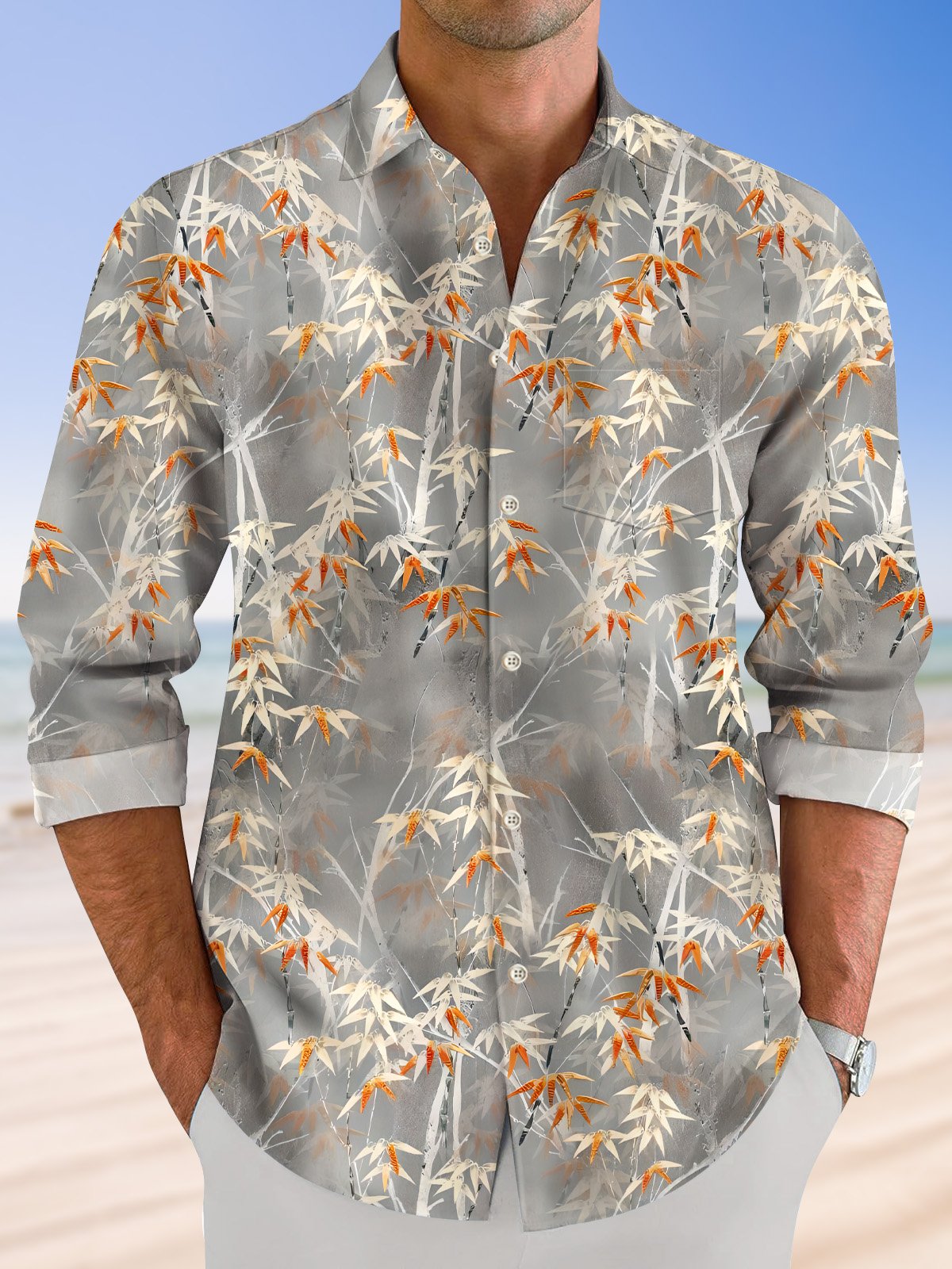 Camisa informal de manga larga con bolsillos y botones y diseño de hojas de plantas de Alohadaddy
