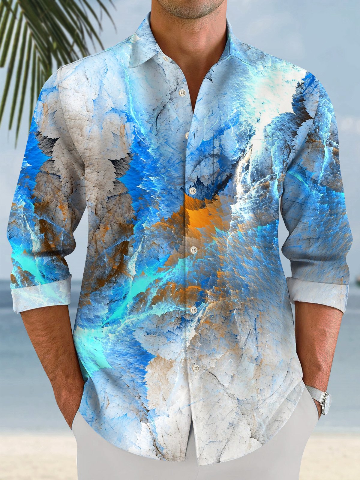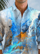 Camisa informal de manga larga con bolsillos y botones para hombre con estampado geométrico tridimensional abstracto de Alohadaddy