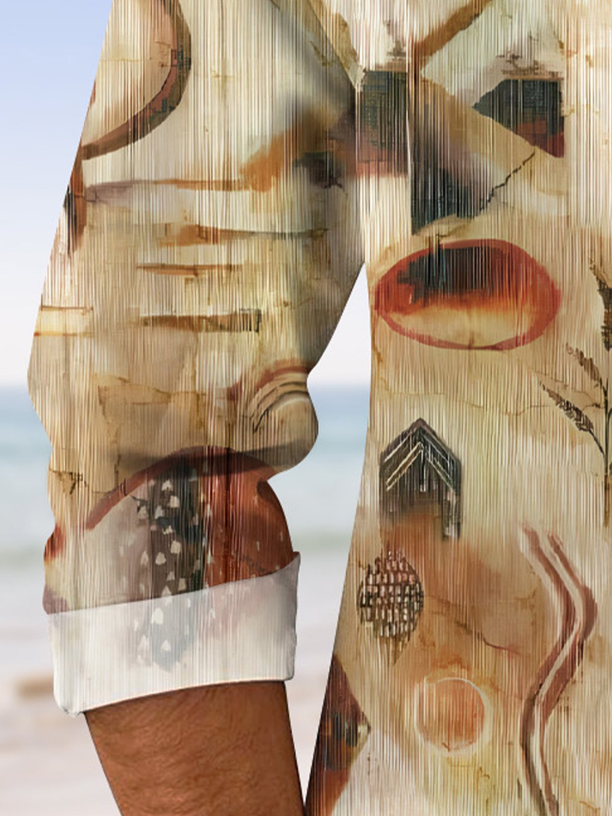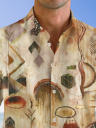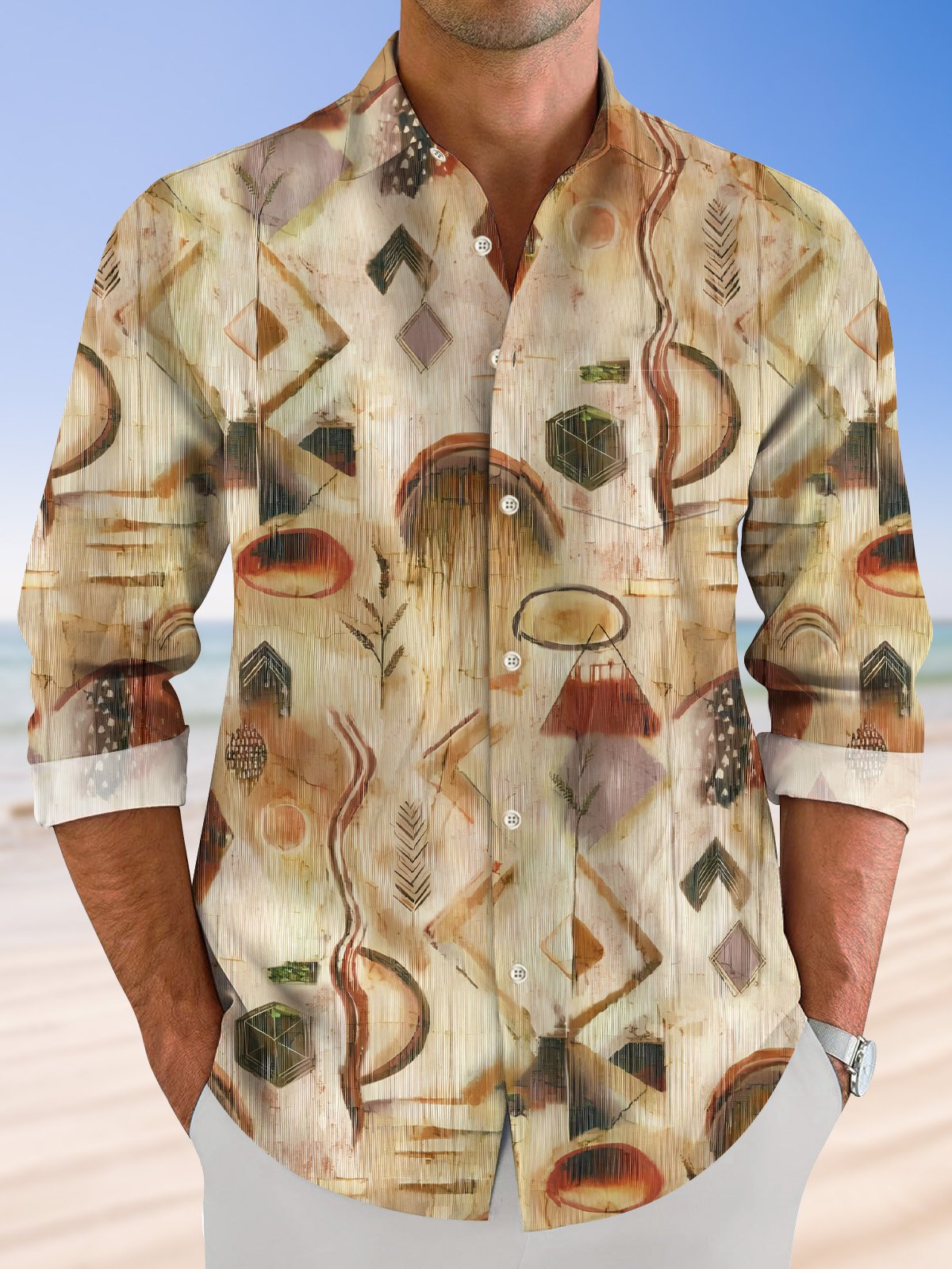 Camisa informal de manga larga con botones y bolsillo con estampado geométrico étnico retro de Alohadaddy