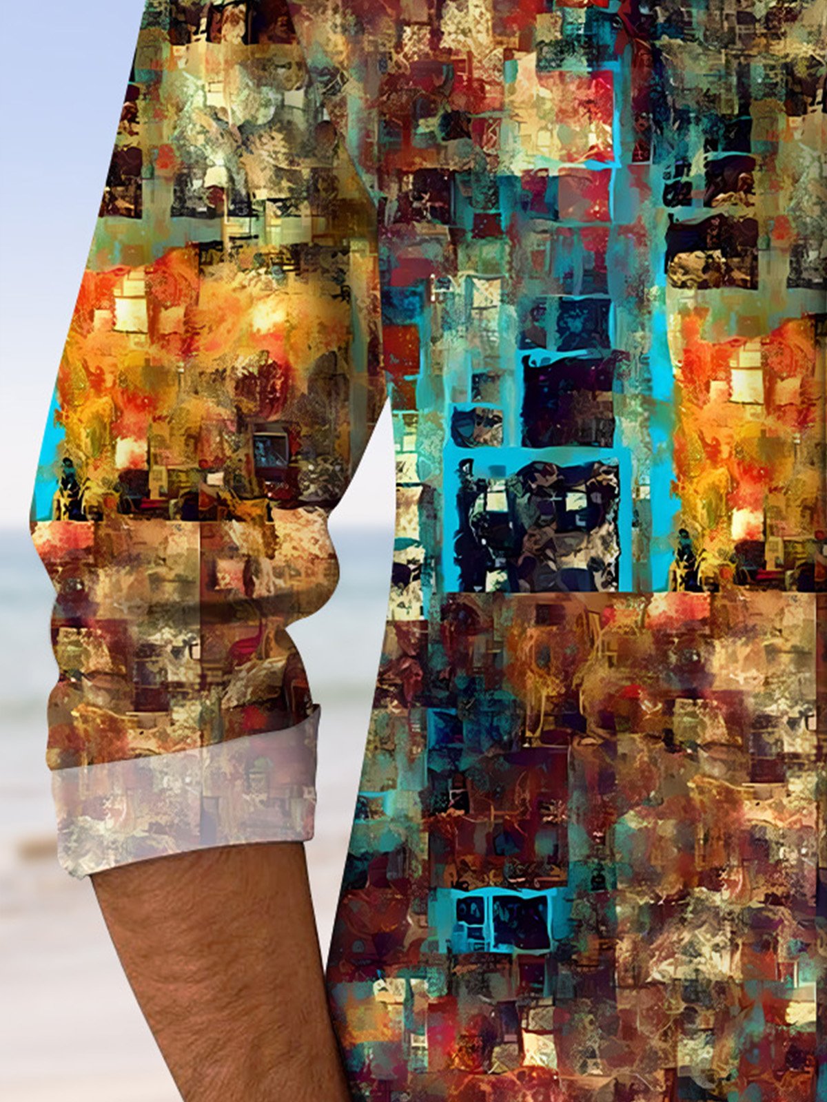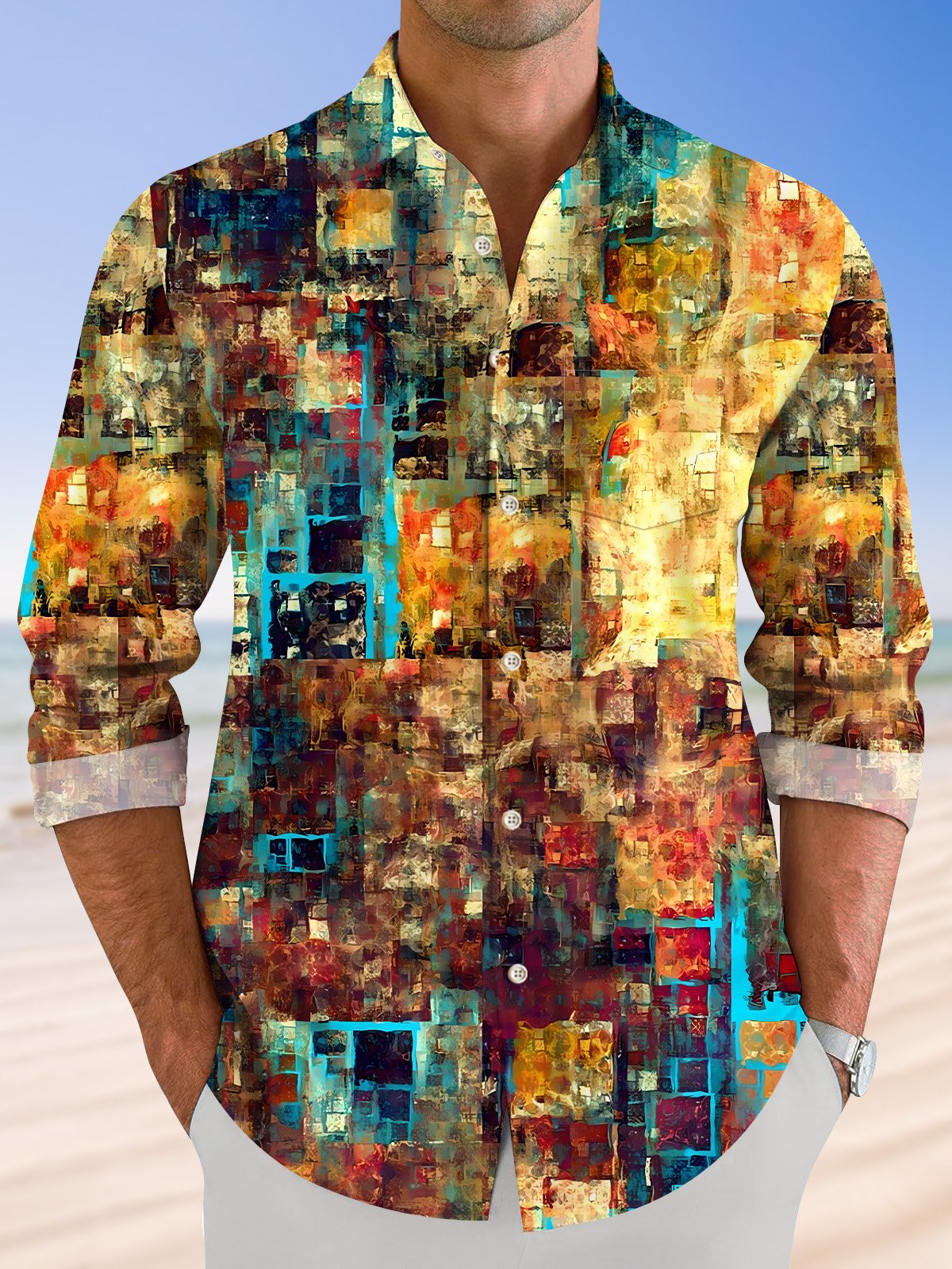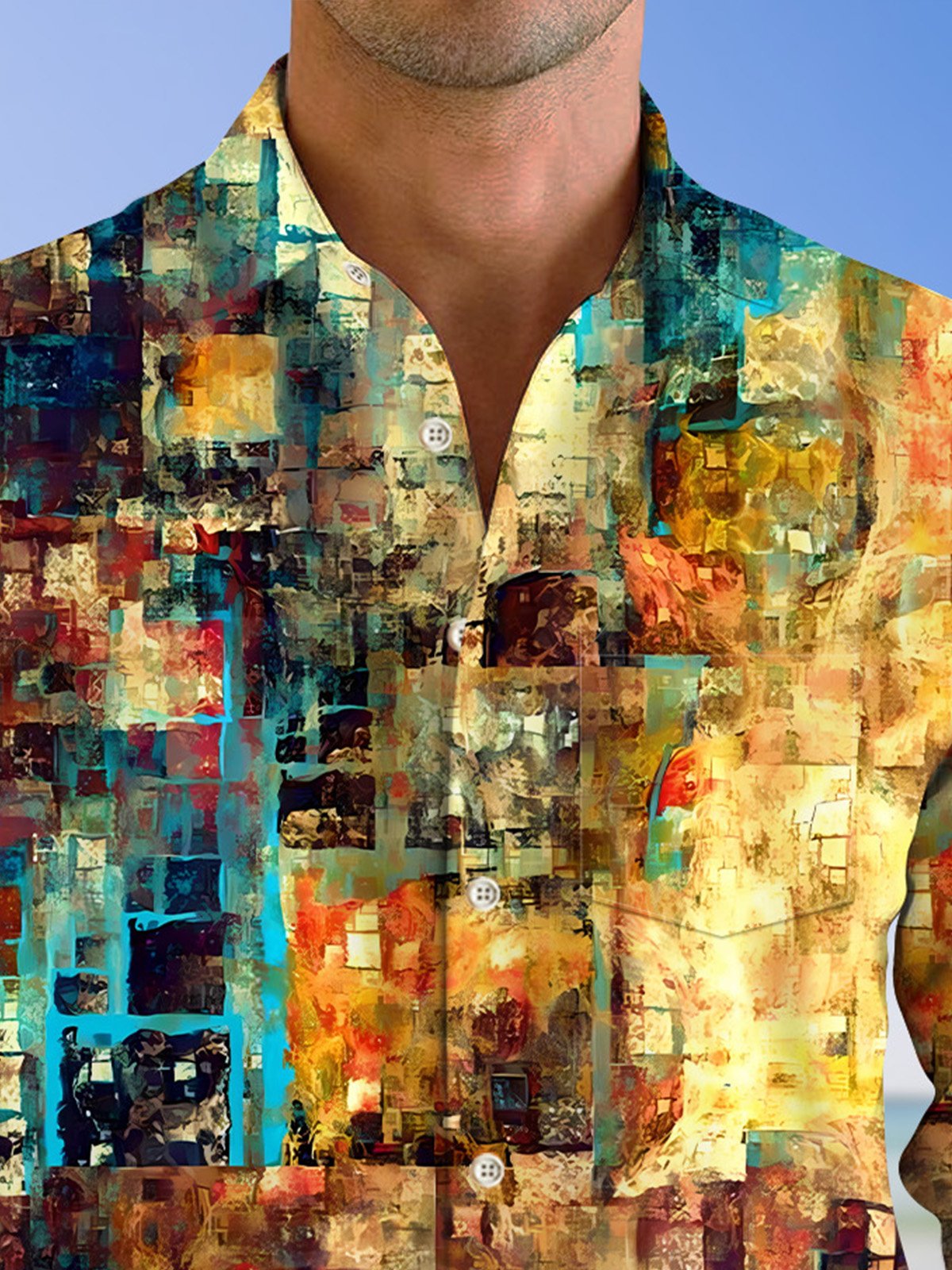 Camisa informal de manga larga con bolsillos y botones con diseño geométrico retro de Alohadaddy
