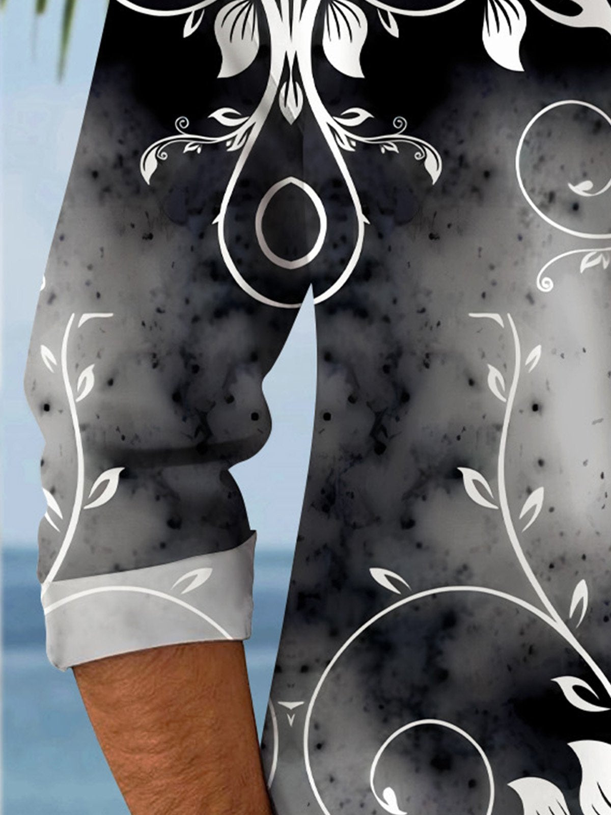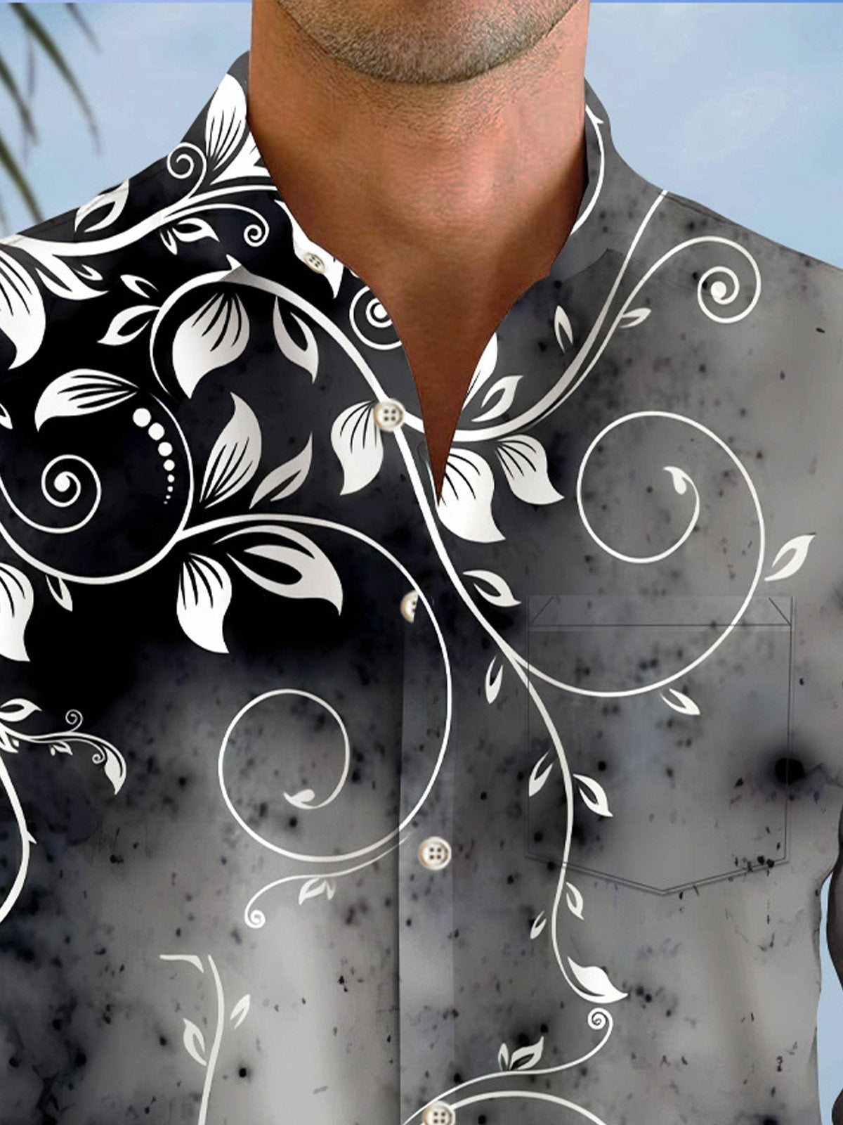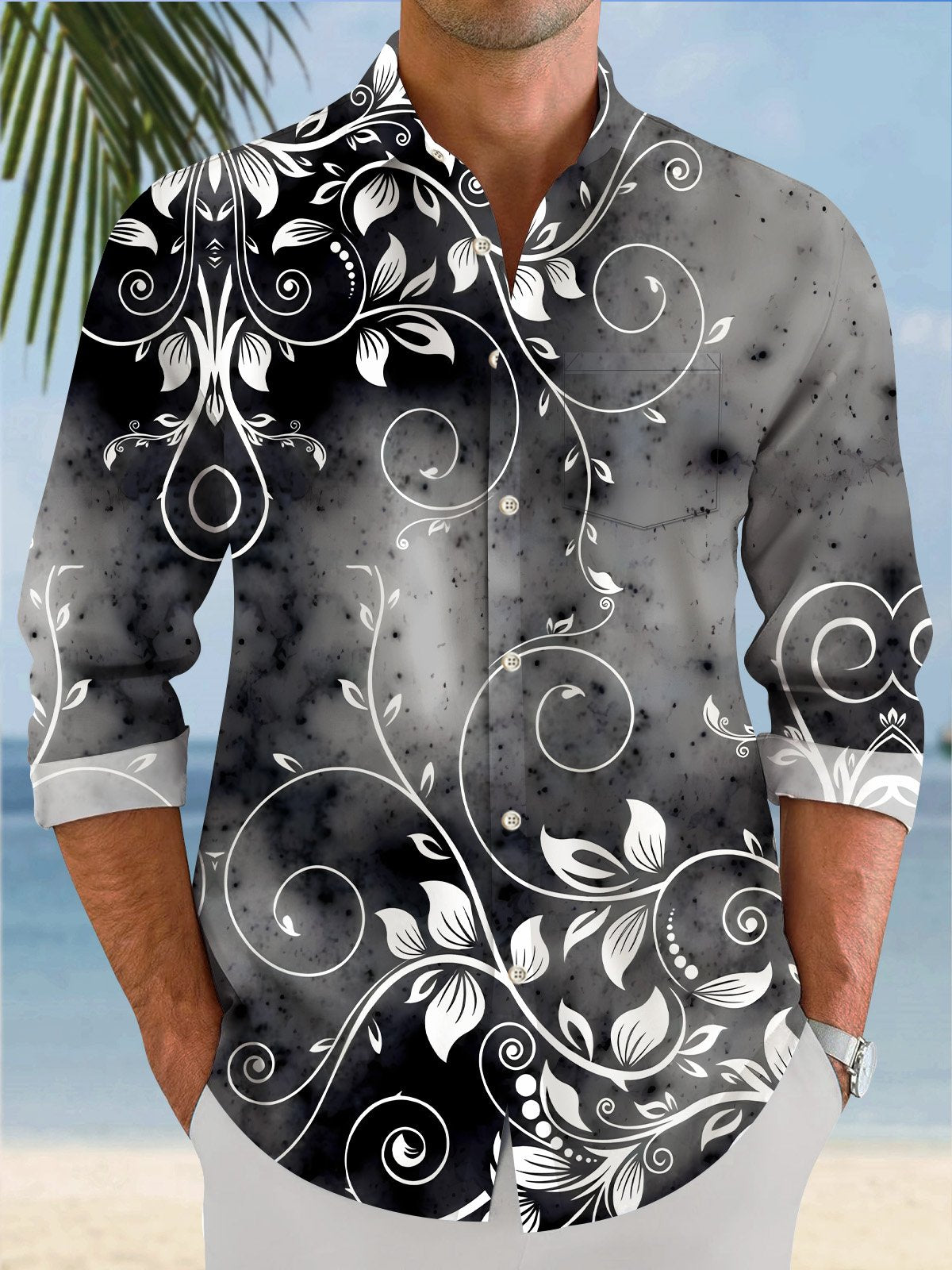 Camisa informal de manga larga con bolsillos y botones con degradado y diseño retro de hojas de plantas de Alohadaddy