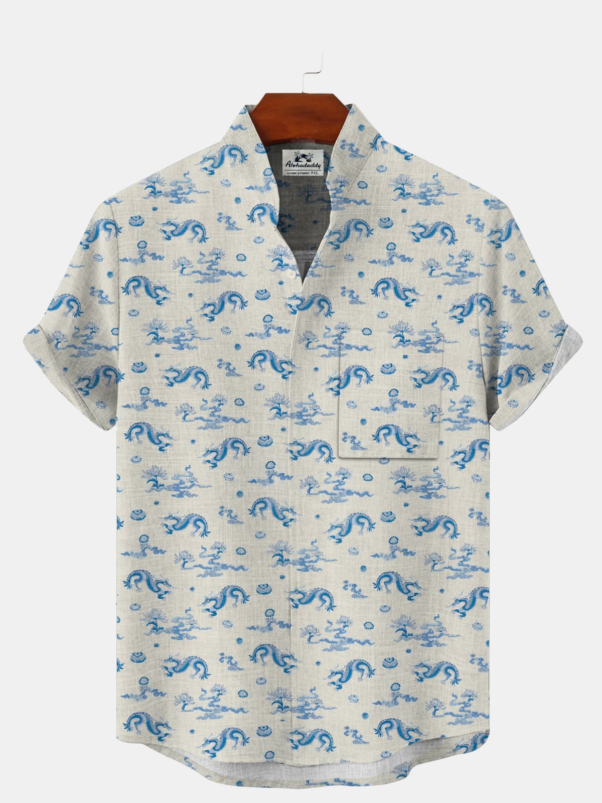 Alohadaddy Dragon Button Pocket Casual Short Sleeve Shirt