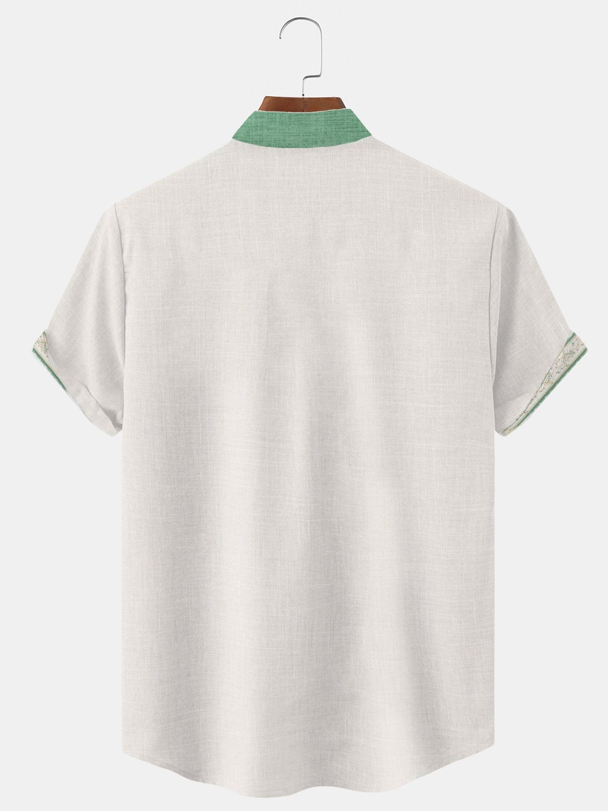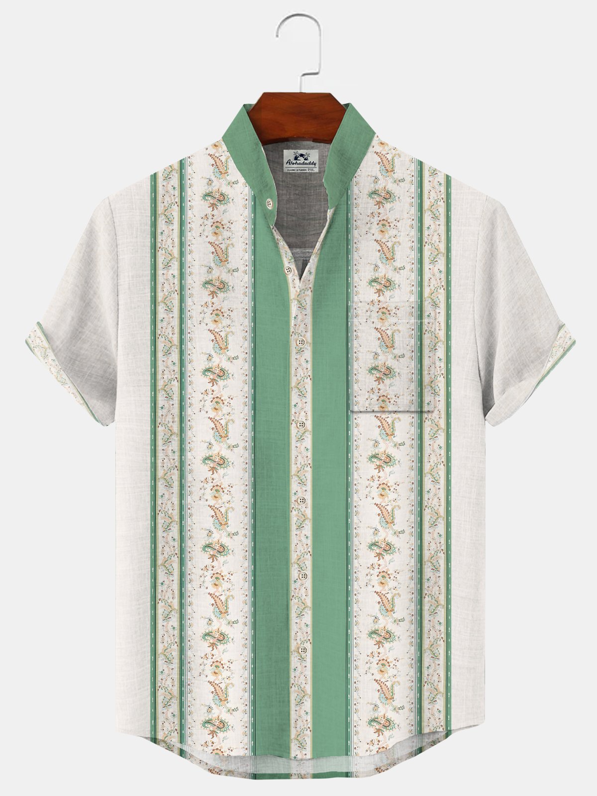 Alohadaddy Ethnic Pattern Plant Button Pocket Casual 50S Bowling Commuting Stand Collar Short Sleeve Shirt