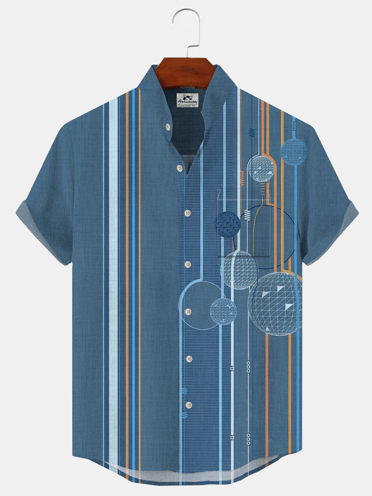 Alohadaddy Geometric Lines Pocket Casual Short Sleeve Stand Collar Shirt