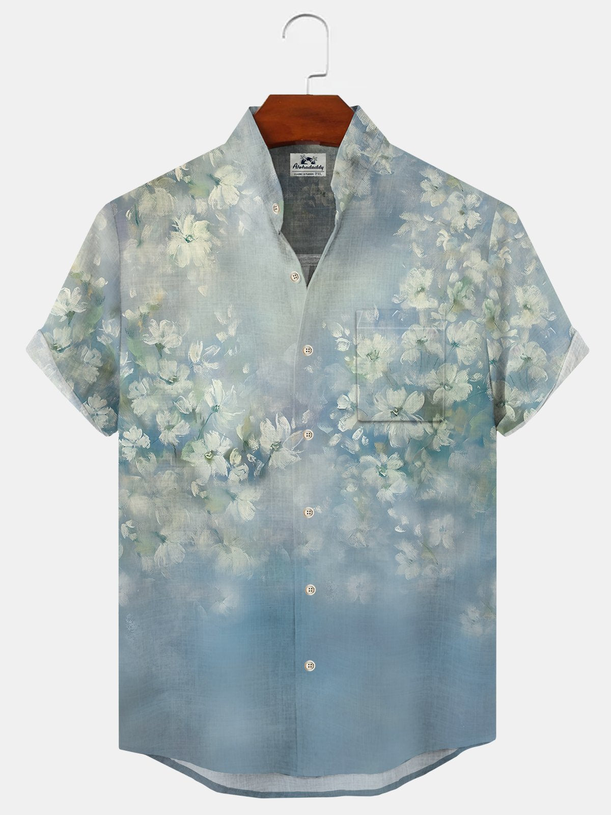 Alohadaddy Gradient Plant Flower Button Pocket Casual Short Sleeve Shirt