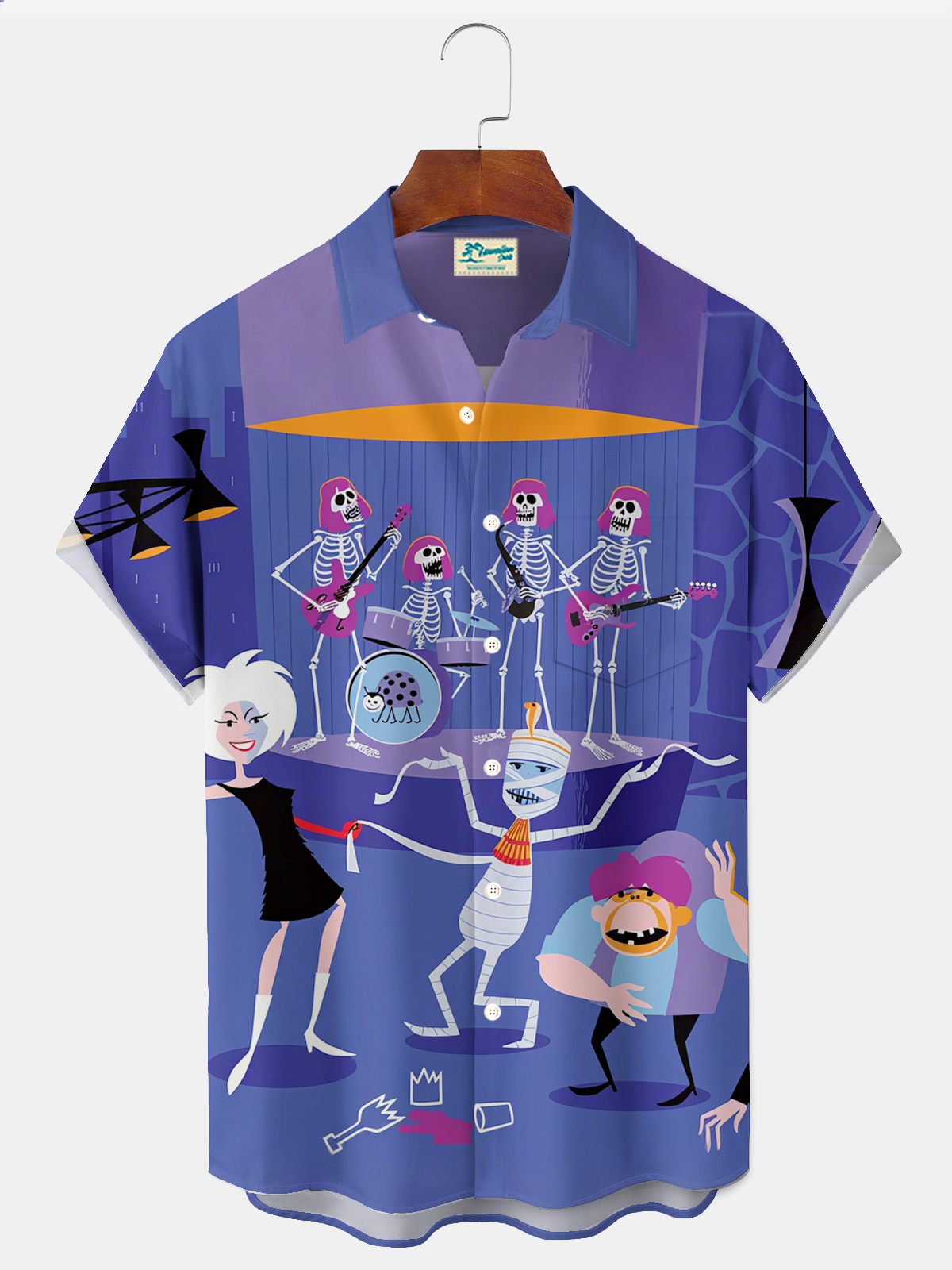 Alohadaddy® Retro 1950s Mid-century Atomic Age Geometric Graphic Print Men's Button Pocket Short Sleeve Shirt Big & Tall