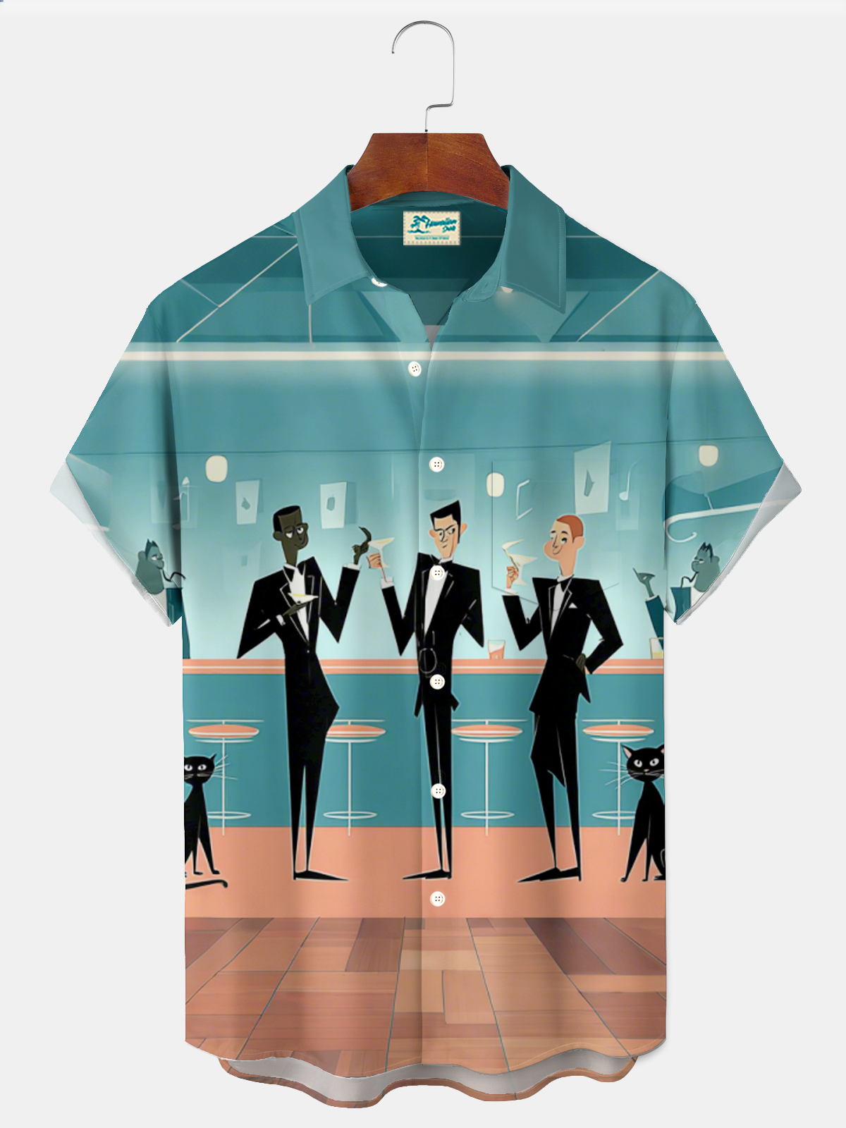 Alohadaddy® Retro 1950s Mid-century Atomic Age Geometric Graphic Print Men's Button Pocket Short Sleeve Shirt Big & Tall