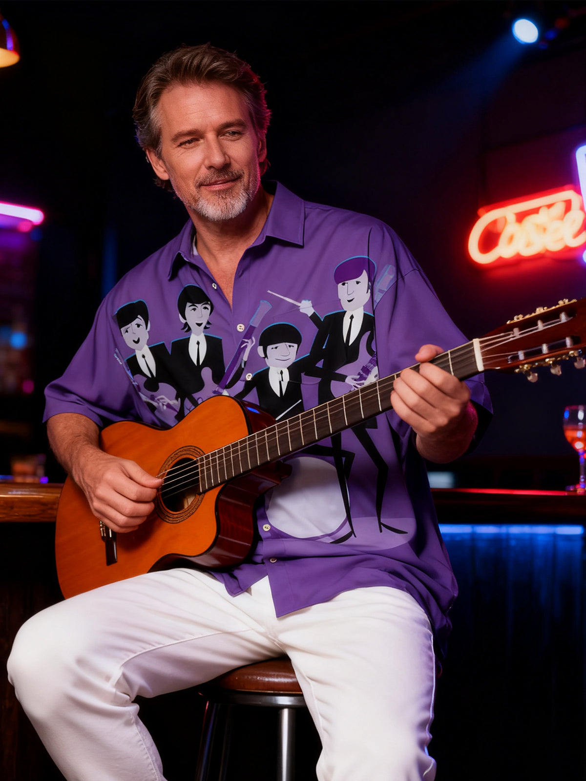 Alohadaddy® Men's Super Band Print Pocket Short Sleeve Shirt Big & Tall