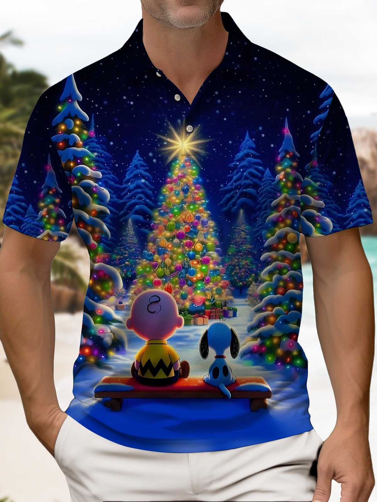 Alohadaddy® Christmas Cartoon Christmas Tree LED Light Polo Shirt