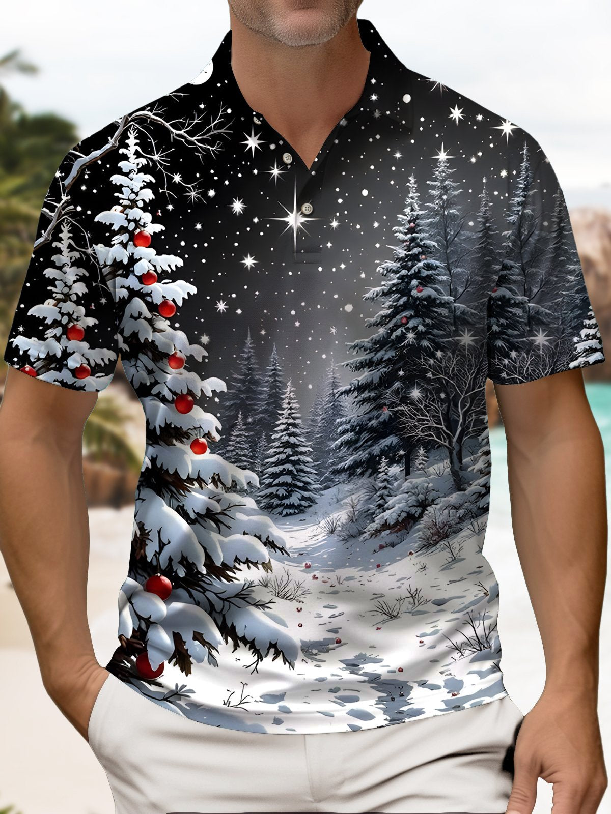 Alohadaddy® Christmas Snow Scene Christmas Tree Polo Shirt