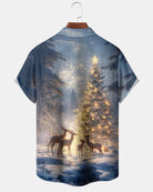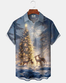 Alohadaddy® Christmas Tree Elk Print Men's Short Sleeve Shirt with Elk Pockets and Elastic Buttons Big & Tall