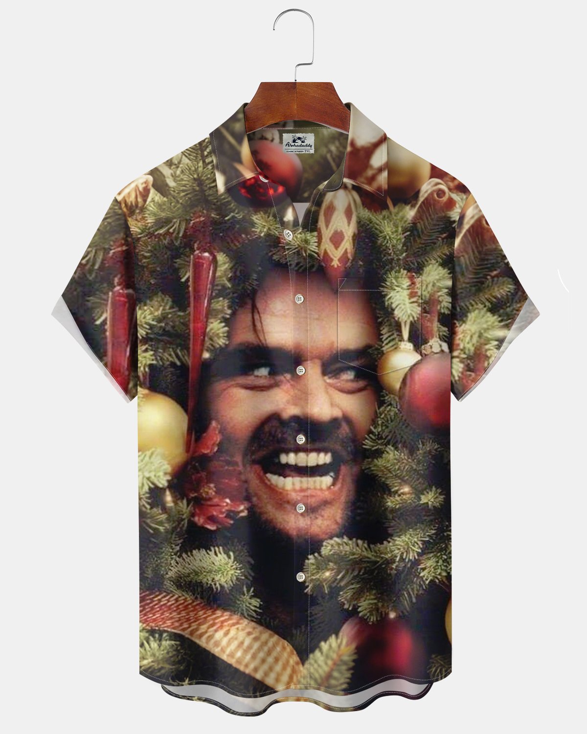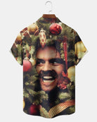 Alohadaddy® Christmas Tree Shining Printed Pocket Button Men's Short Sleeve Shirt Big & Tall