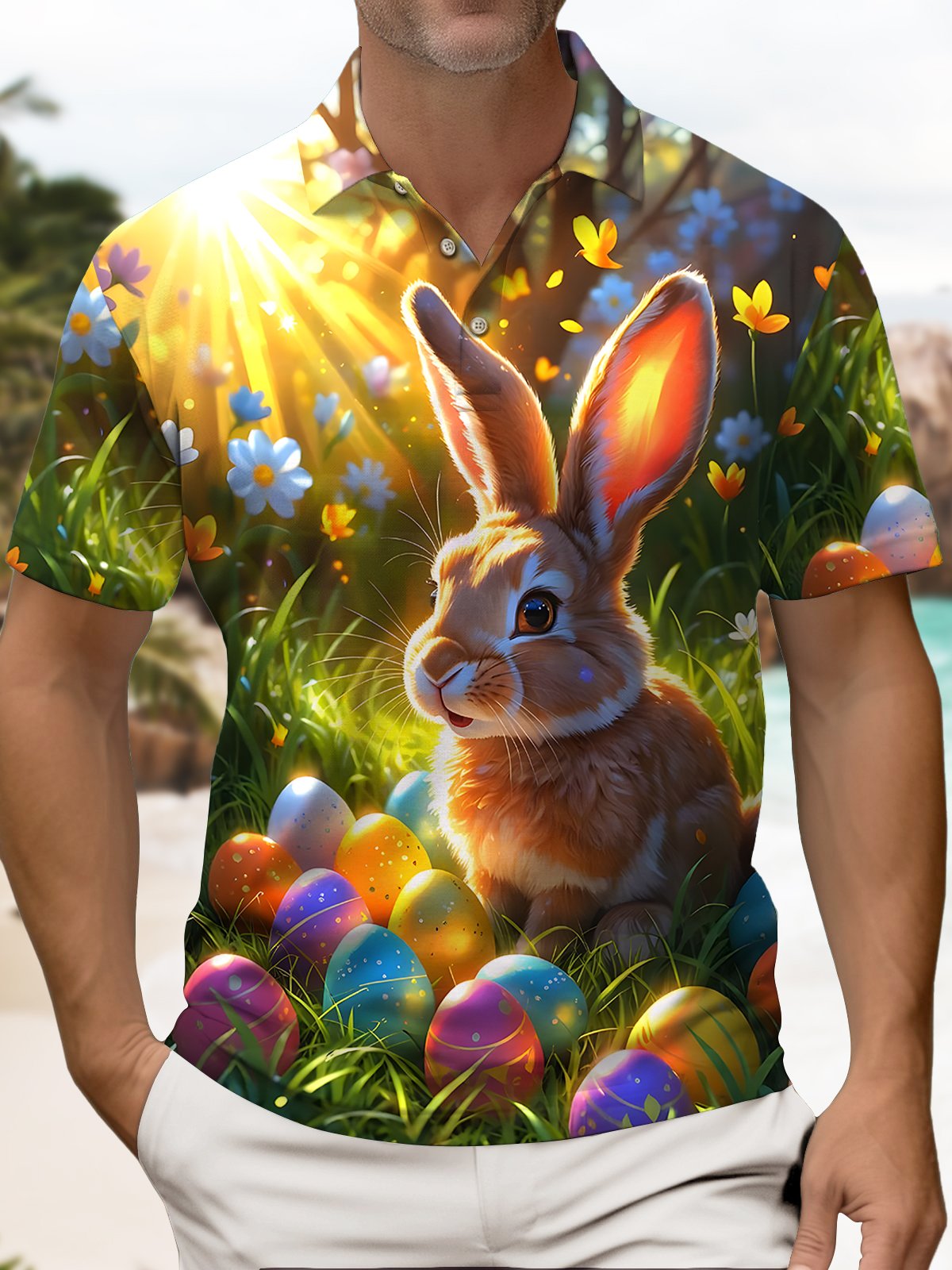 Alohadaddy® Easter Holiday Bunny and Easter Egg Short-Sleeve Polo Shirt